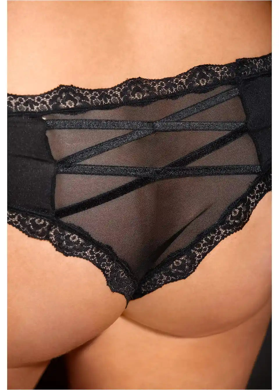 Zapeljivo udobje vam ponuja ta panty ouvert. Izredno mehki material se nežno prilega vaši koži in poudarja ženske obline. Poseben poudarek je na hrbtni strani, ki je izdelana iz prosojnega materiala z prekrižanimi trakovi. Dodatno presenečenje skriva mednožje z zračnim detajlom. Popoln spremljevalec za posebne trenutke.