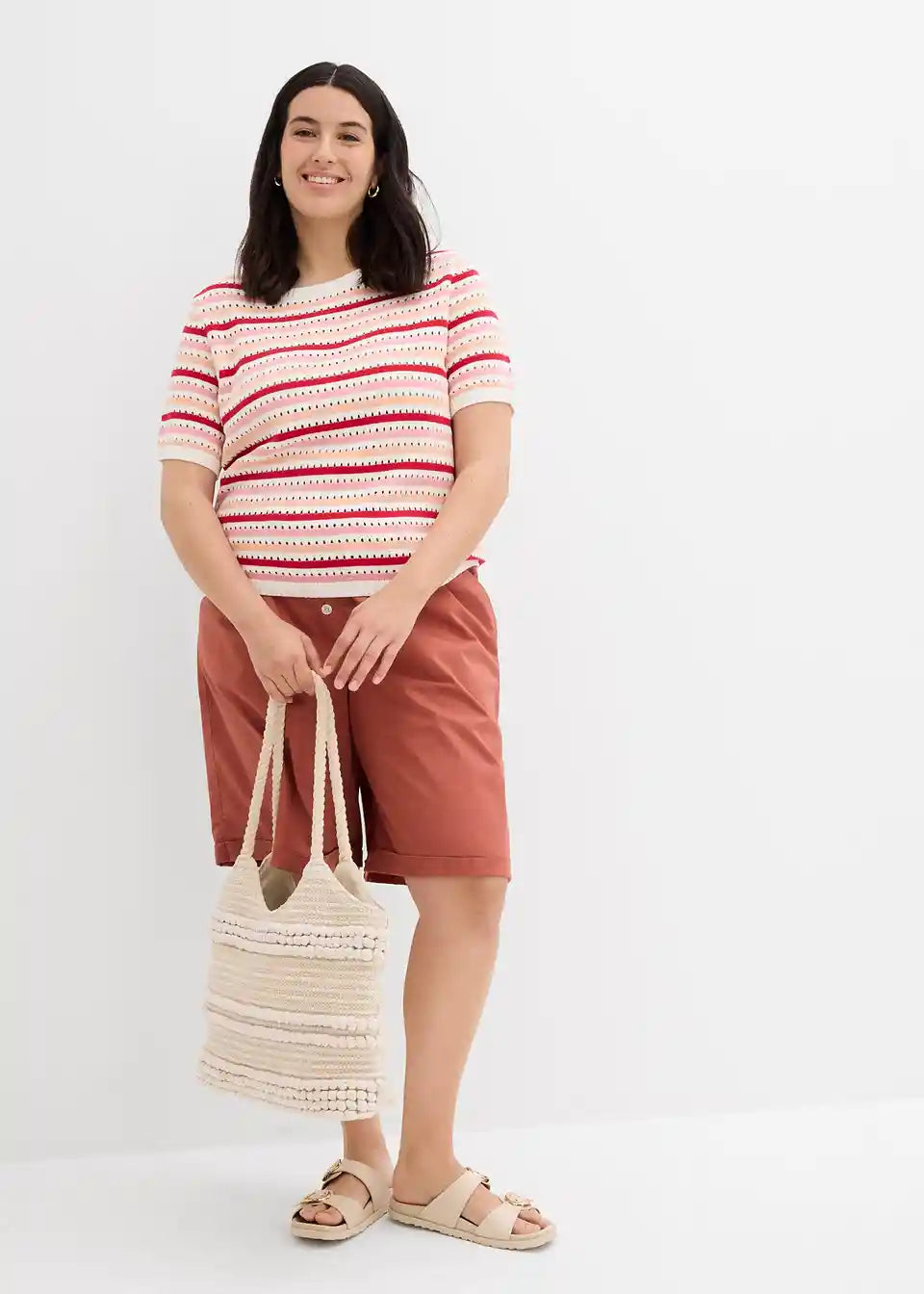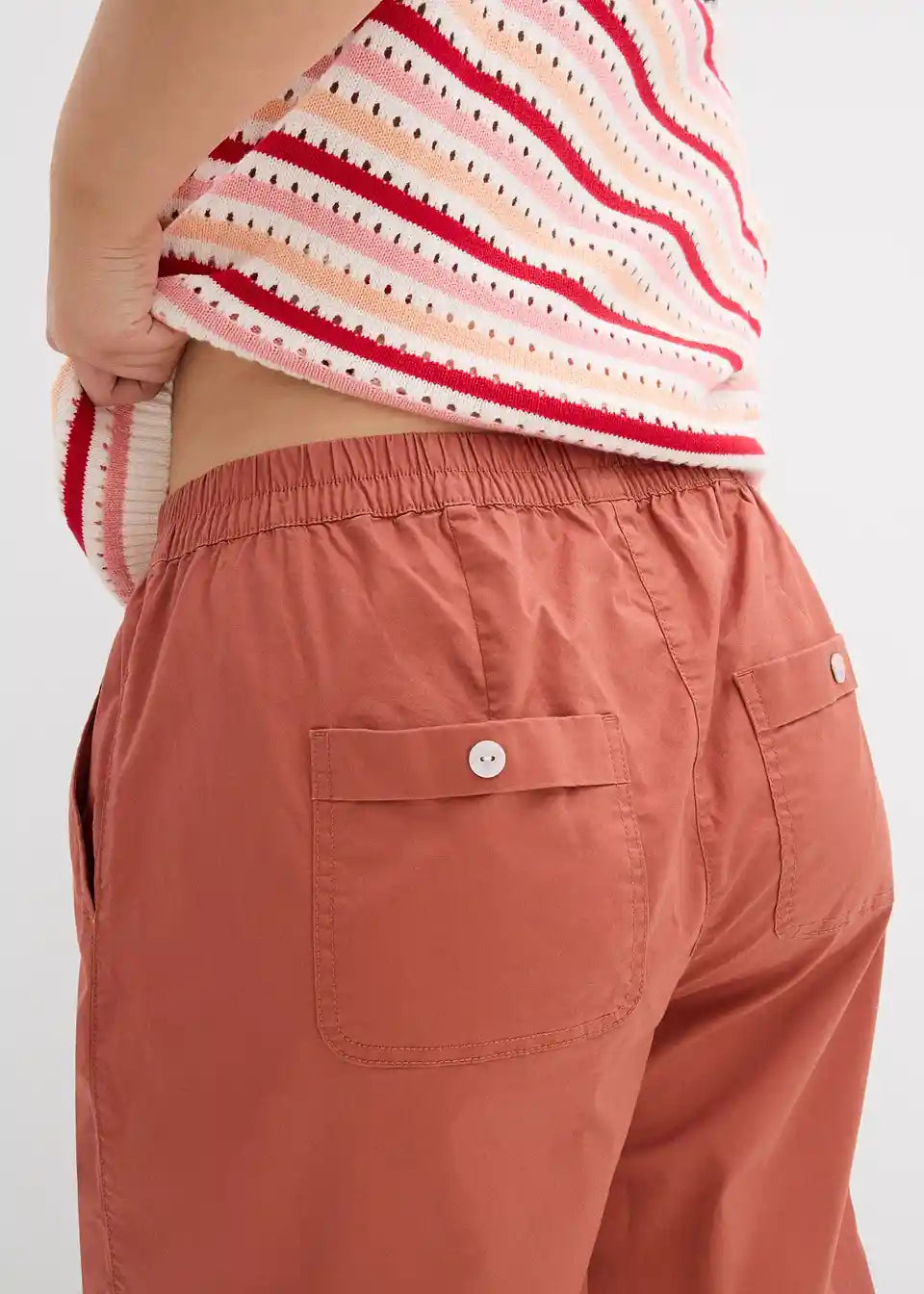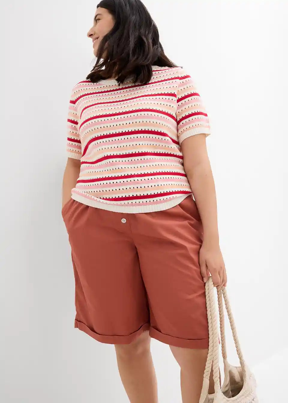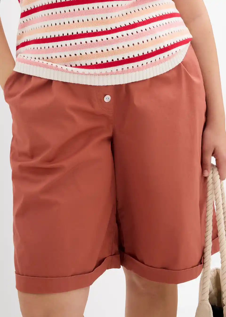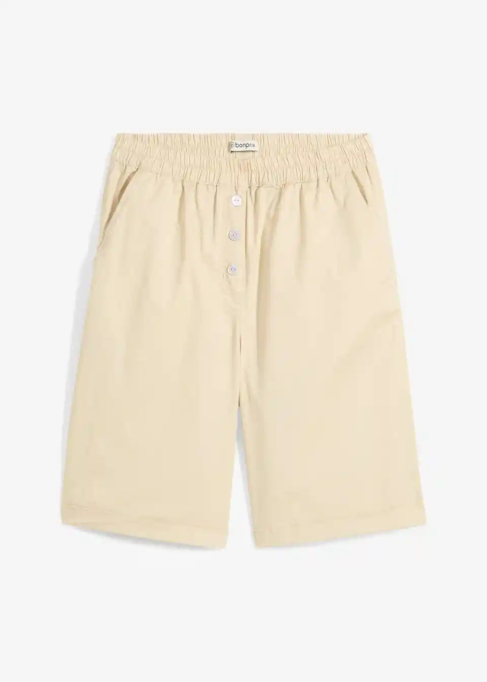Bermuda z visokim, elastičnim pasom in stranskimi vstavljenimi žepi.