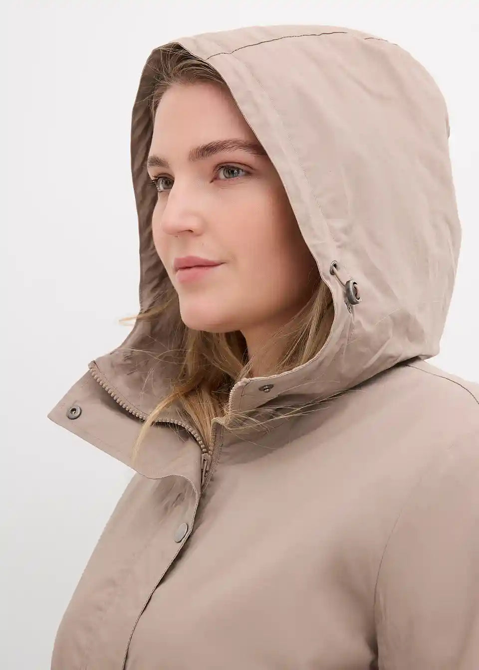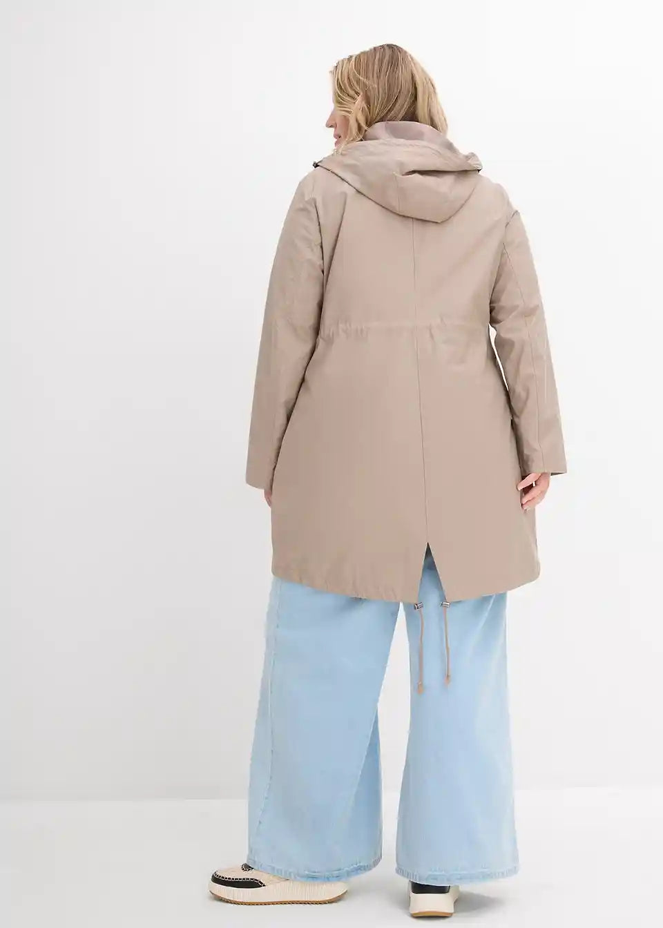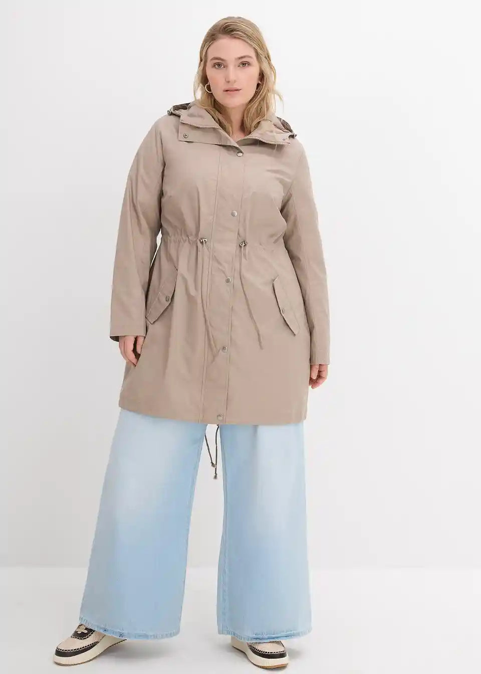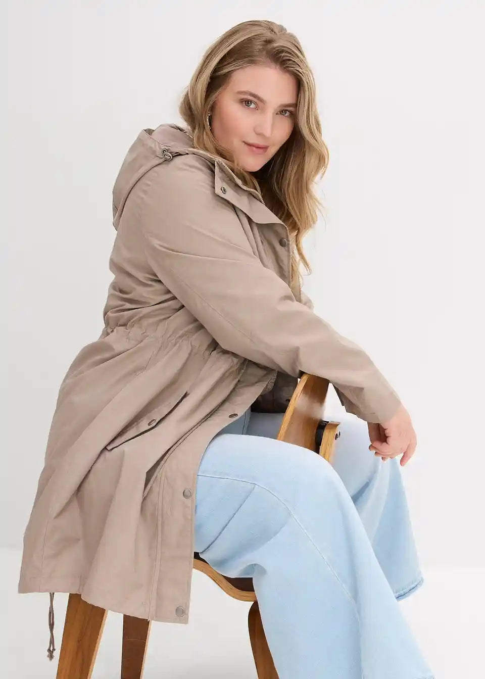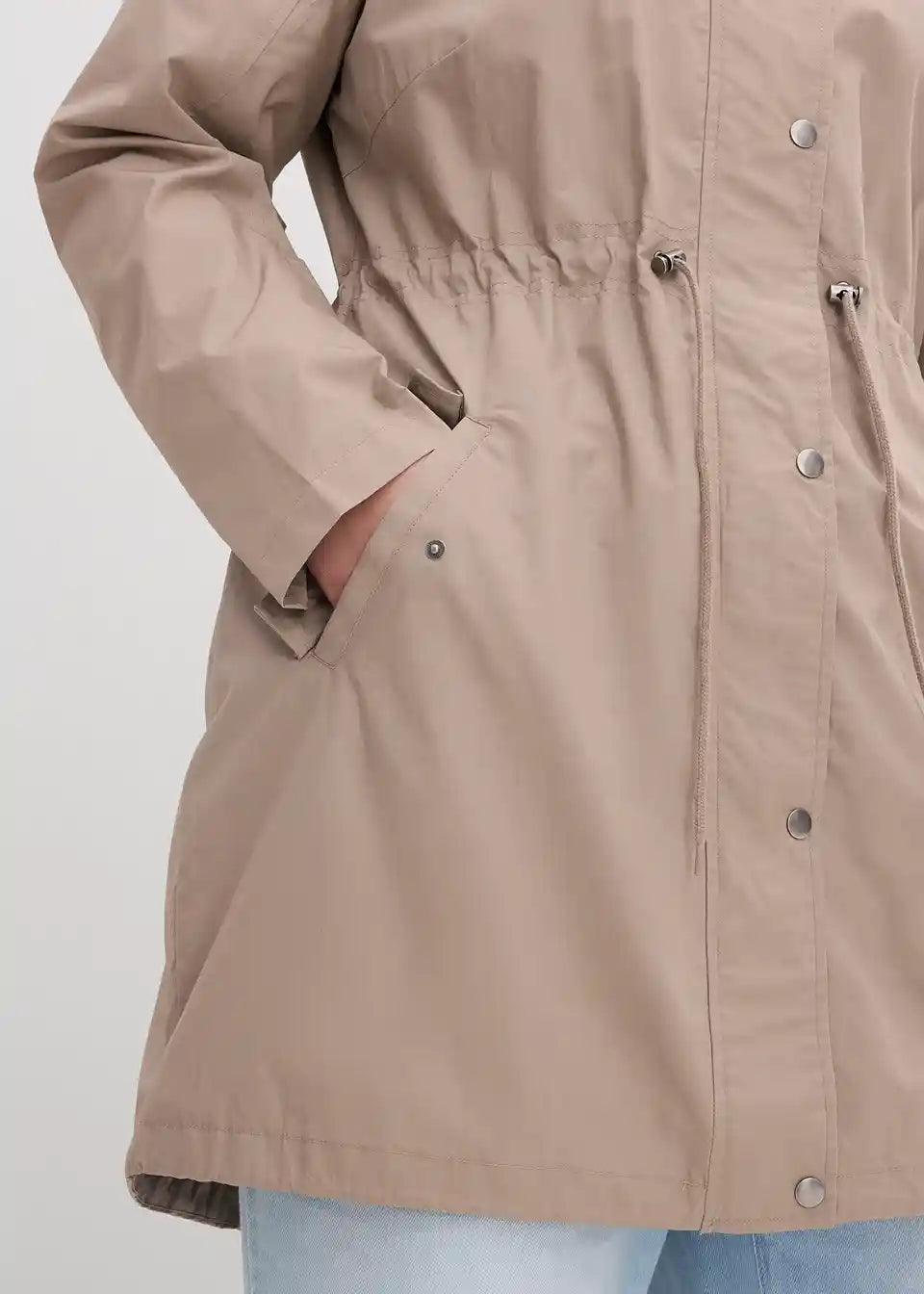 Udoben, dolg in sproščen kroj naredi ta parka priljubljen kos oblačila. Parka ima stranske žepke z zavihki in zapiranjem na pritiskač ter kapuco. Širina je nastavljiva v pasu.