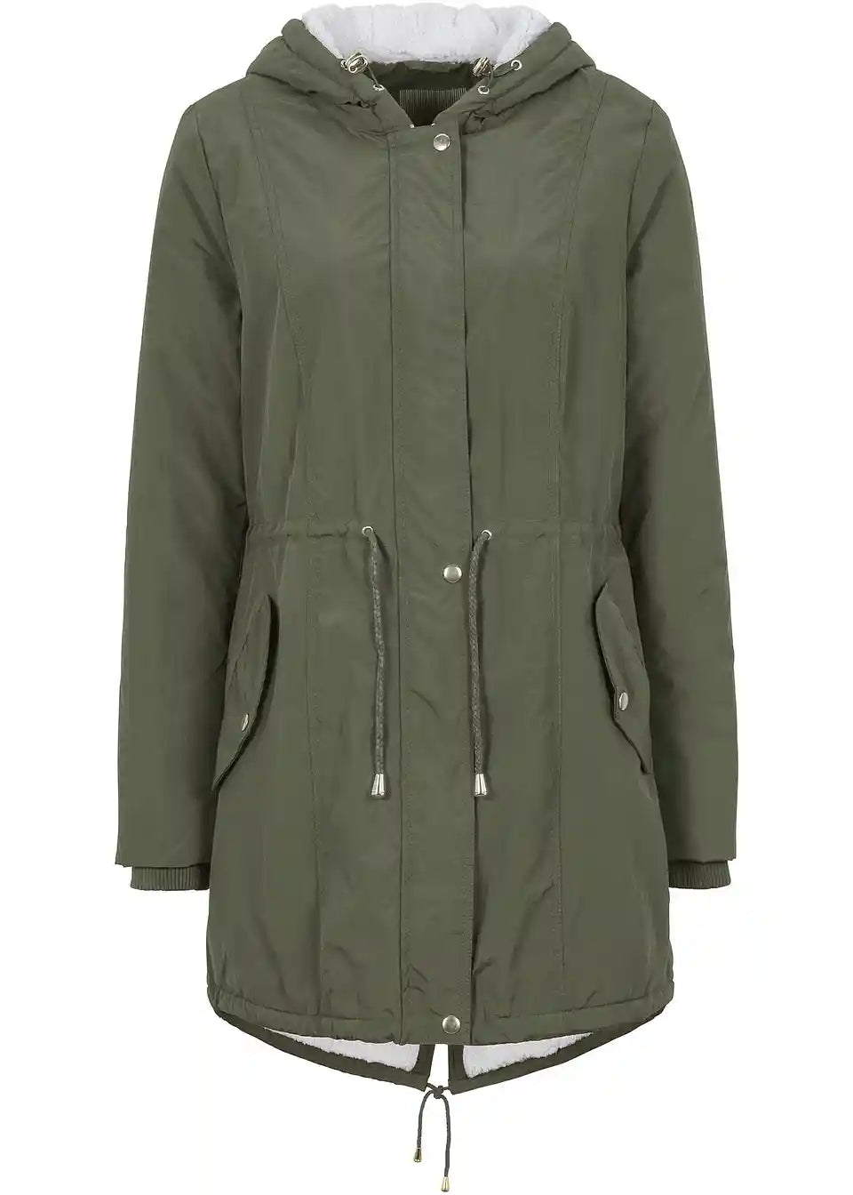 Parka je vedno prava izbira! Ta prehodna jakna ima vse, kar parkico naredi priljubljen kos oblačila za festivale in aktivnosti na prostem: udobna teddy-flis podloga ščiti pred mrazom in daje barvni kontrast. Kapuca ščiti pred vetrom in dežjem. Prešivi in vrvica v pasu poskrbijo za popolno prileganje. Poševno nameščeni žepi in zaobljen rob z asimetričnim krojem dopolnjujejo sproščen in ležeren vtis te jakne.