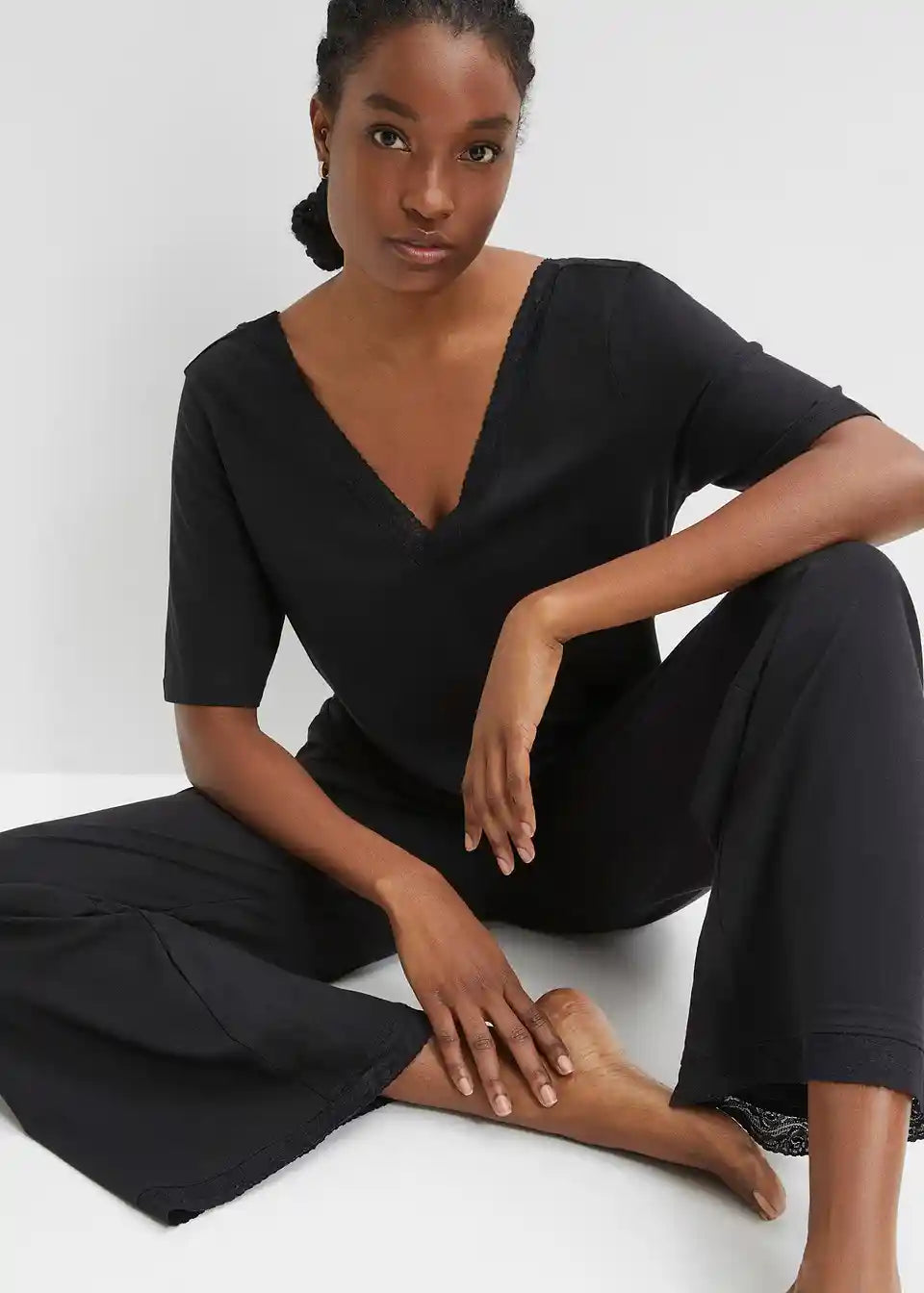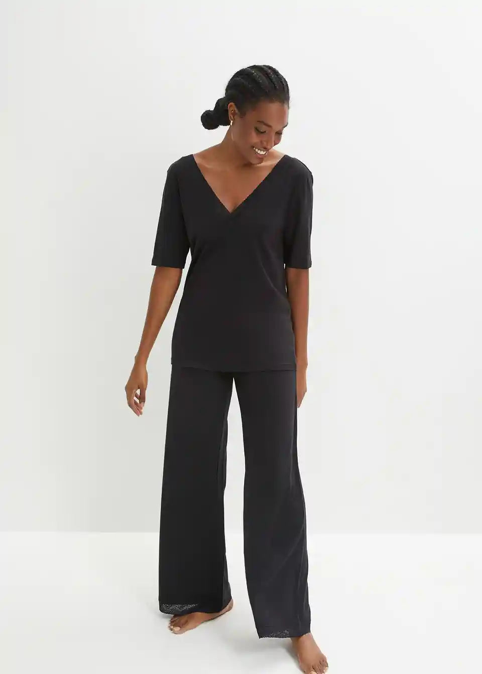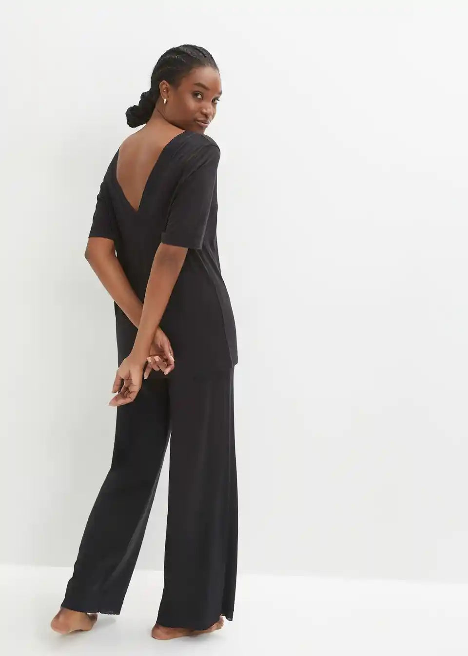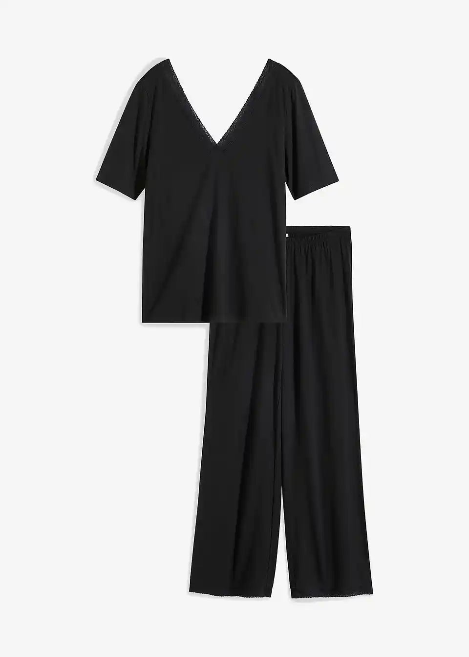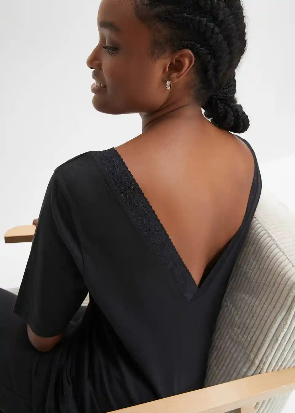 Eleganten domači komplet iz padajoče viskoze s čipko