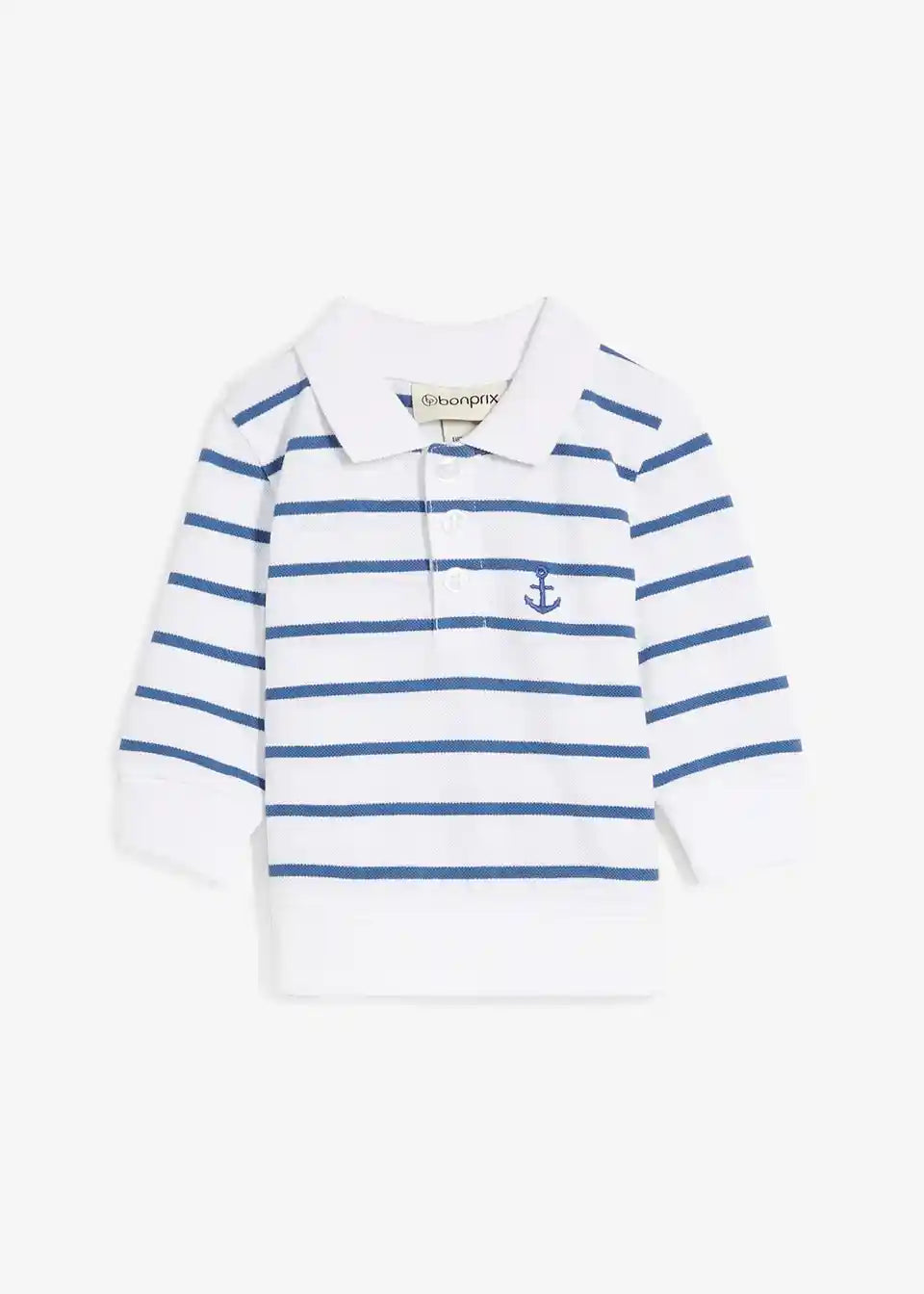 Pike polo majica iz čistega bio bombaža z dolgimi rokavi in klasičnim ovratnikom. Črtast dizajn s sprednjim zapenjanjem na gumbe in izvezenim motivom sidra na prsih. Mehka pike struktura za prijetno udobje pri nošenju.