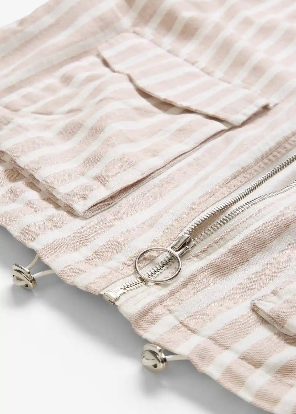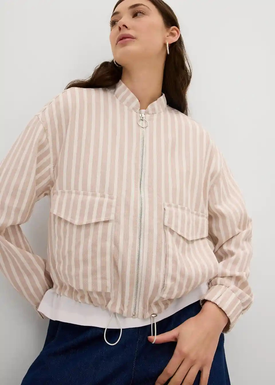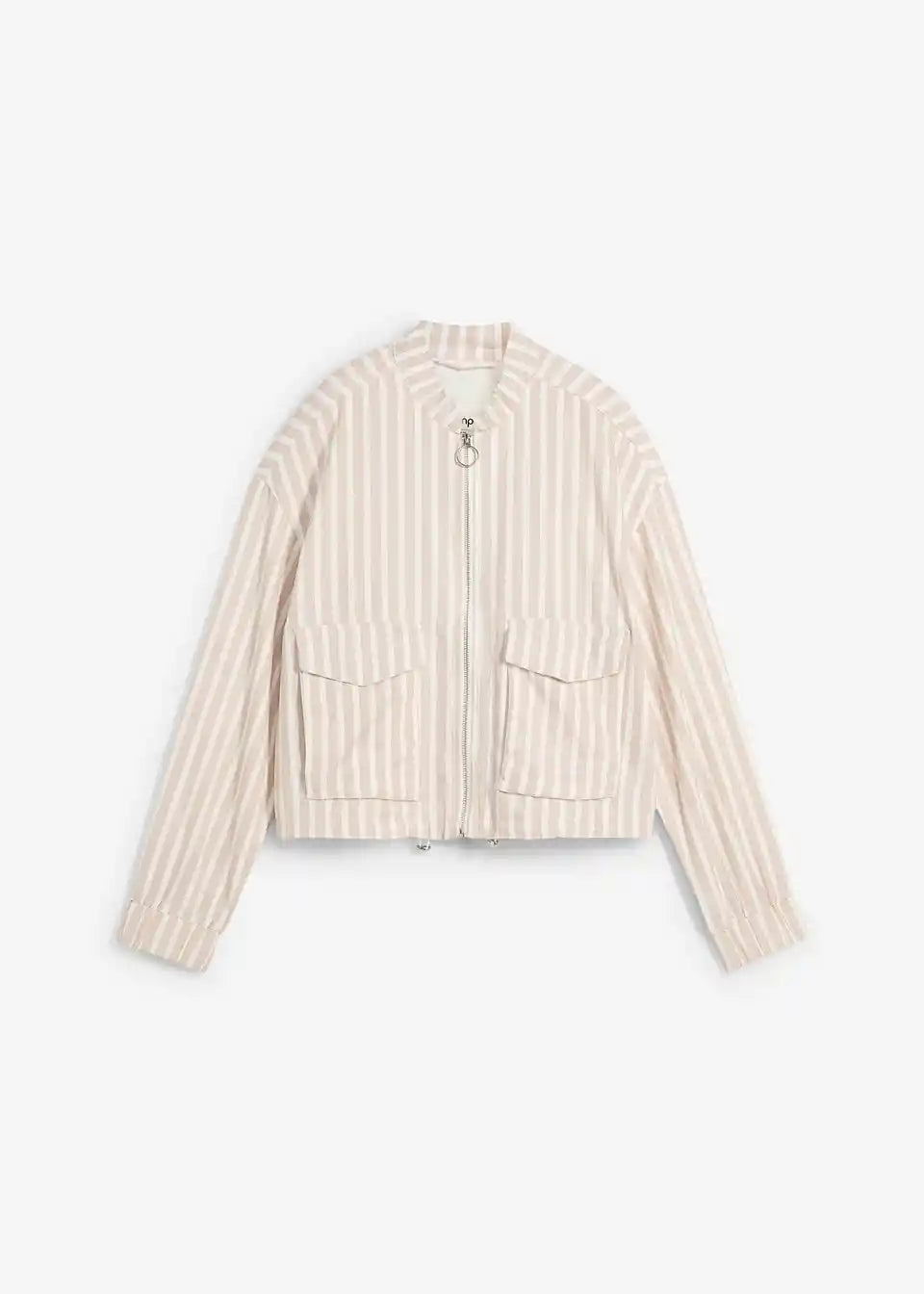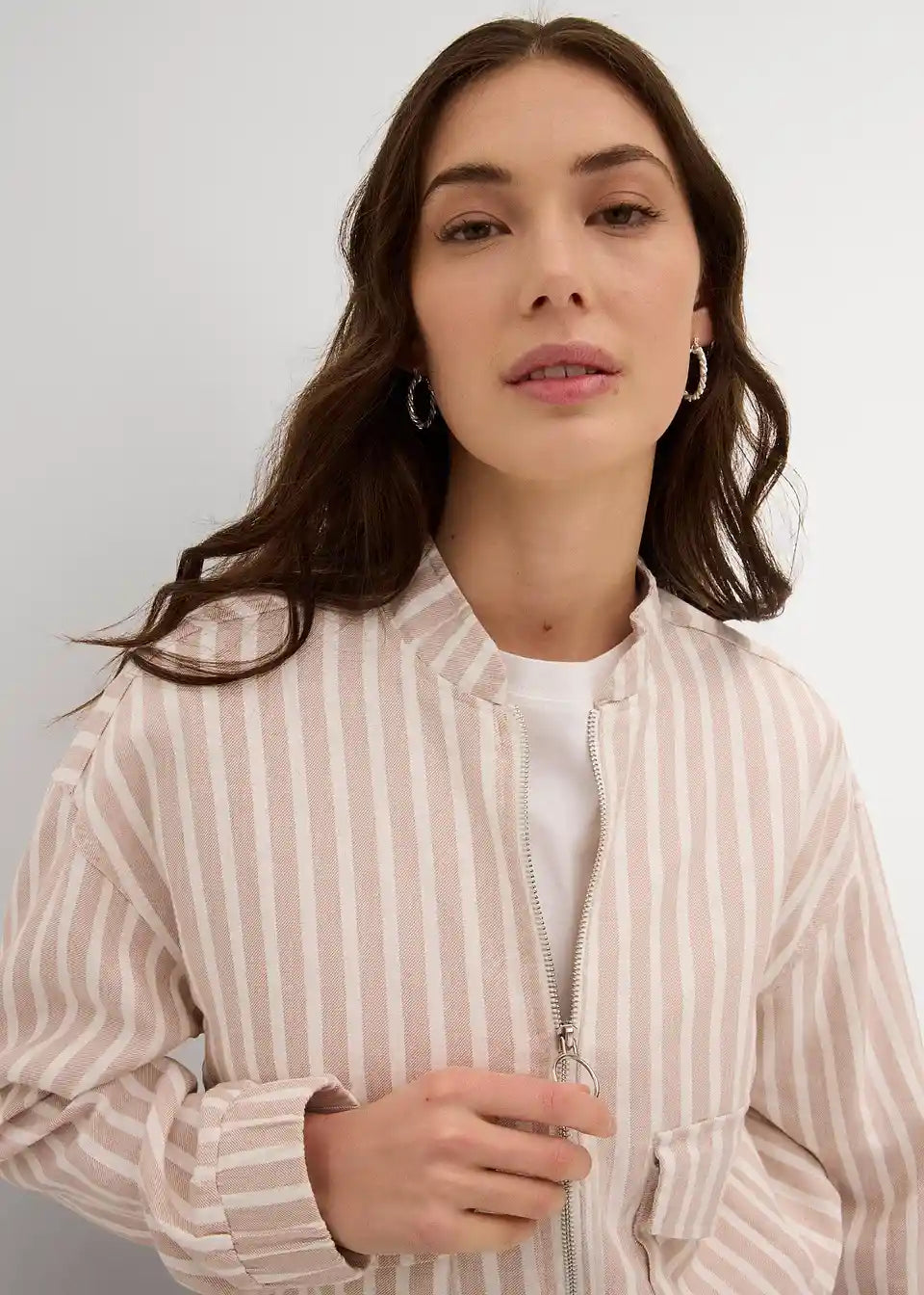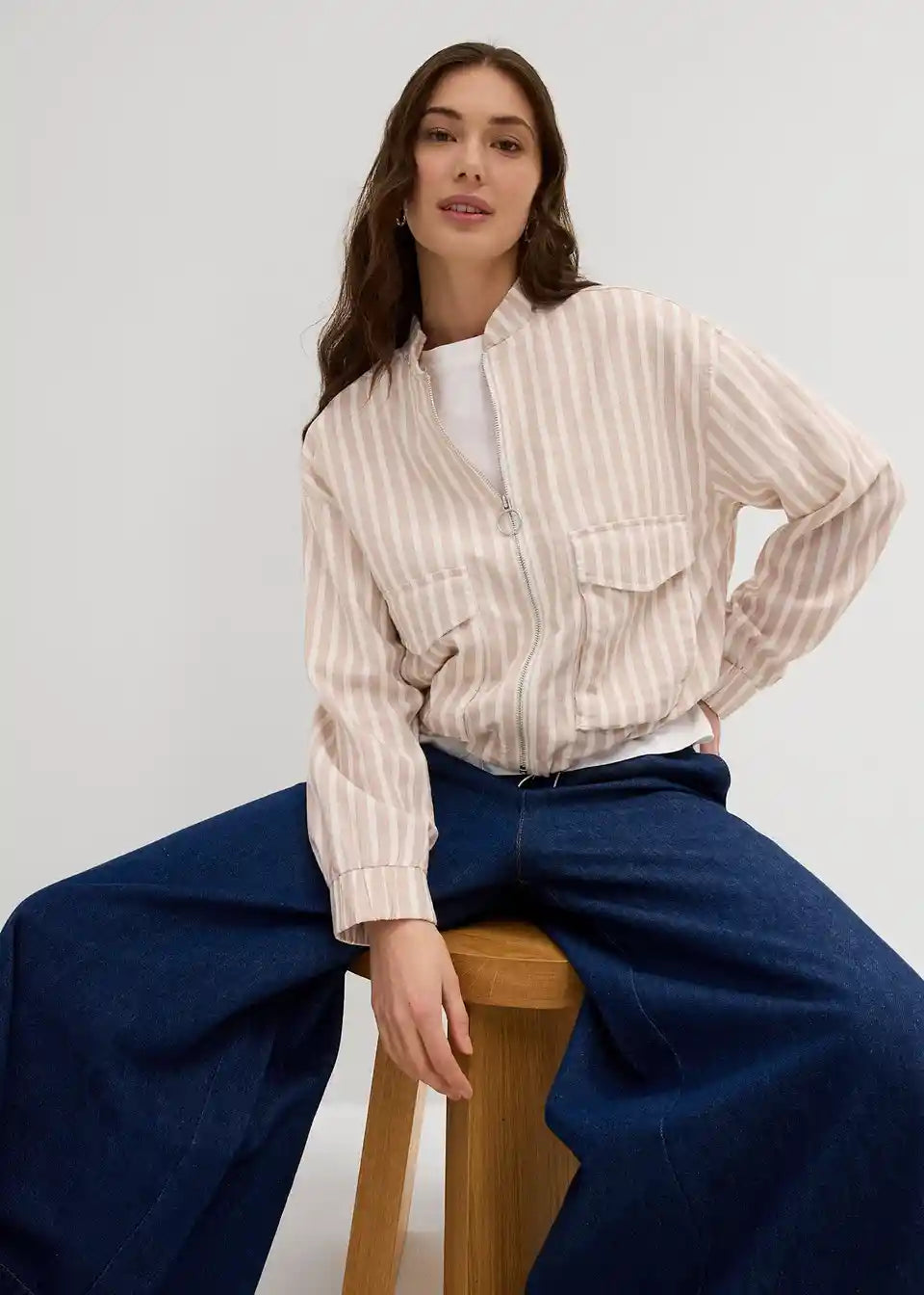 Sproščena pilotska jakna v videzu lanu z našitimi žepi