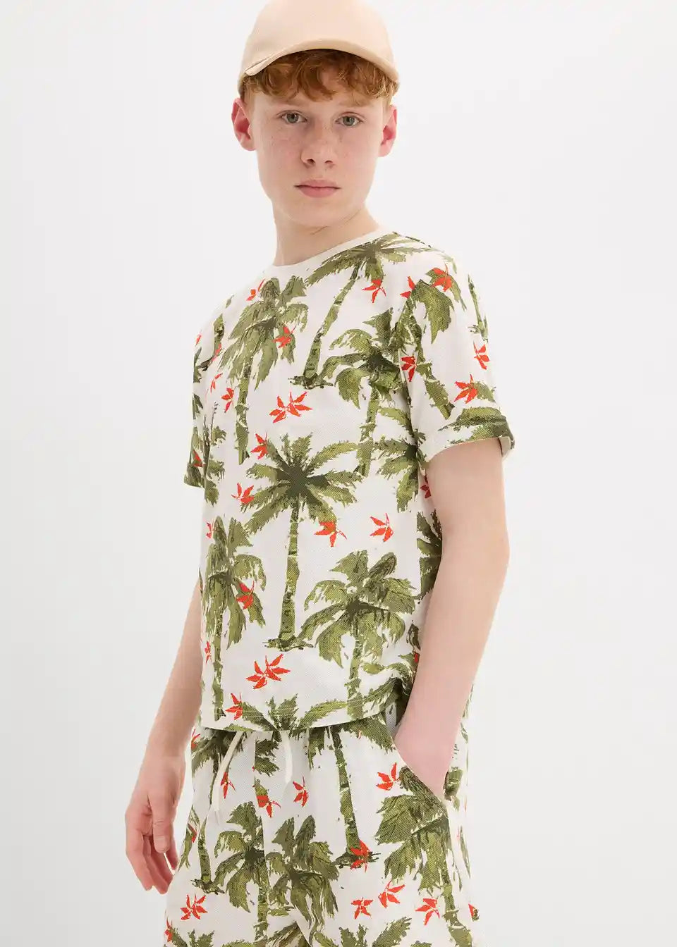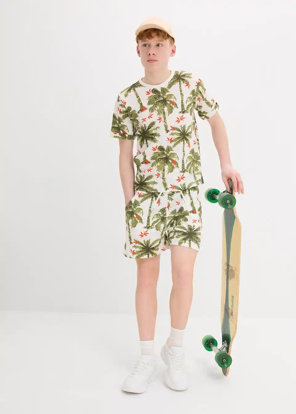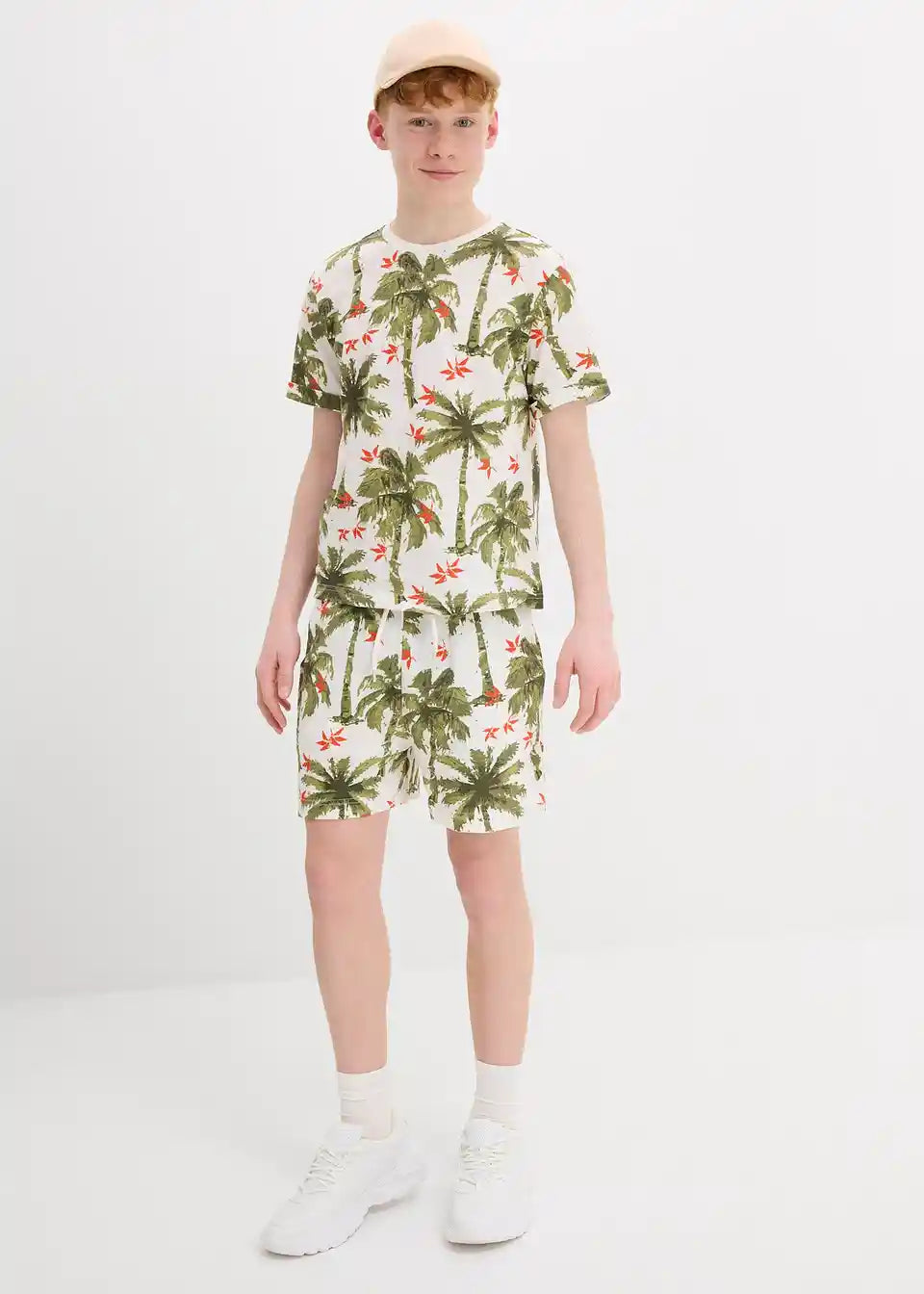Modni komplet za fante: majica in bermuda hlače z elastiko iz čistega bombaža v Piqué kakovosti