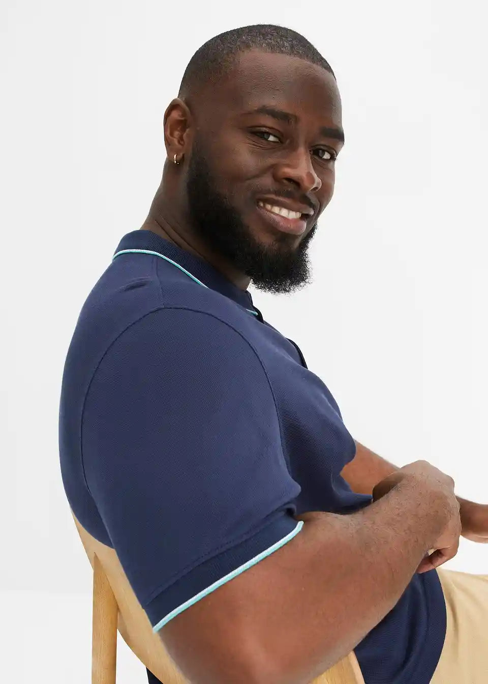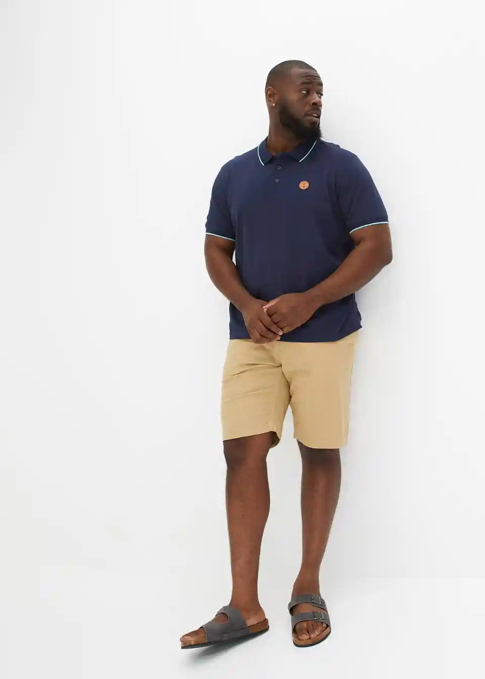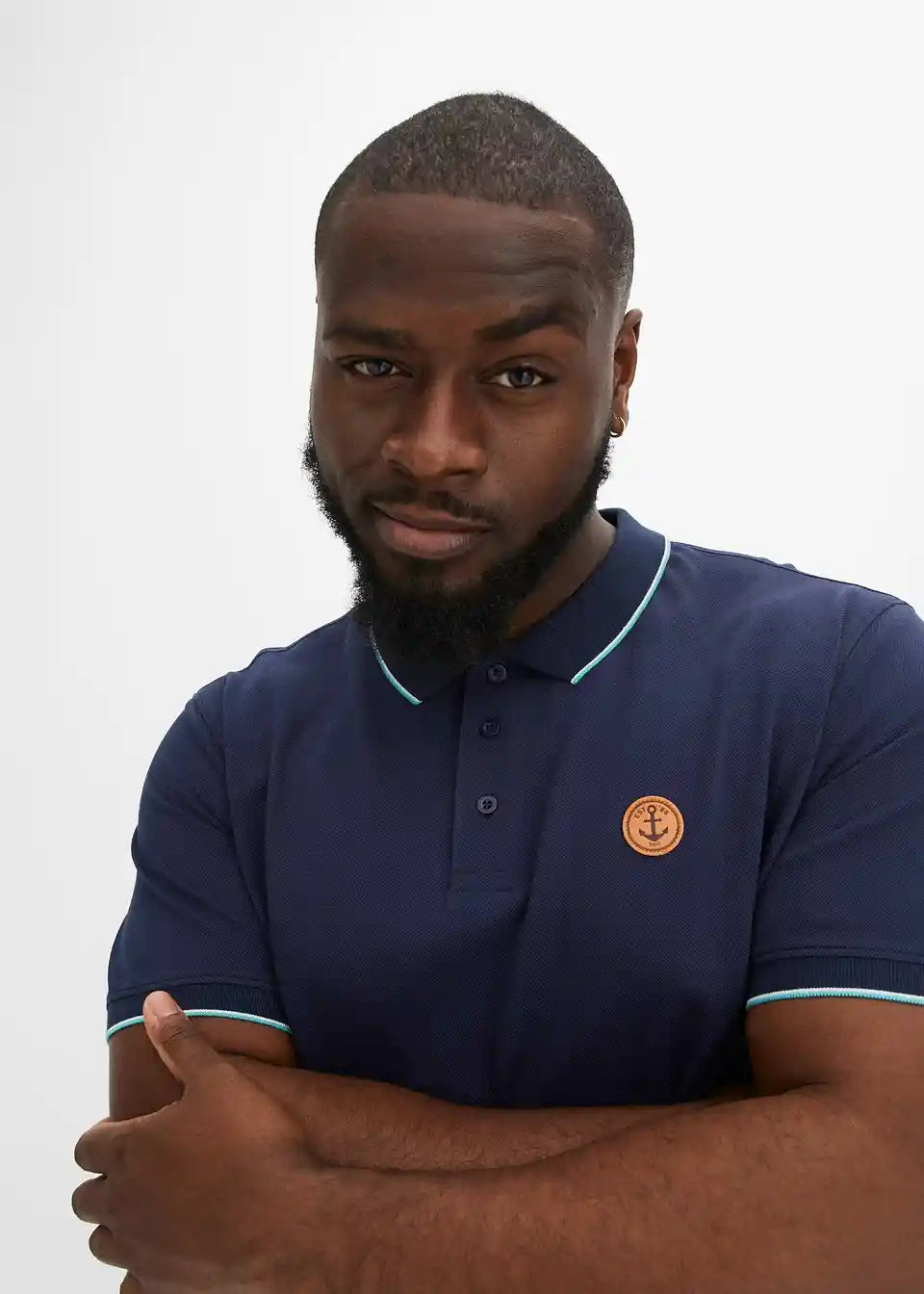 Mornarska Poloshirt majica z imitacijo usnjenega našitka na prsih
