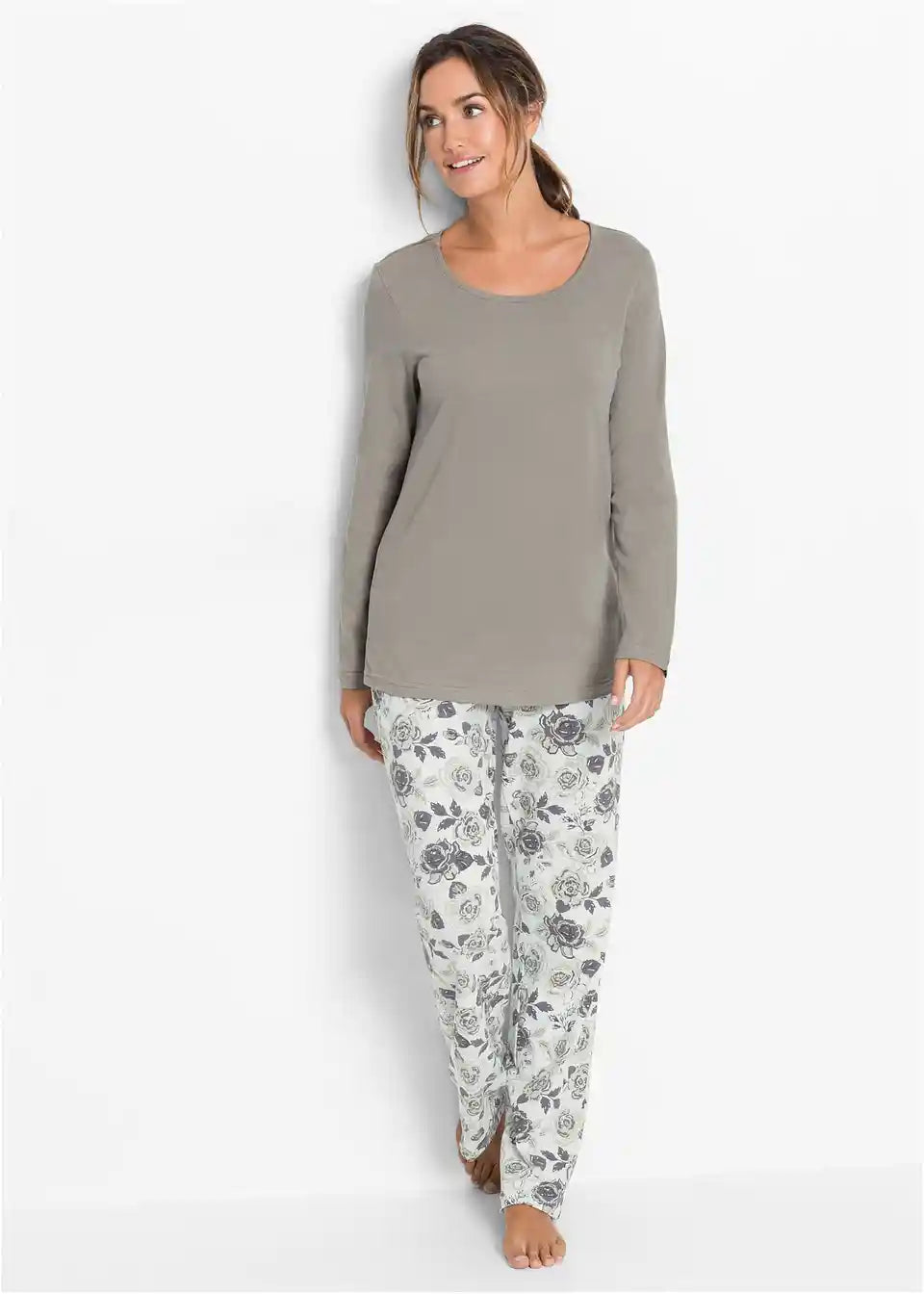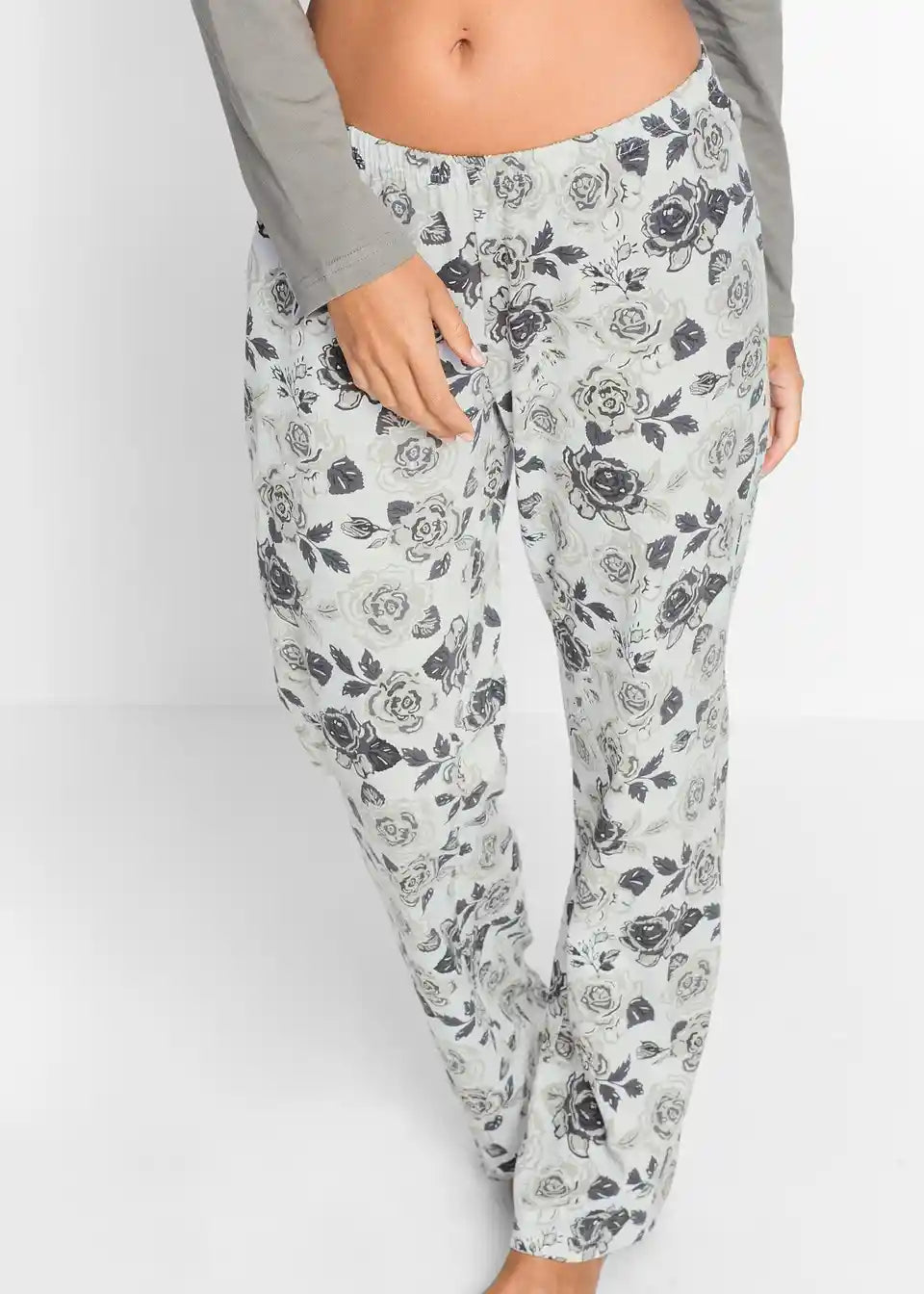 Pižama znamke bpc ponuja še posebej lep in ženstven dizajn. Medtem ko je zgornji del preprost in eleganten, hlače presenetijo s filigranskim vzorcem vrtnic. Različni videzi hlač in zgornjega dela so popolnoma trendovski in hkrati zelo praktični. K njej lahko kadar koli kombinirate tudi druge kose oblačil. Hlače so izdelane z elastiko v pasu. Oba dela sta narejena iz prijetnega materiala in omogočata udobje skozi vse leto.