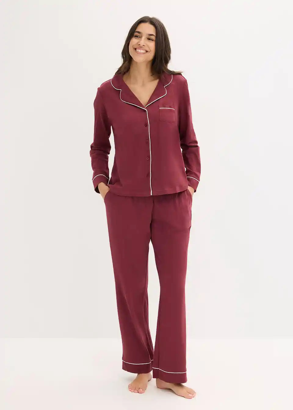 Udobna pižama s fazona ovratnikom in letvijo z gumbi ter všitimi žepi na hlačah