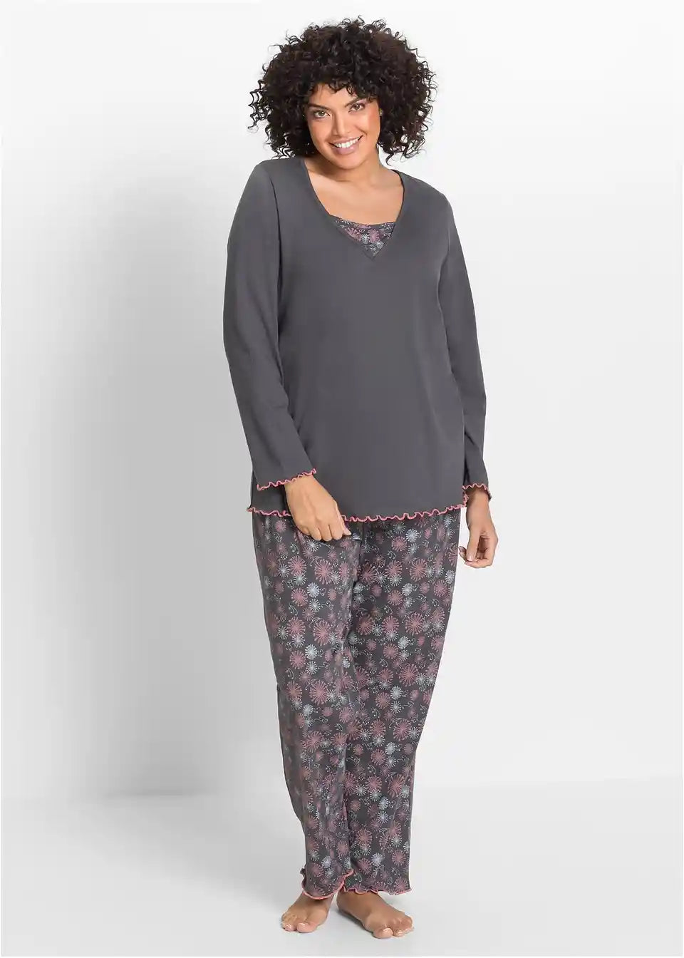 Ta pižama znamke bpc selection poskrbi za udoben spanec in navdušuje z okusnim dizajnom. Na voljo je v dvodelnem kompletu, ki ga sestavljata zgornji del pižame in hlače. Zgornji del z dolgimi rokavi se ponaša z privlačnim slojevitim videzom. Udoben elastičen pas na dolgih hlačah zagotavlja dober komfort.