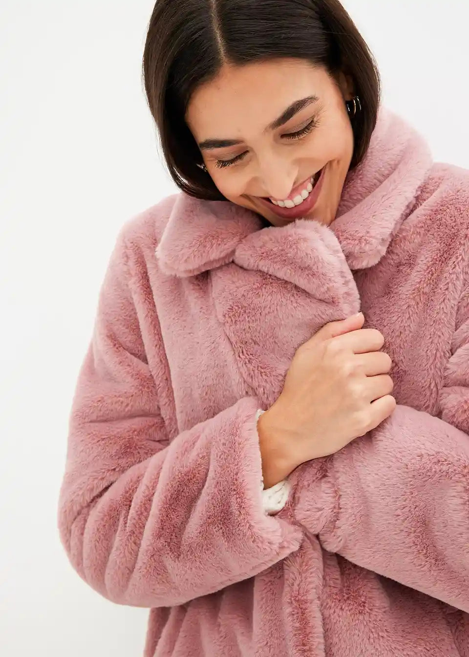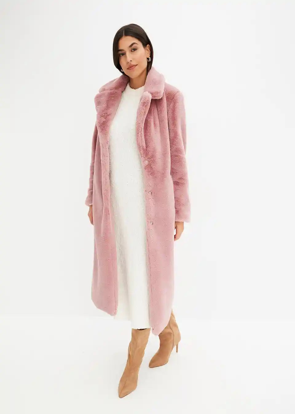 moden plašč iz umetnega krzna z zapenjanjem na sprednjem delu