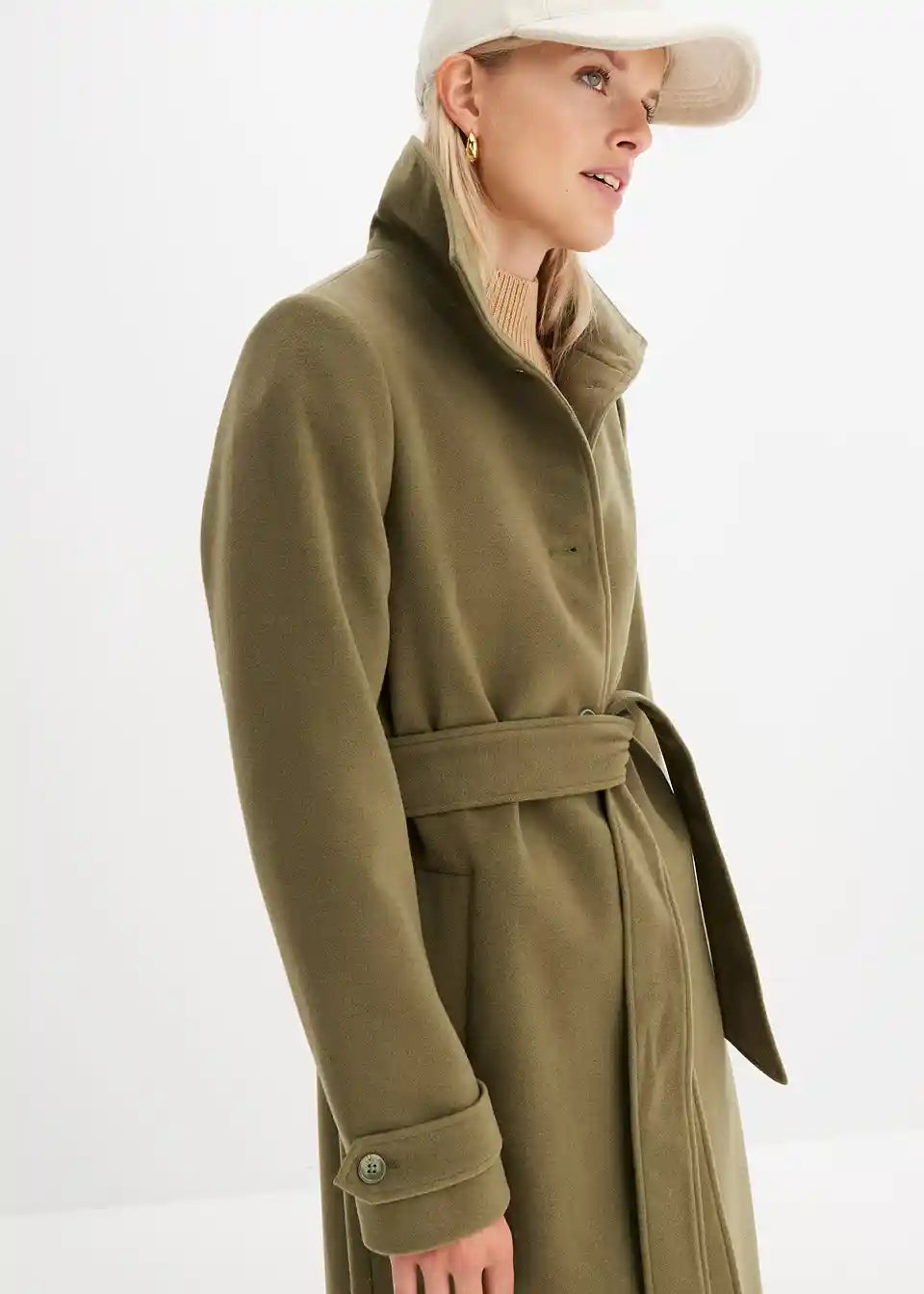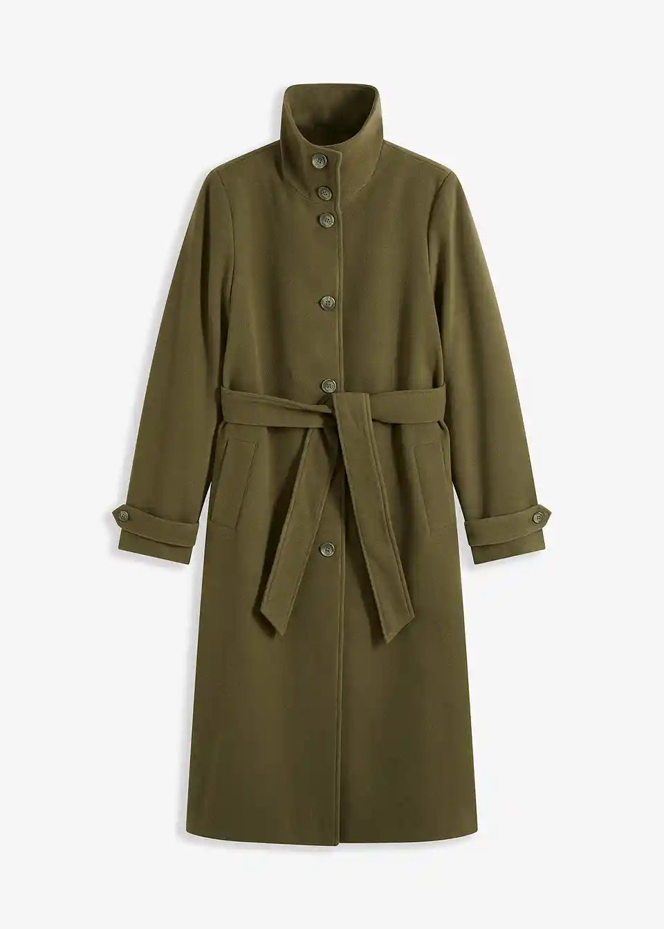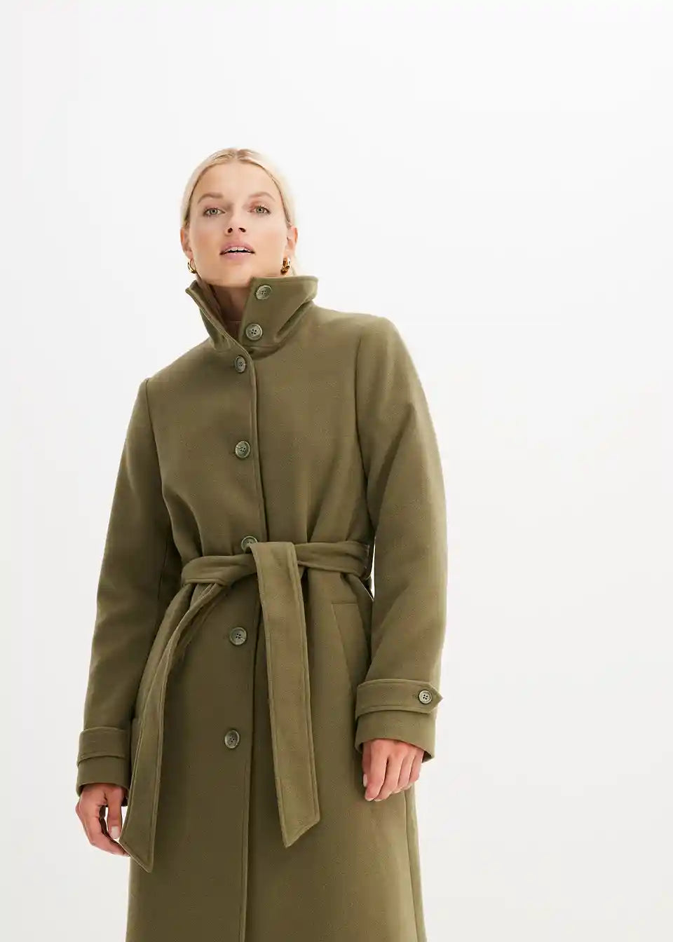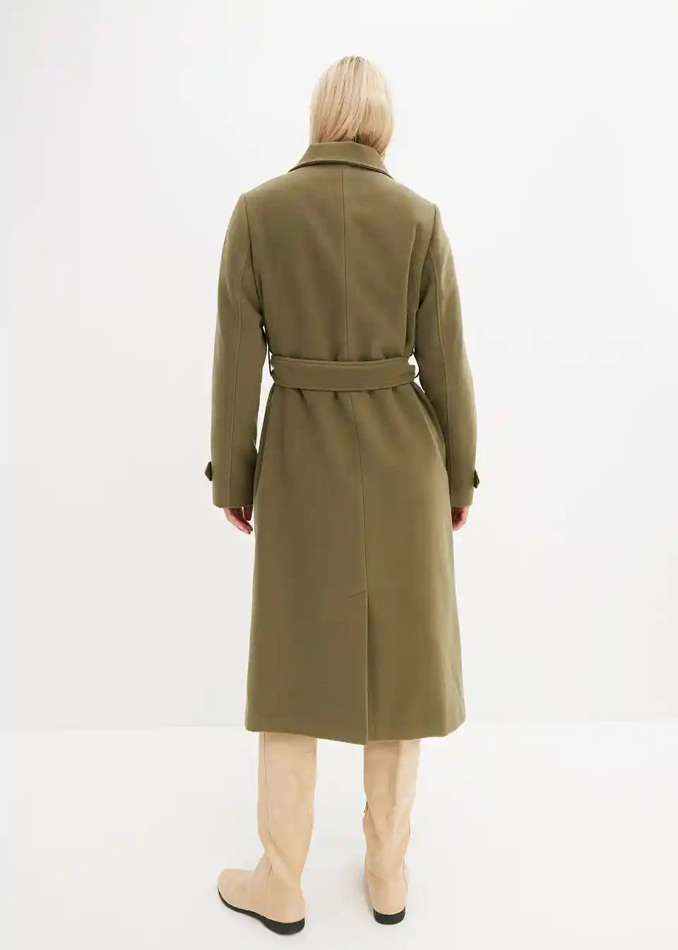 Eleganten plašč s podrobnostjo gumbov in pasom