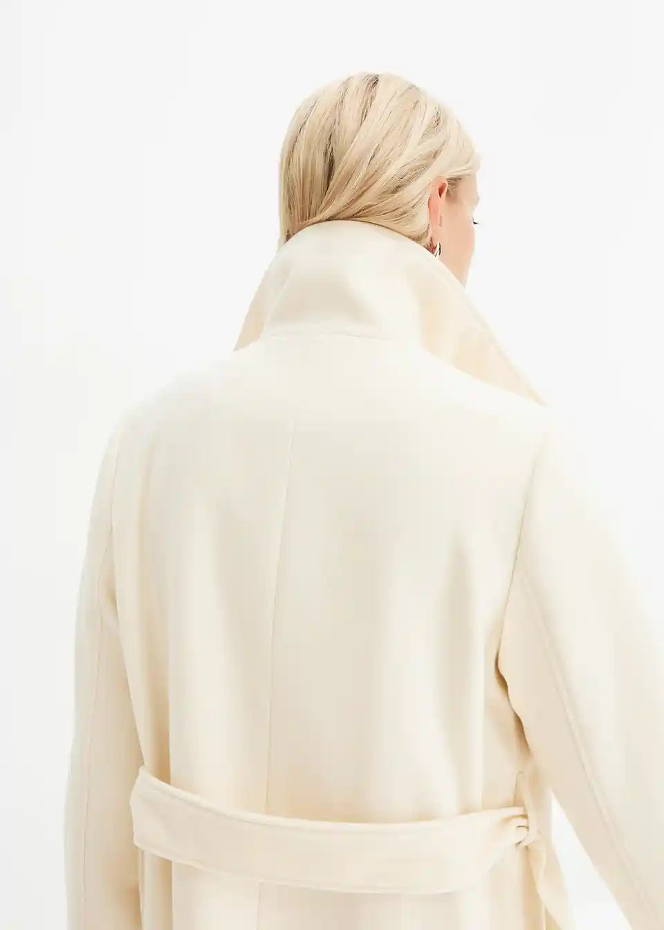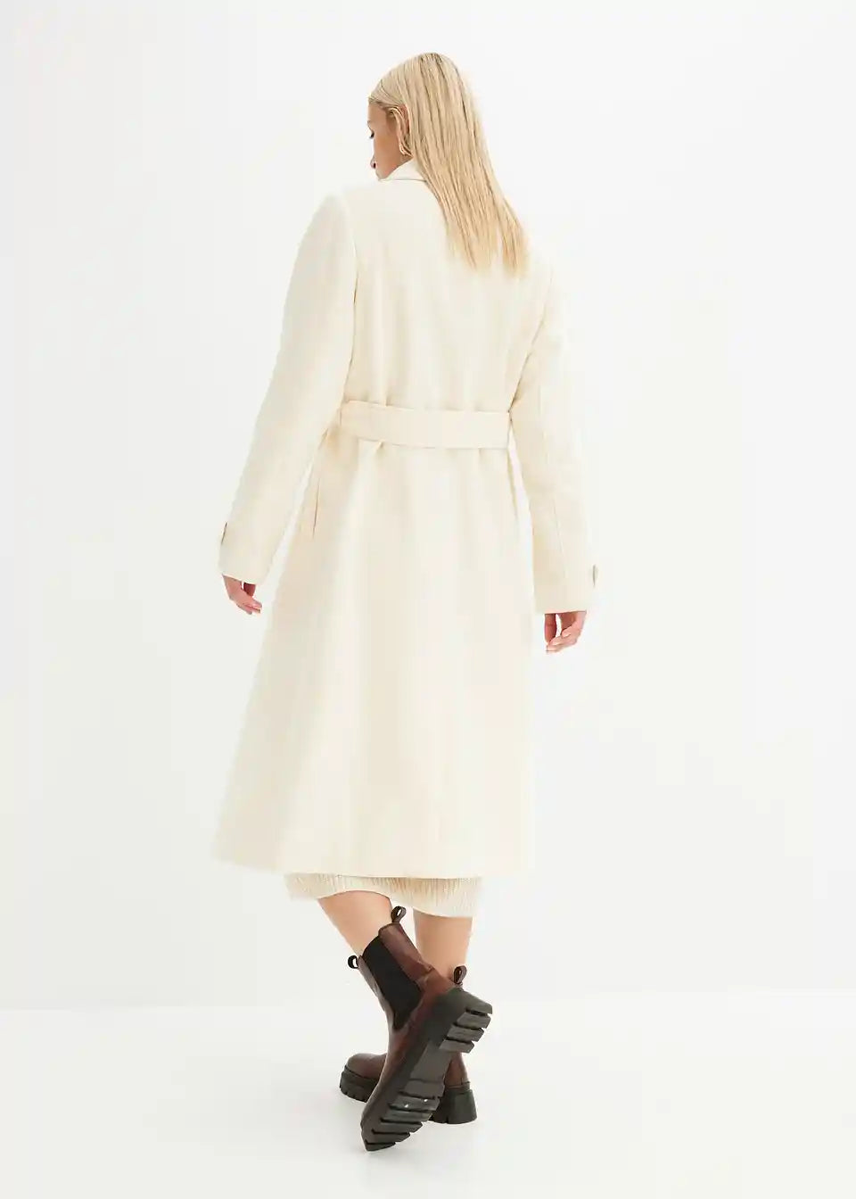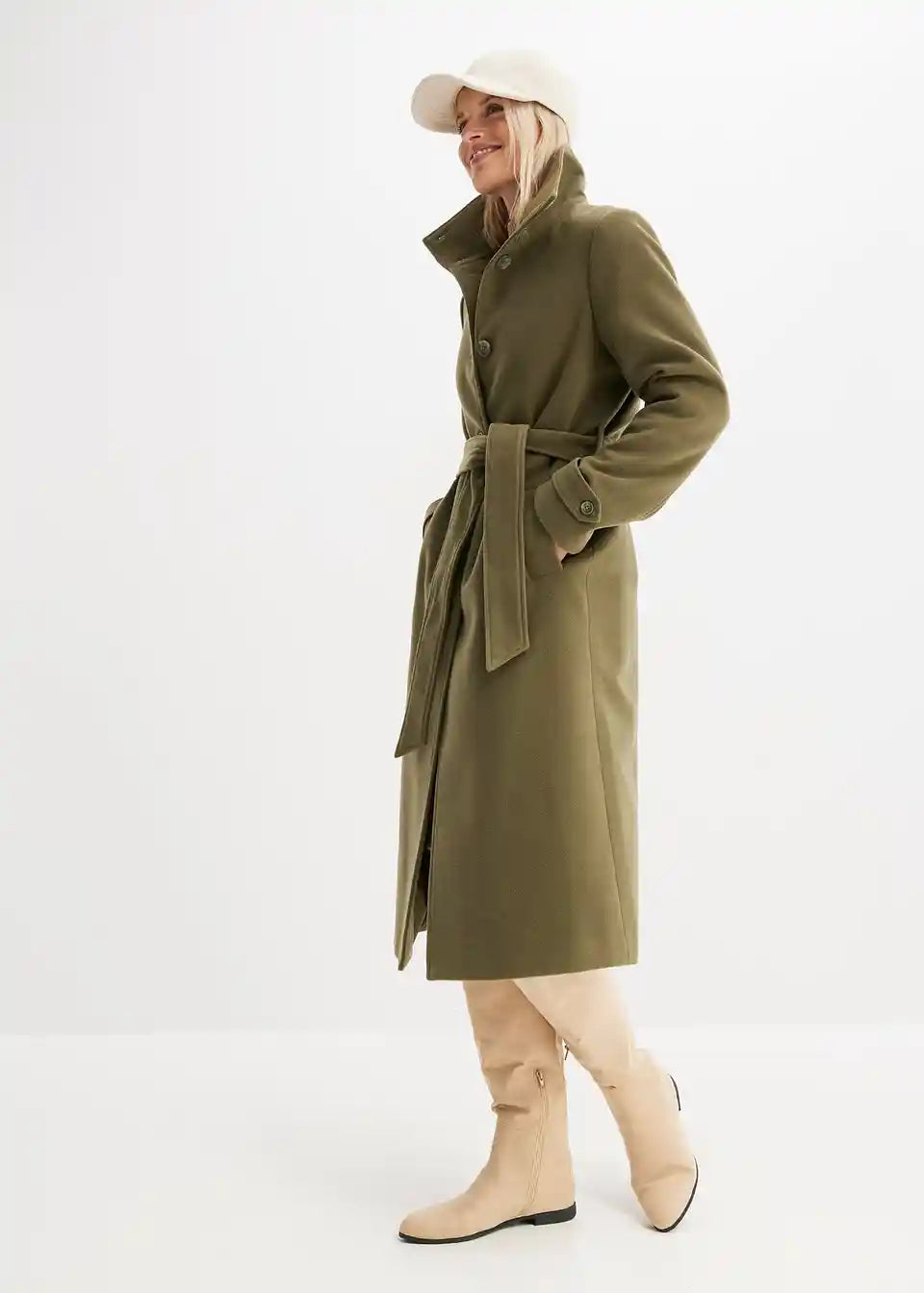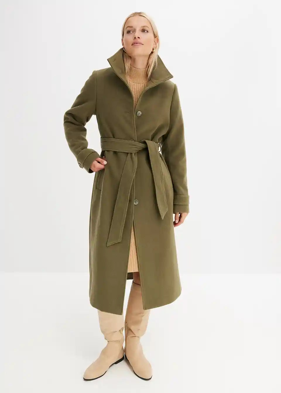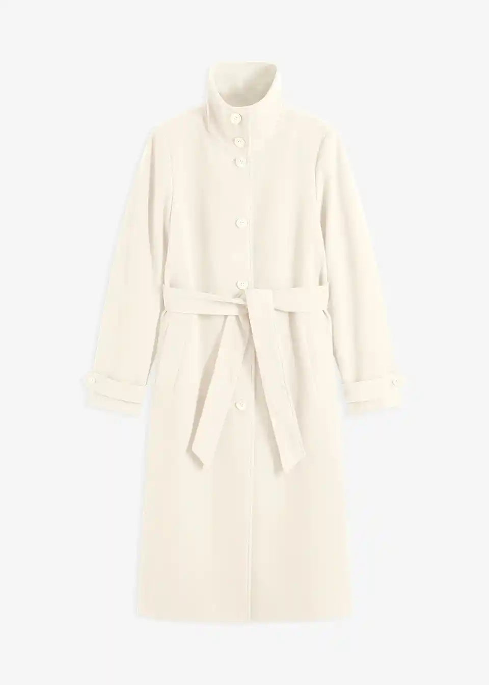 Eleganten plašč s podrobnostjo gumbov in pasom