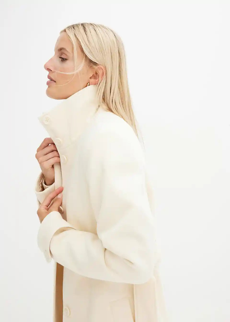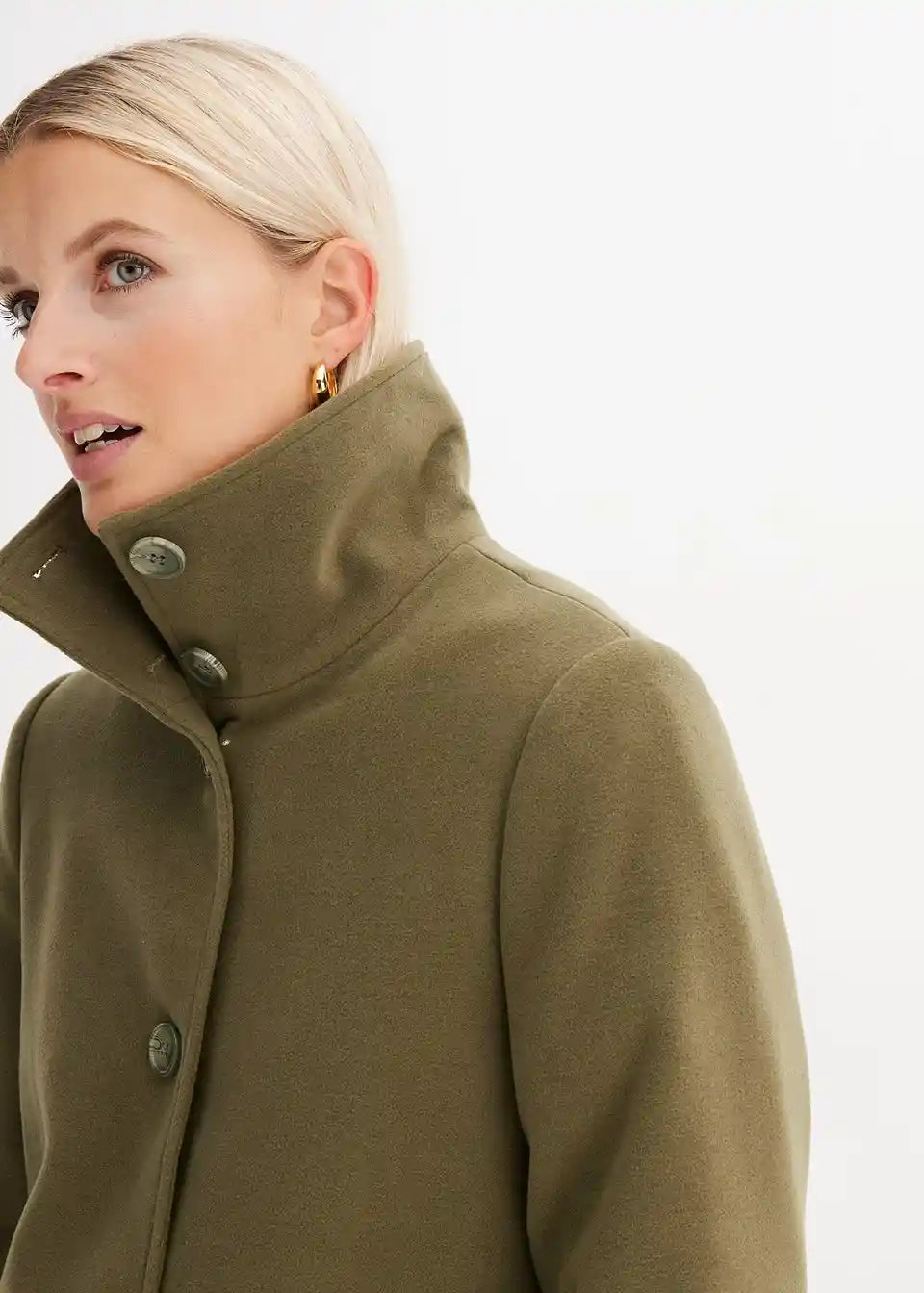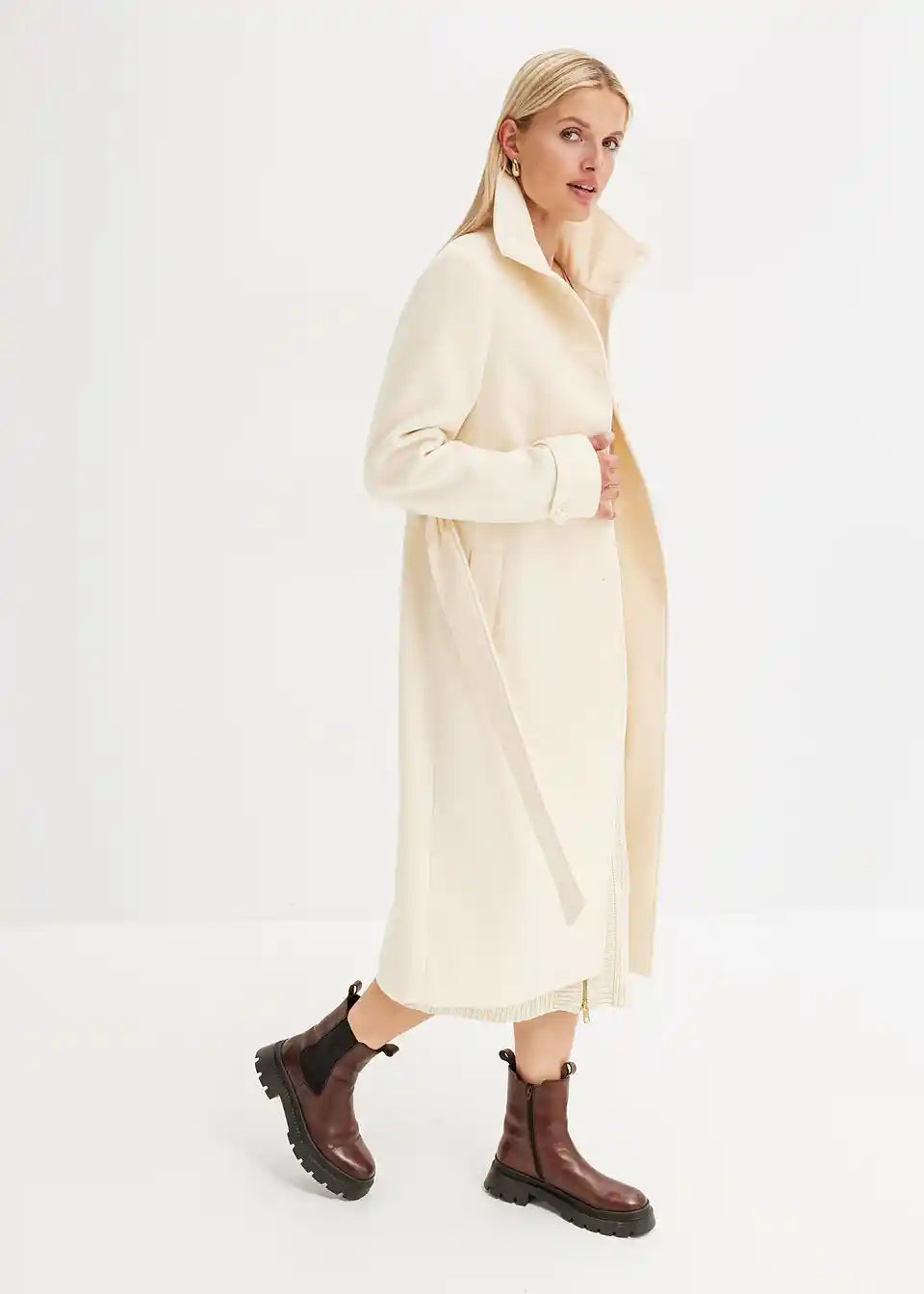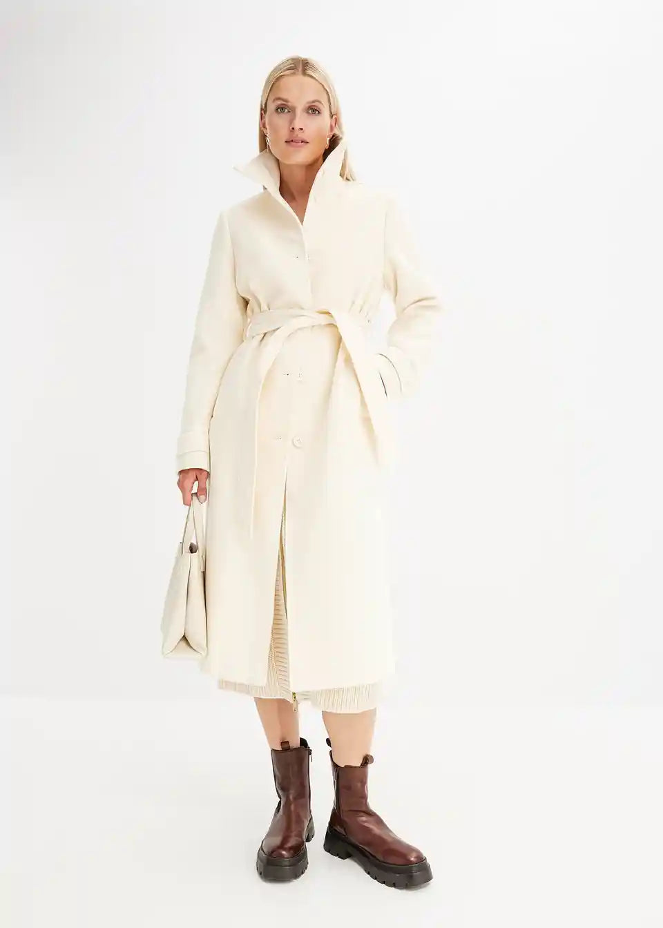 Eleganten plašč s podrobnostjo gumbov in pasom