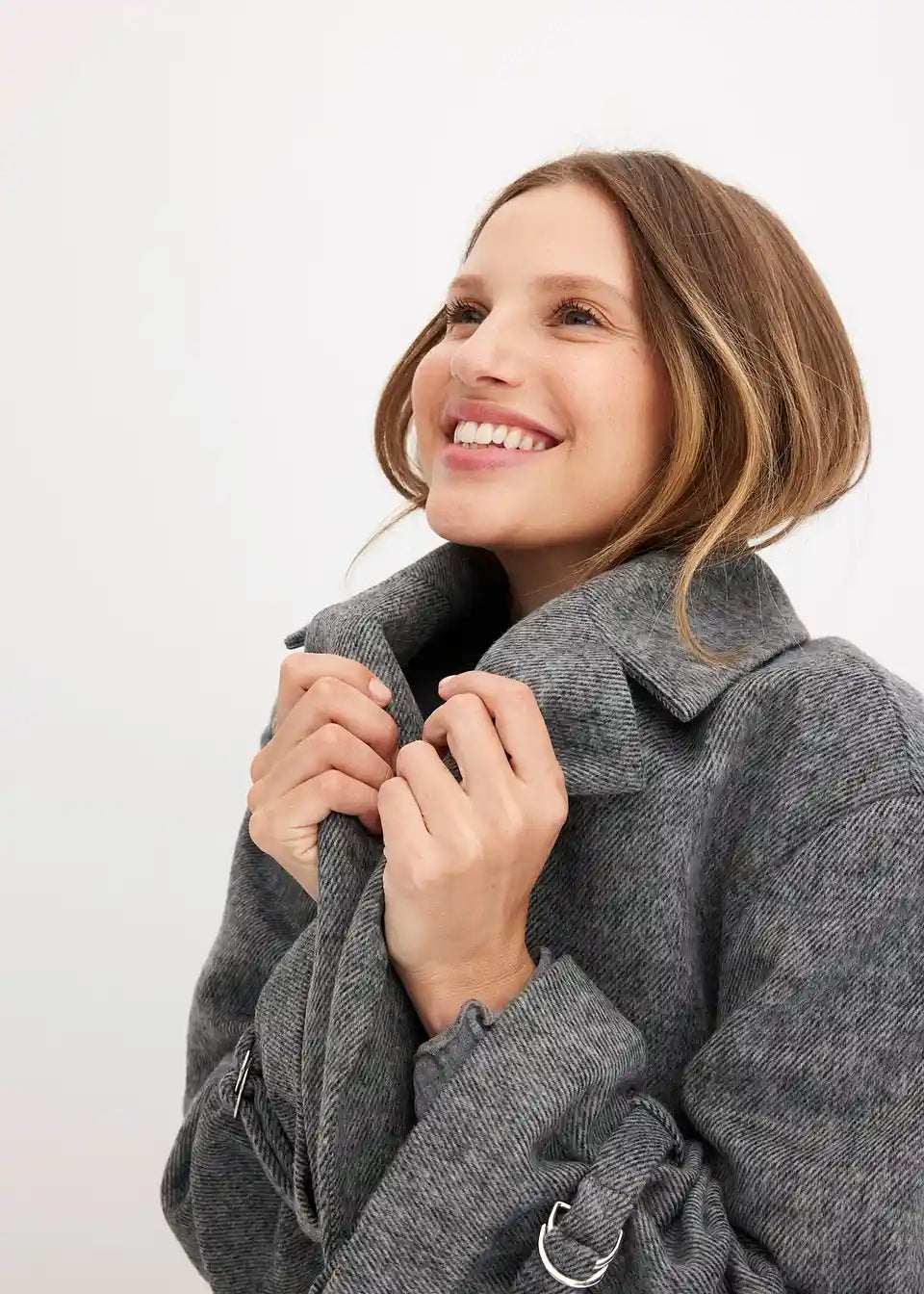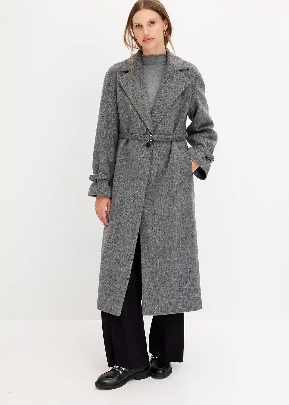 Plašč s pasom in vzorcem ribje kosti
