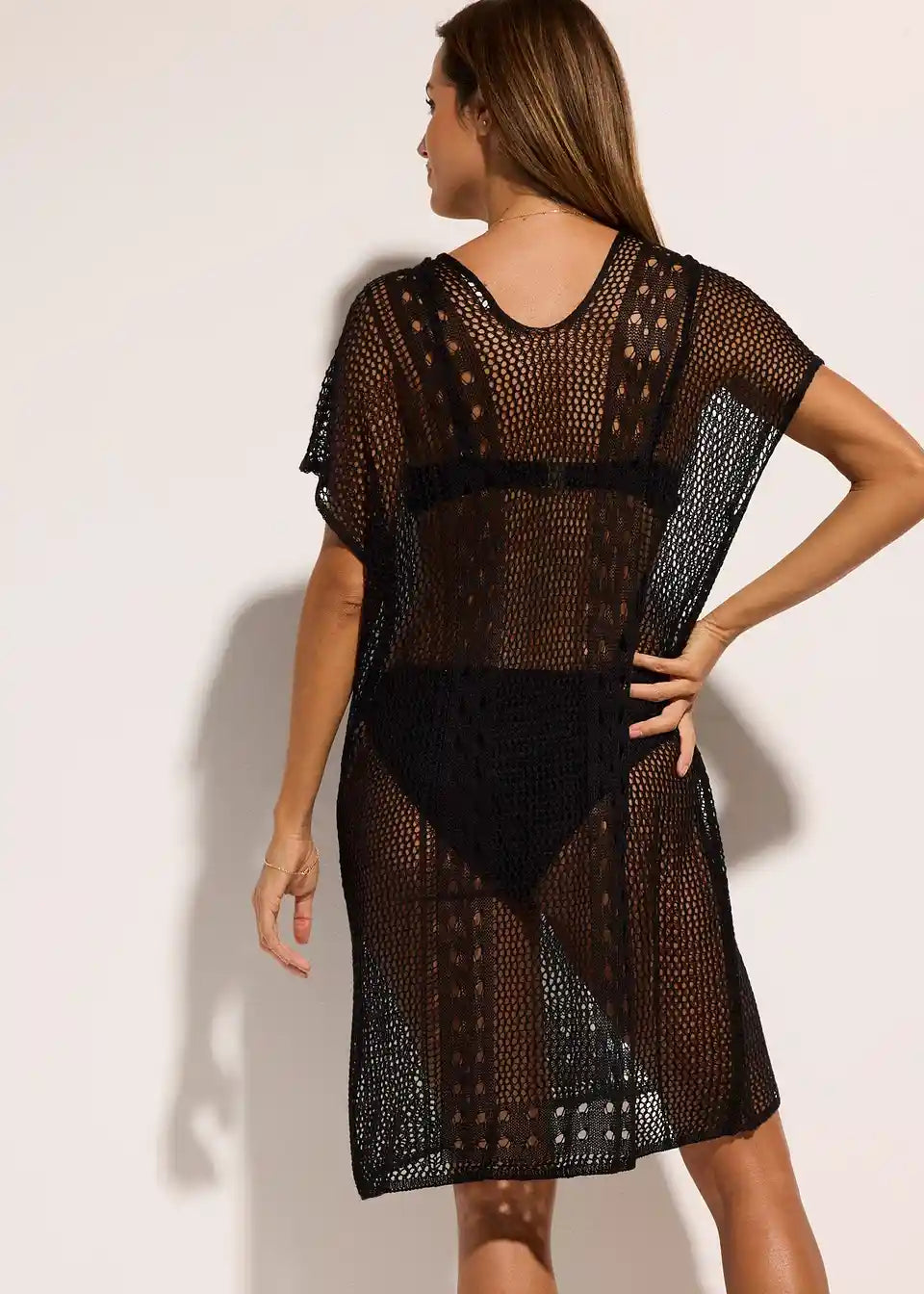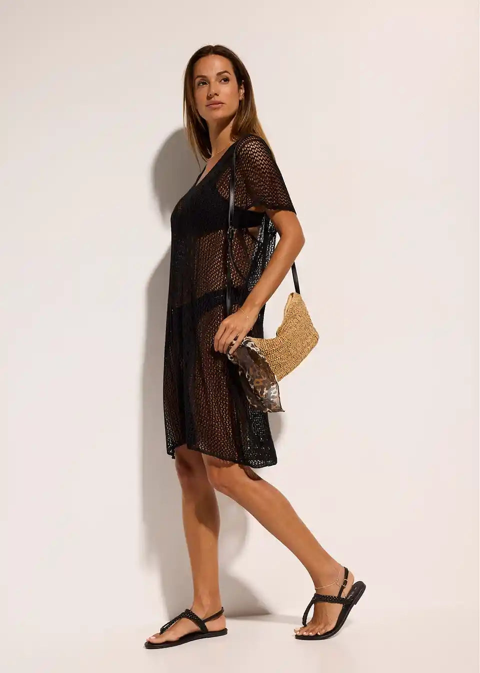 Obleka za na plažo v kvačkanem videzu iz padajoče viskoze