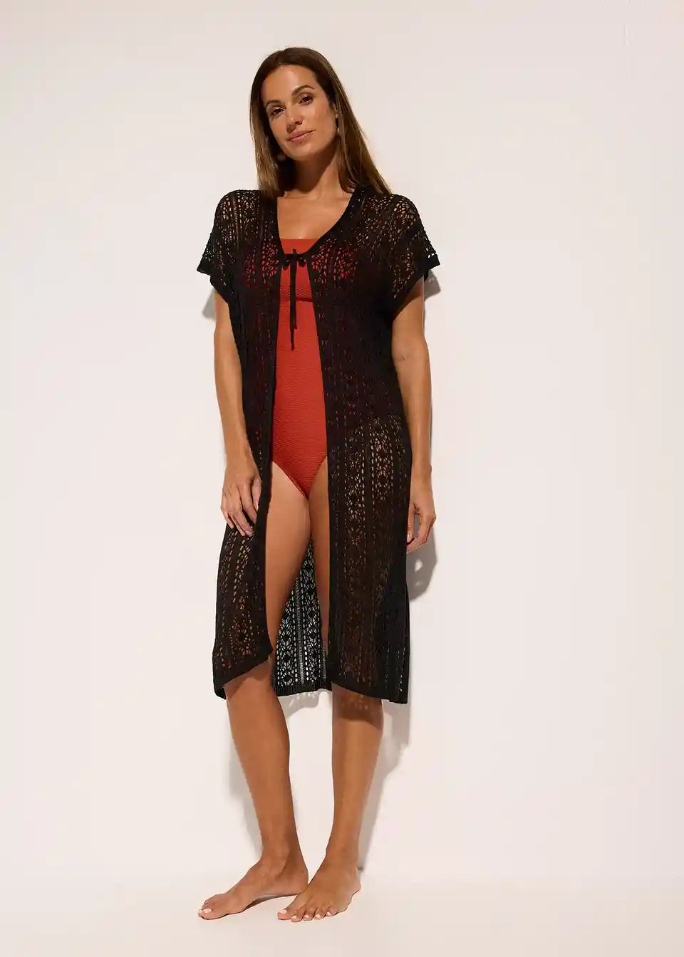 Kimono za na plažo v kvačkanem videzu iz viskoze