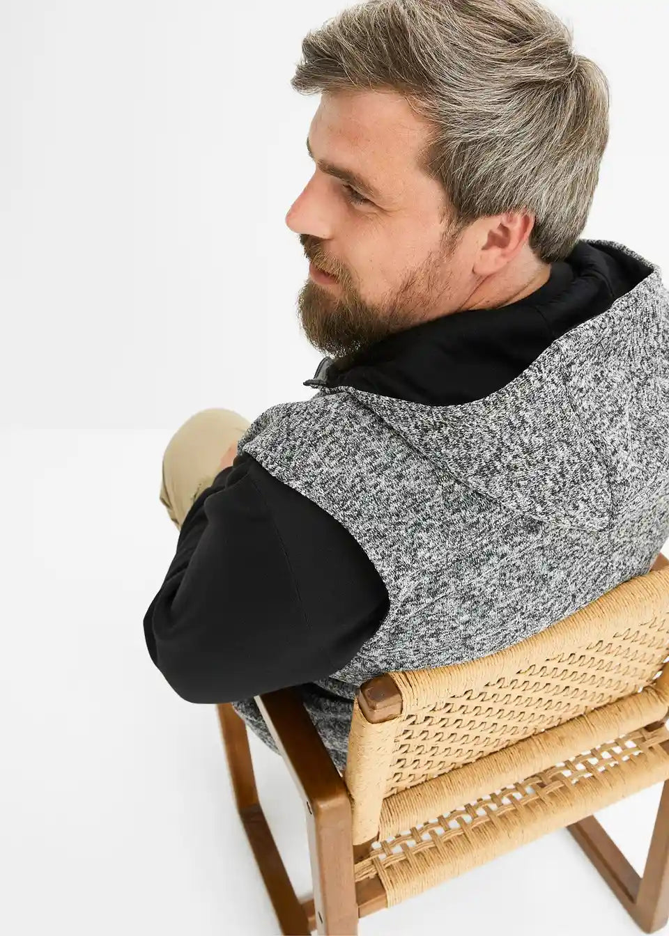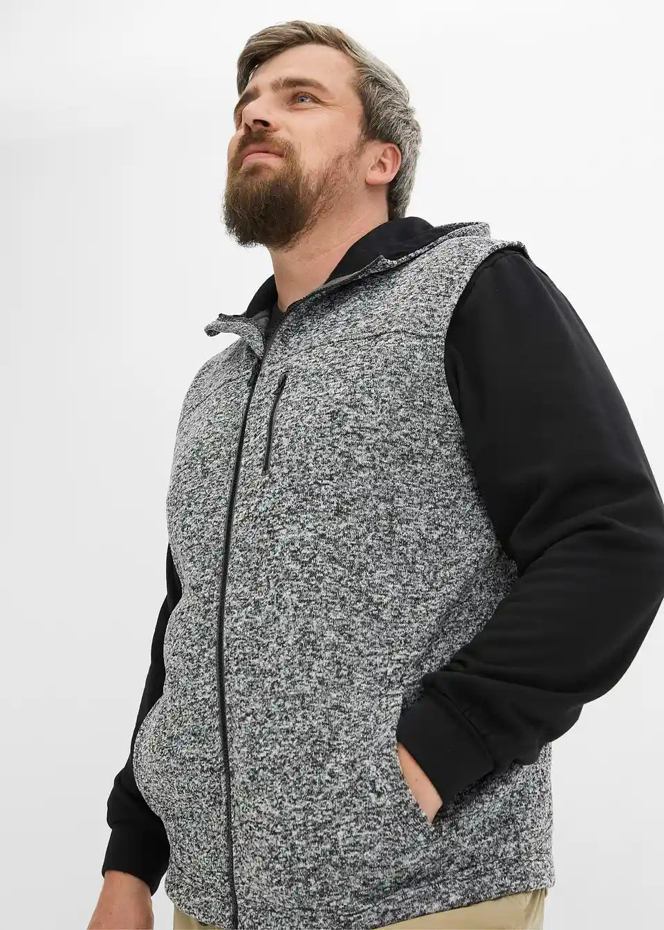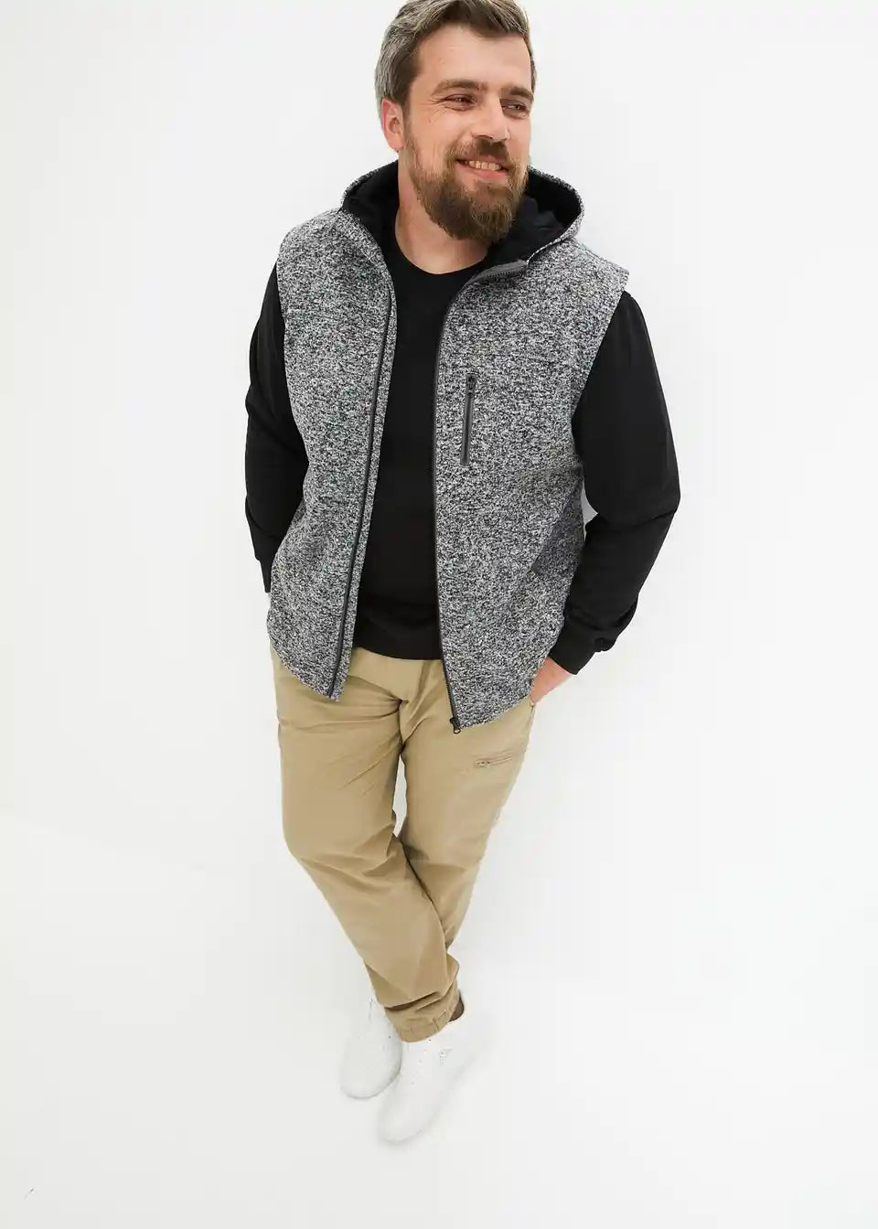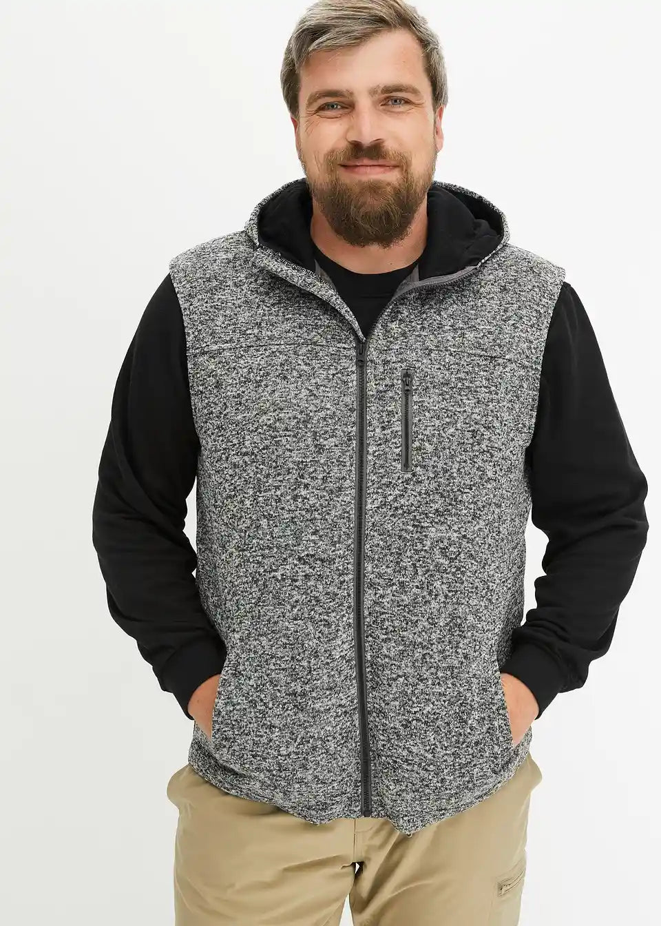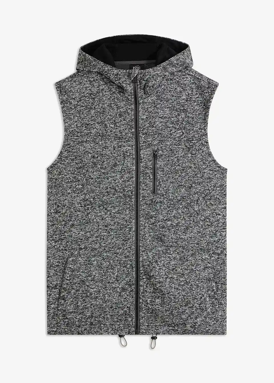 Športni pleteni flis telovnik s kapuco in zadrgo