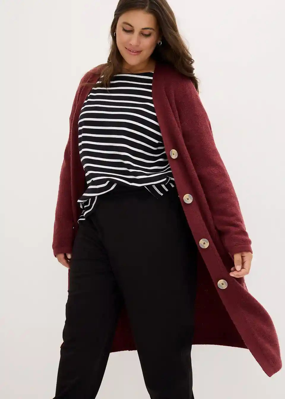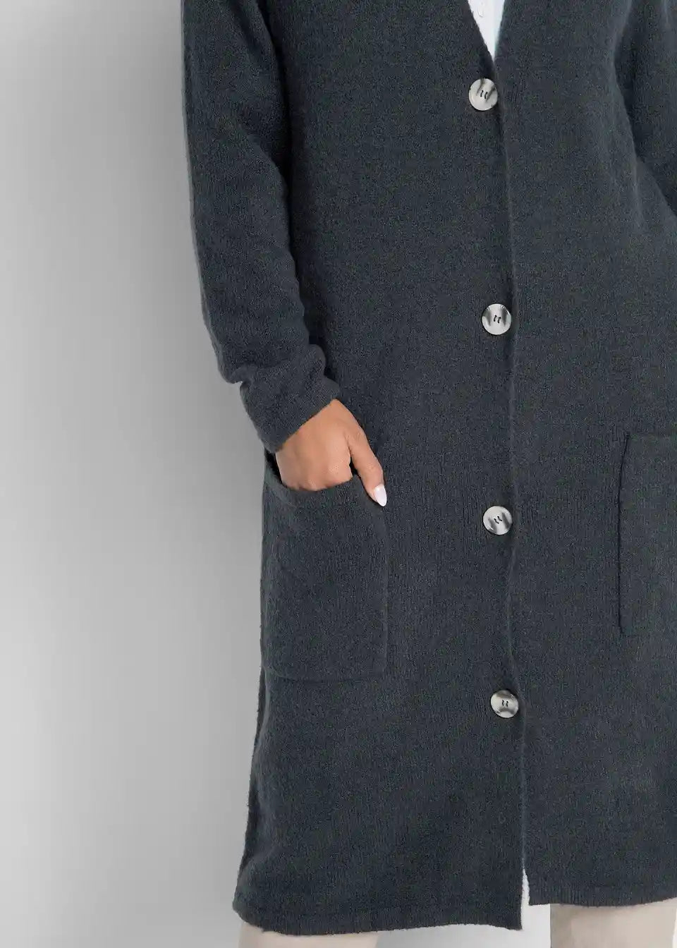 Udoben pleten jopič iz mehke preje v figuri prijazni dolžini