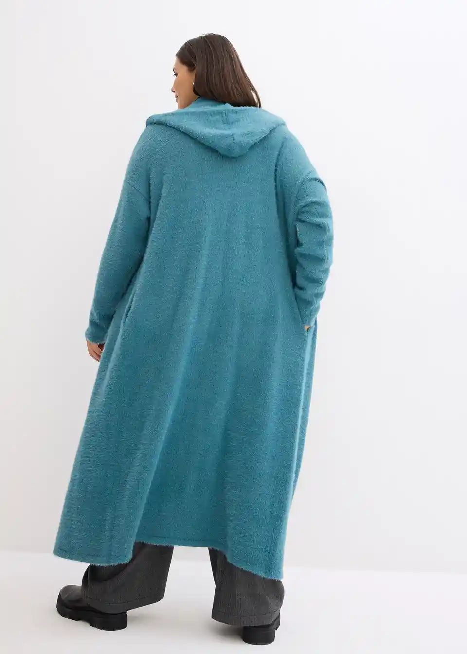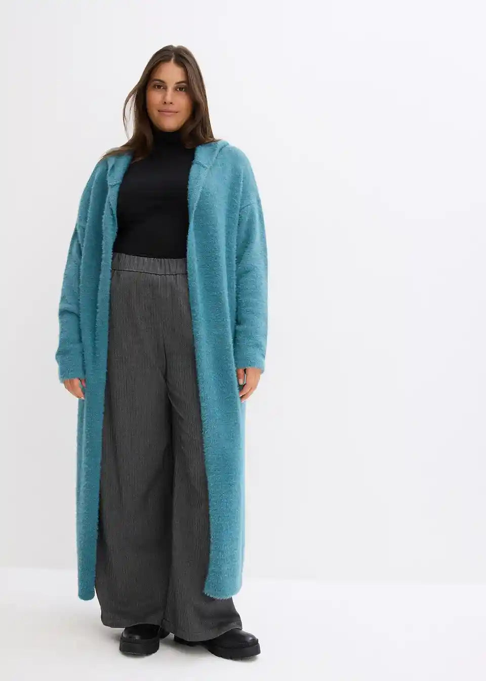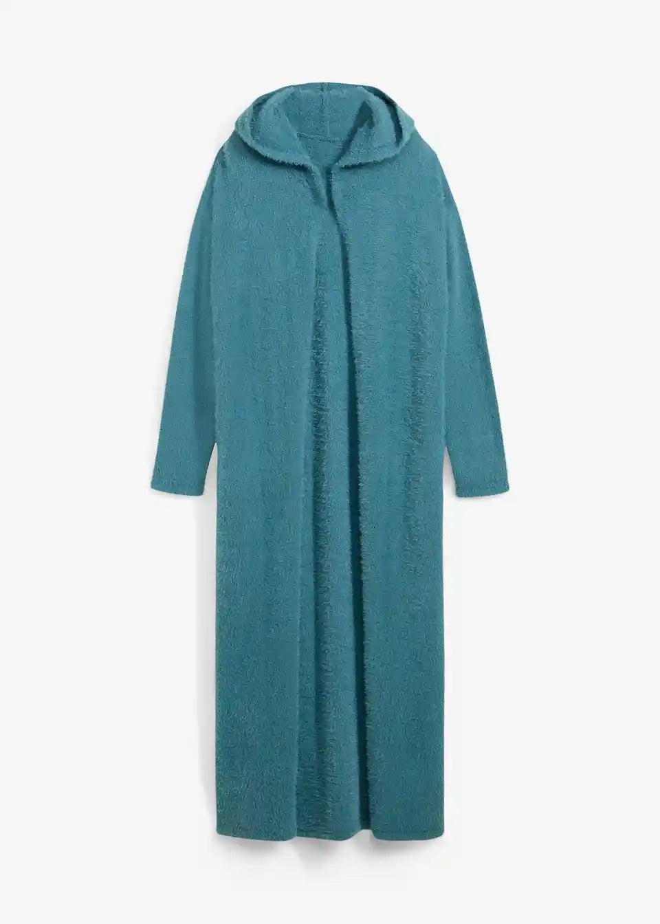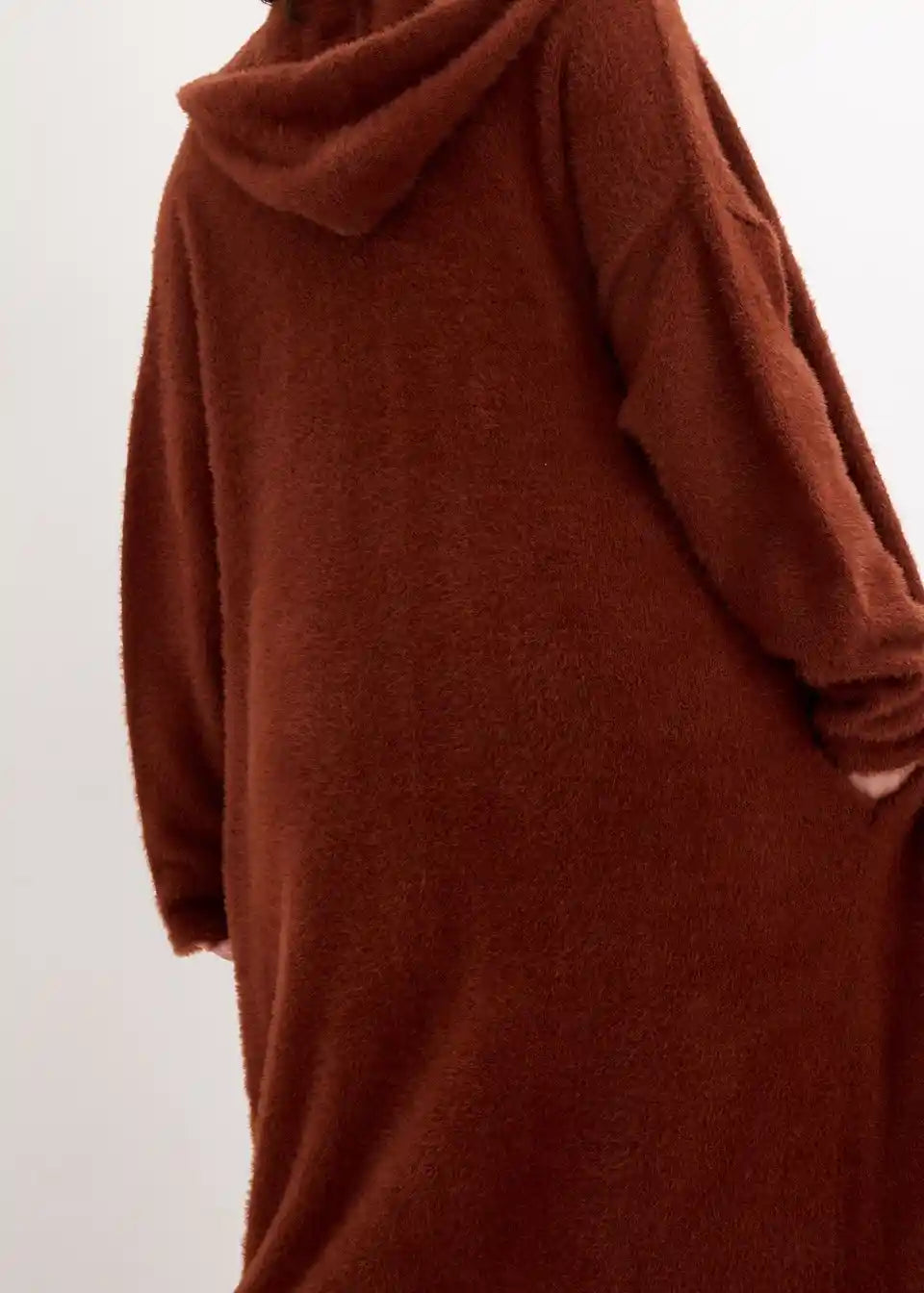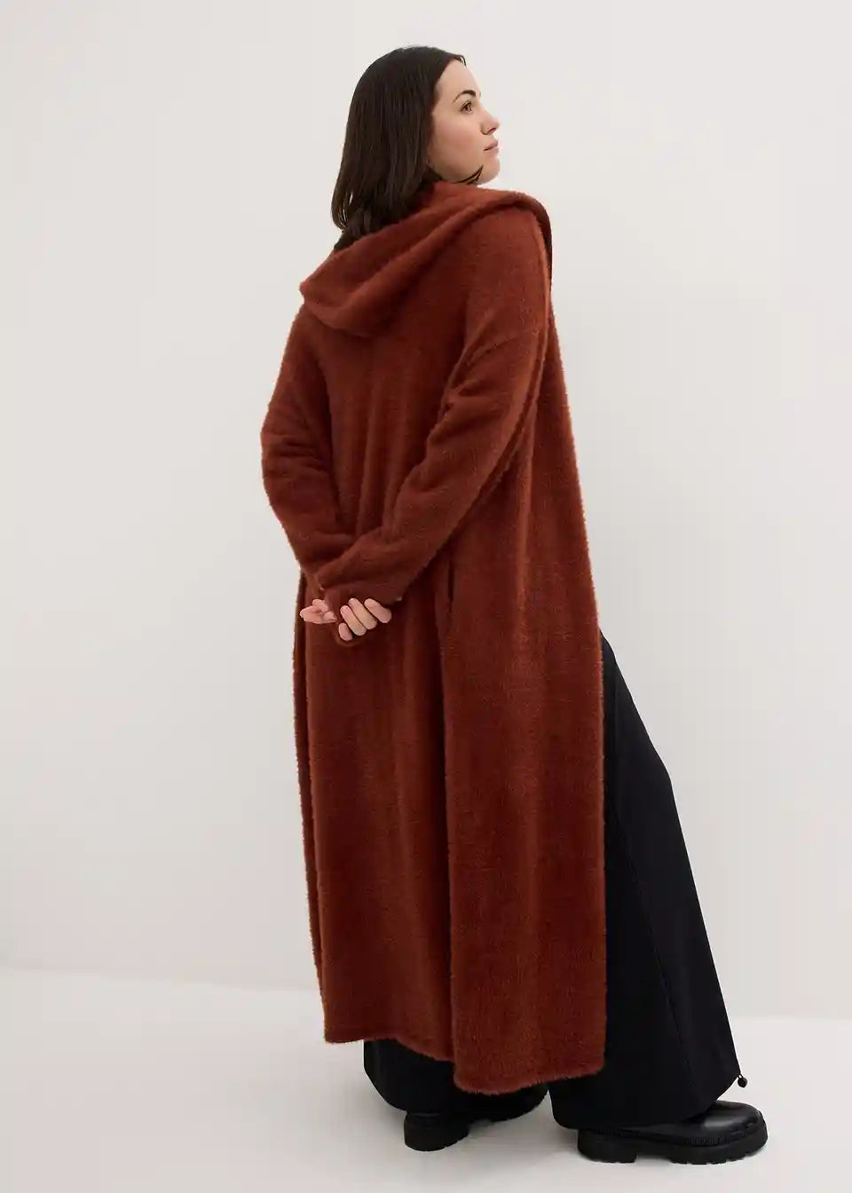 Dolgi pleten plašč s kapuco iz mešanice viskoze