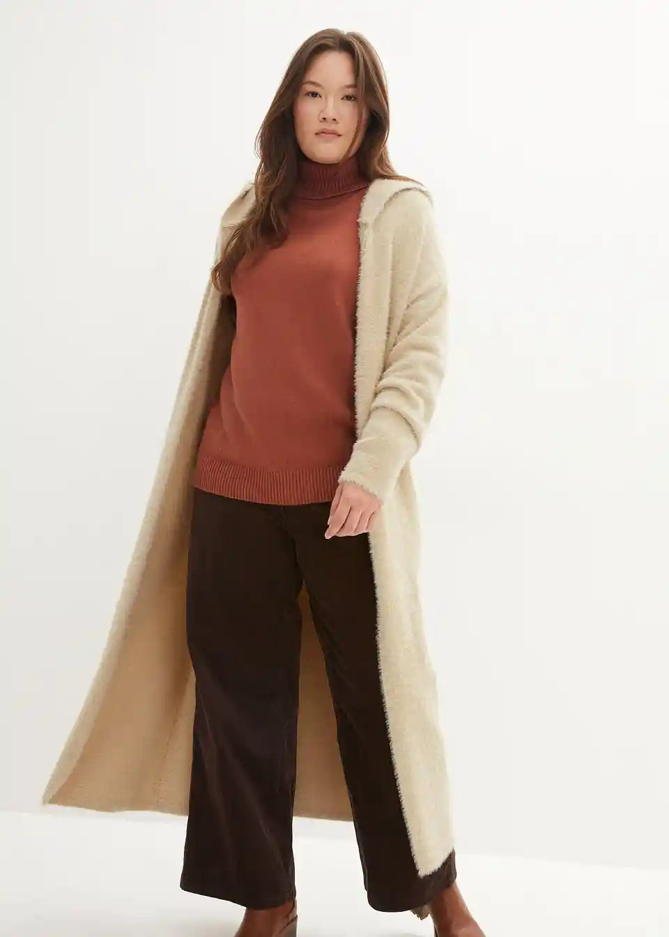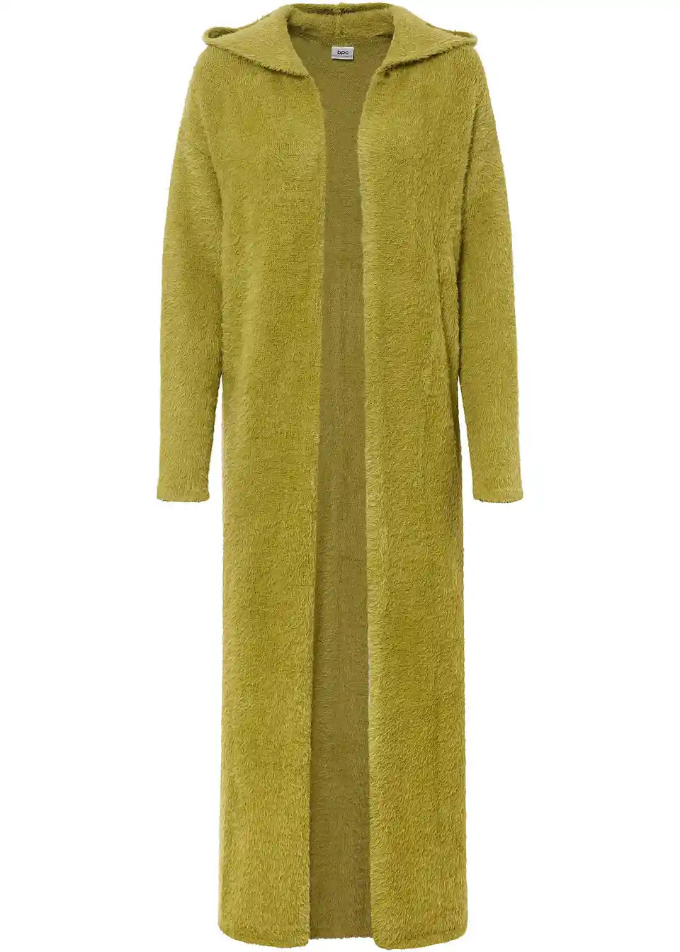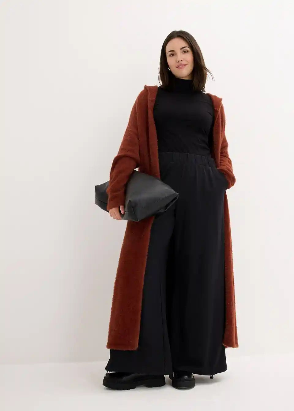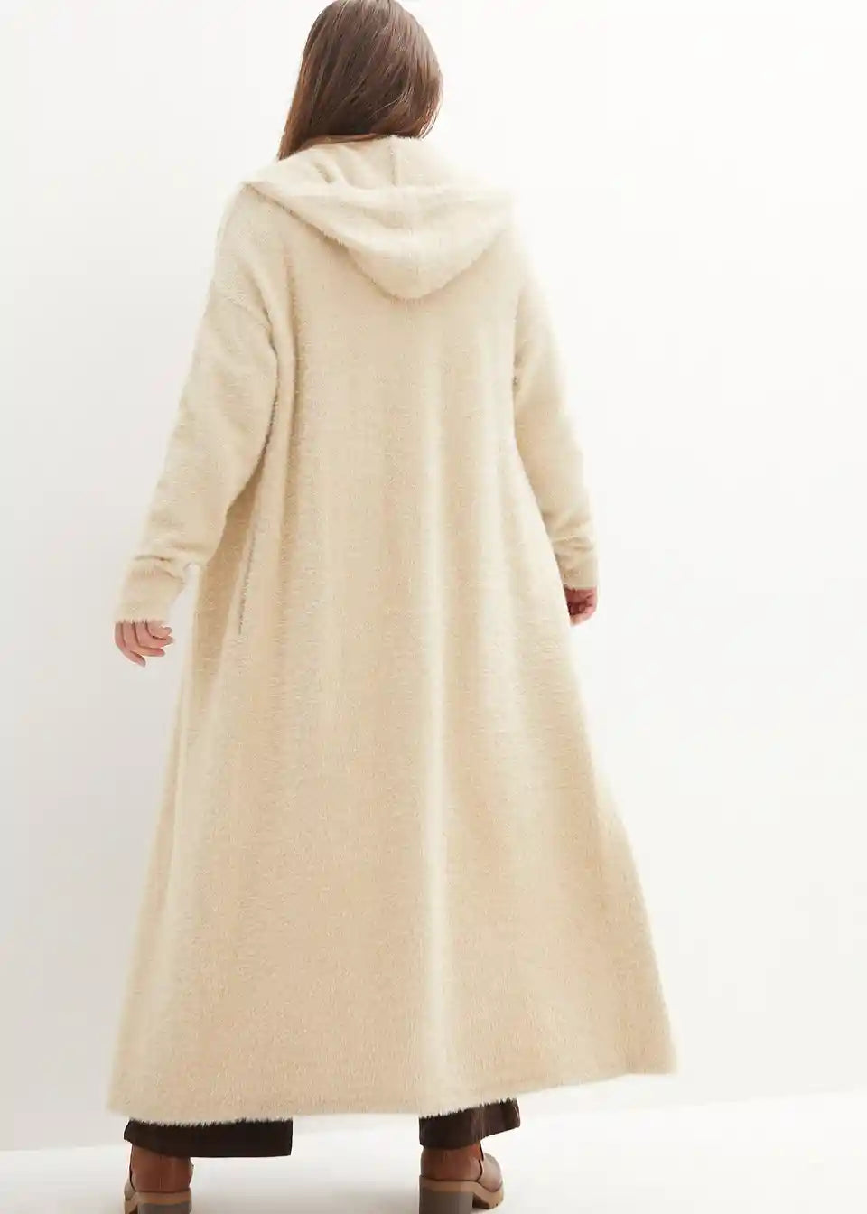Dolgi pleten plašč s kapuco iz mešanice viskoze