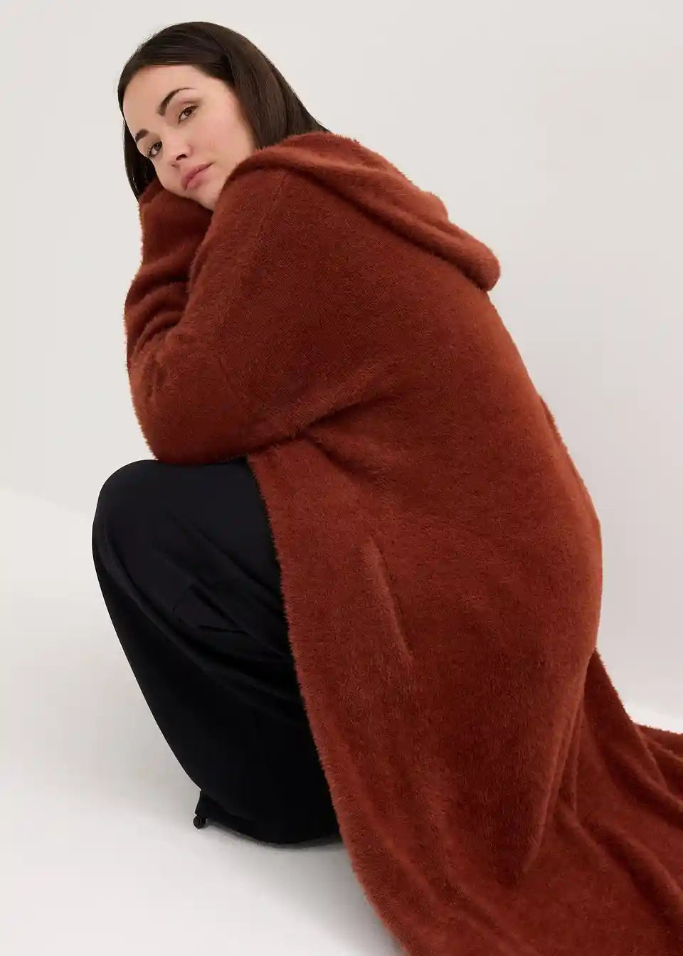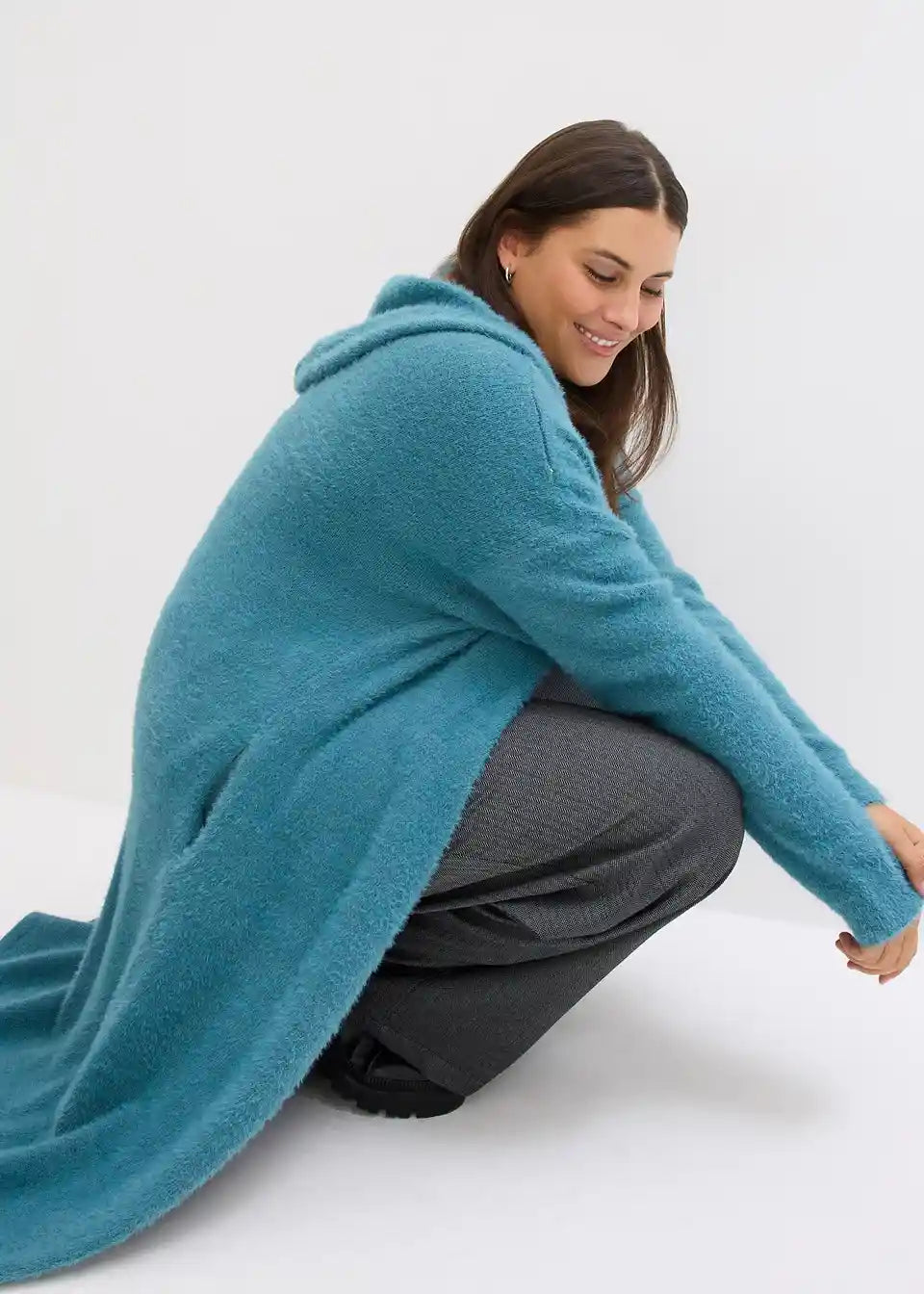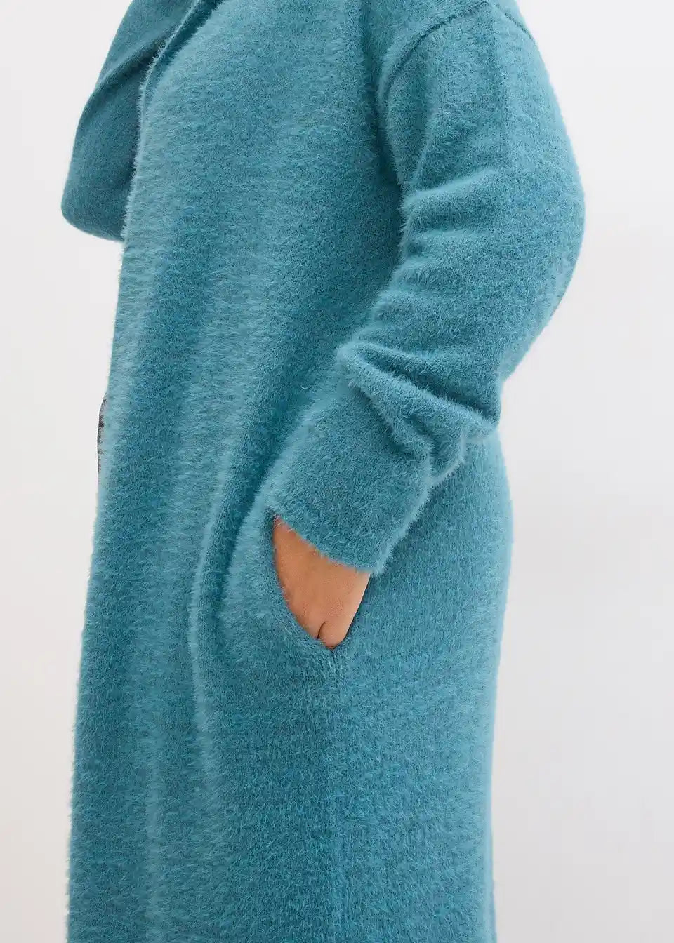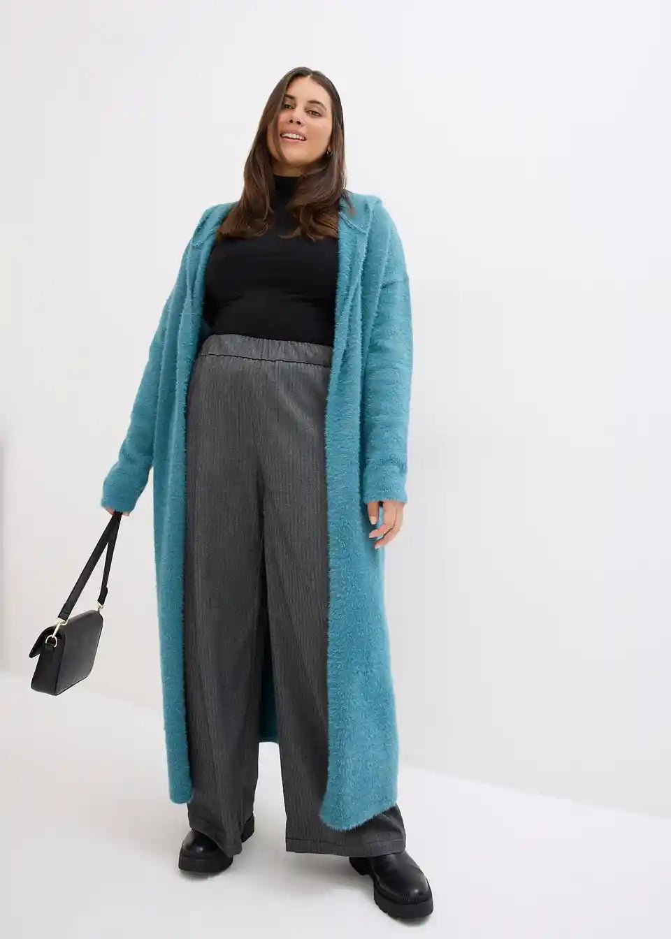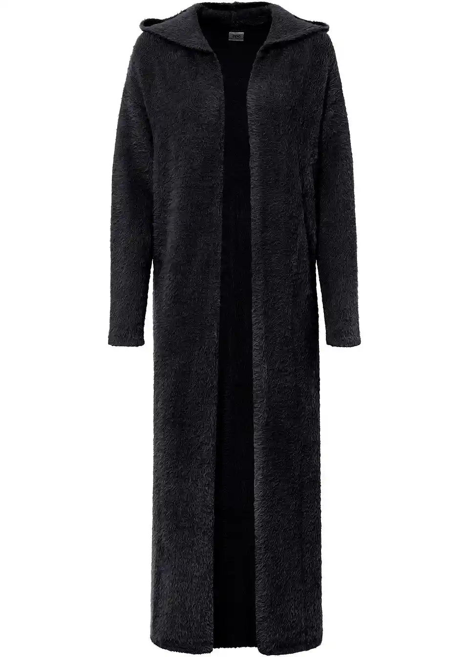 Dolgi pleten plašč s kapuco iz mešanice viskoze