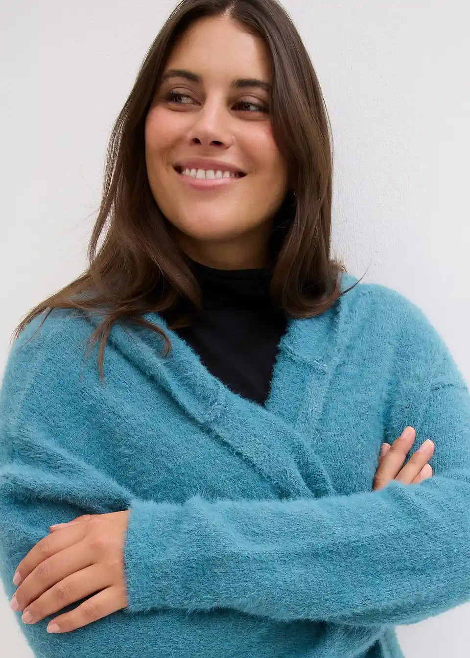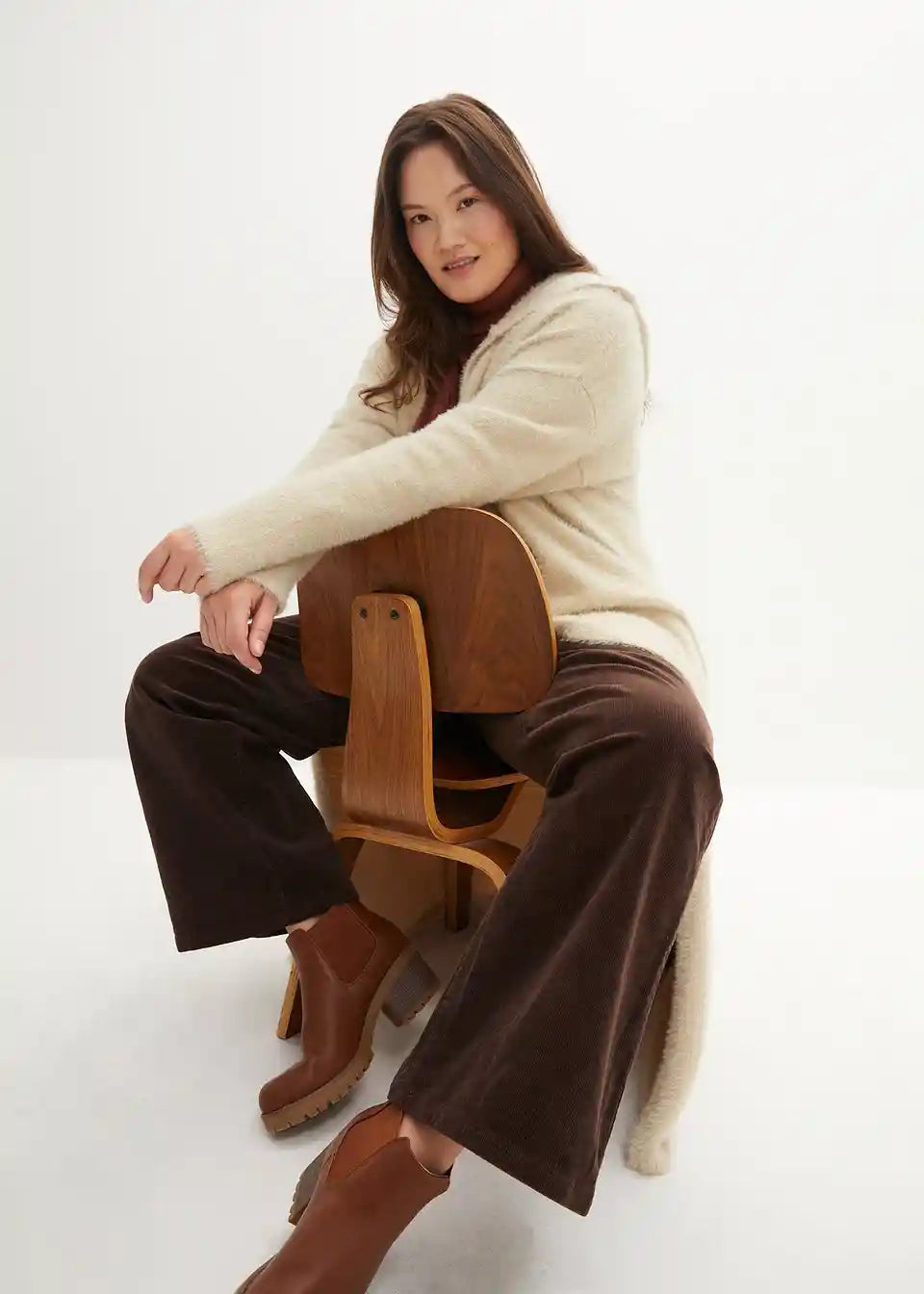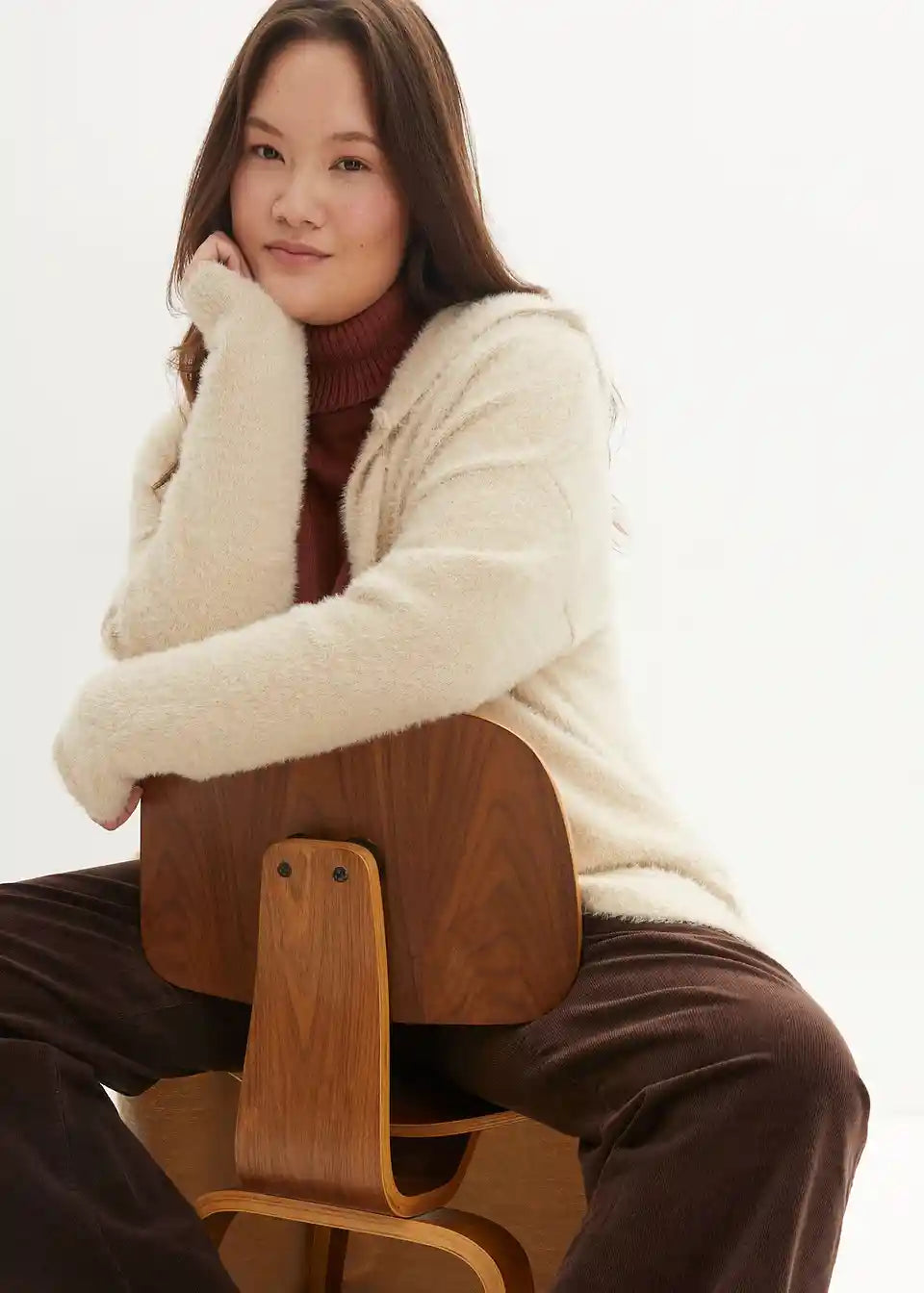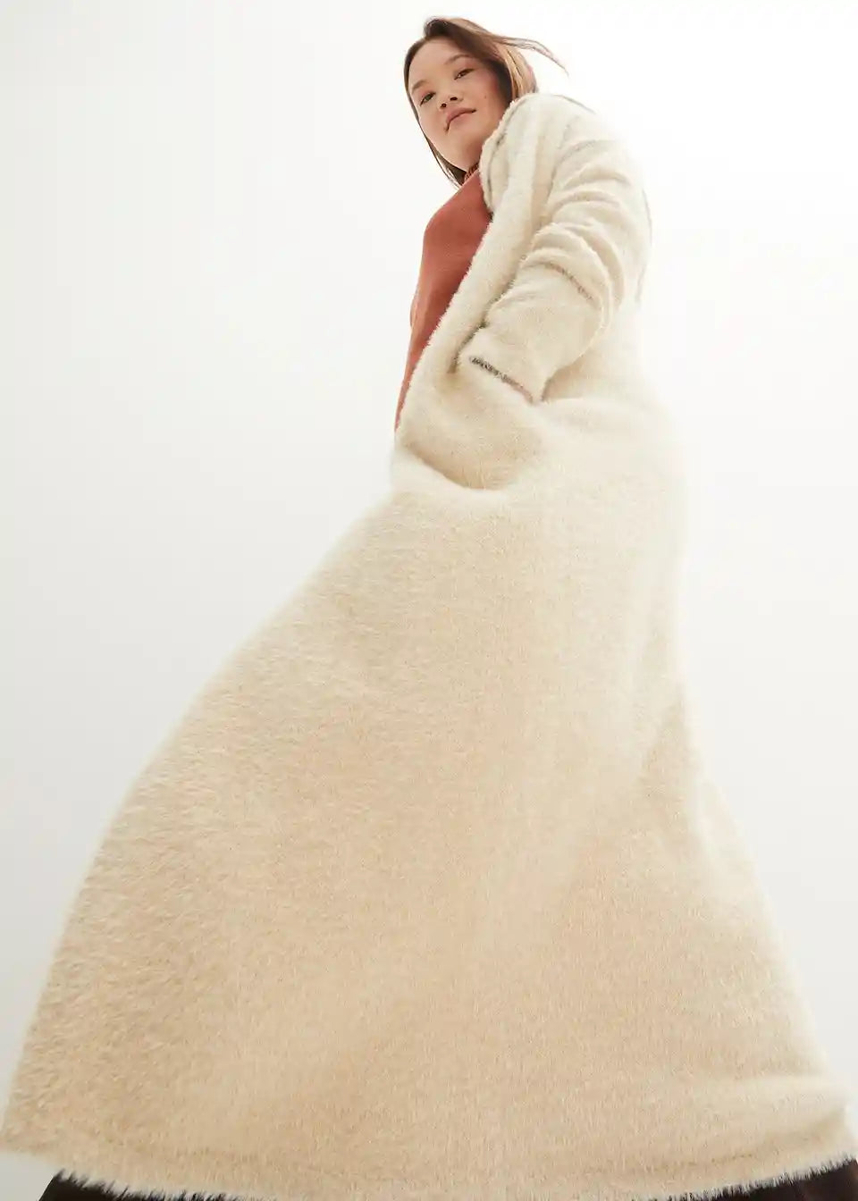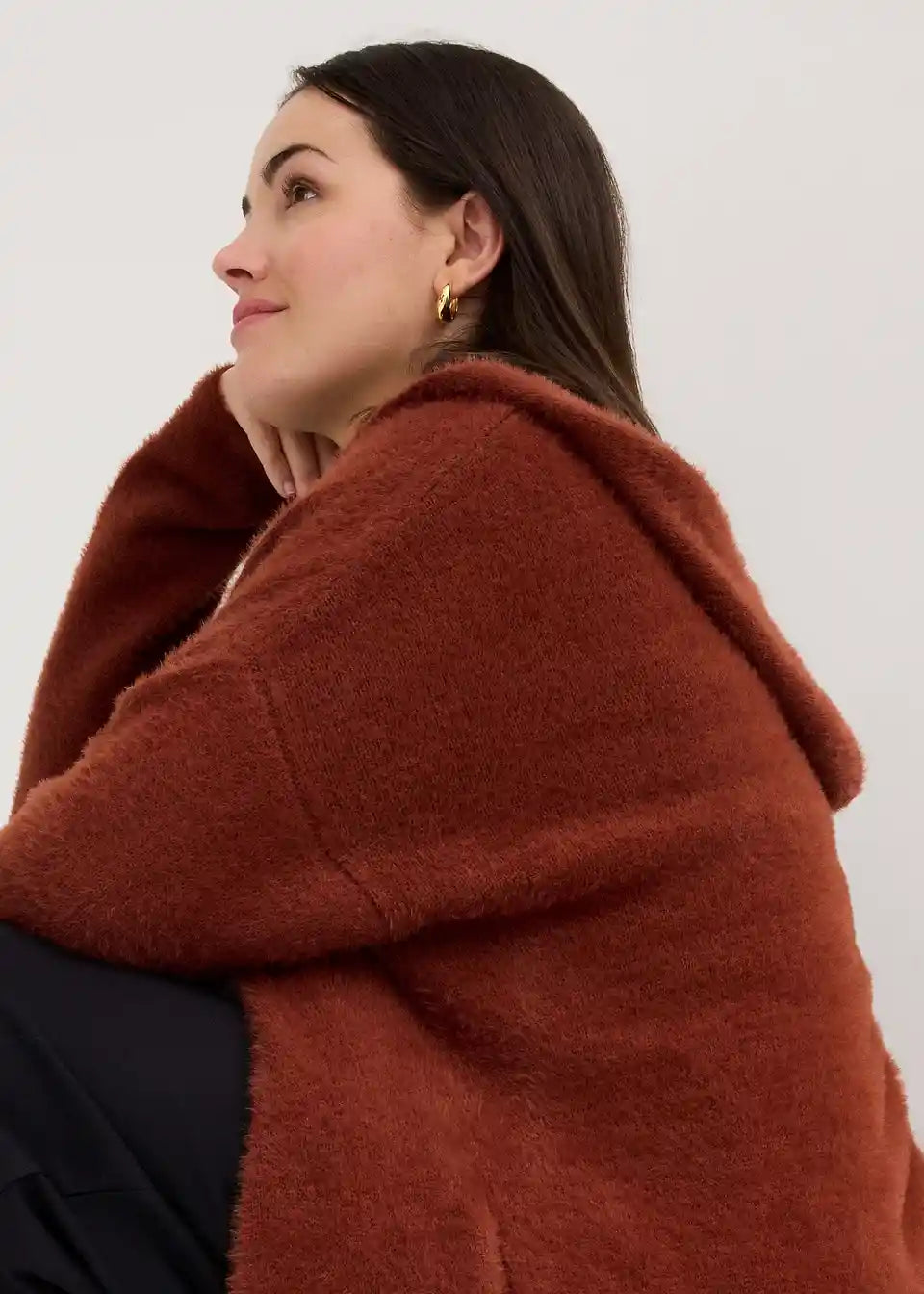 Dolgi pleten plašč s kapuco iz mešanice viskoze