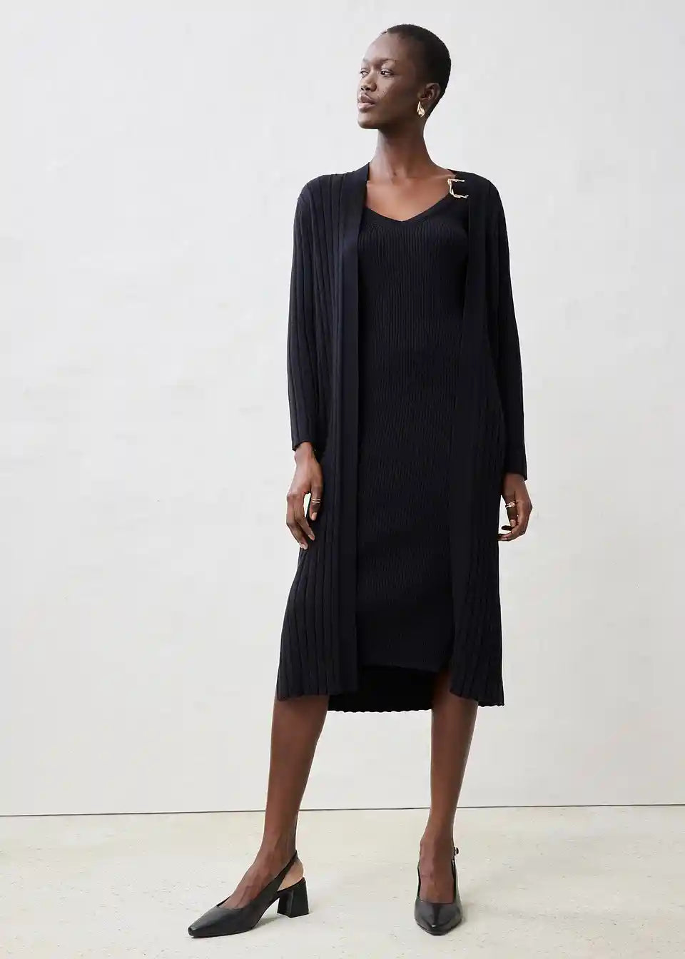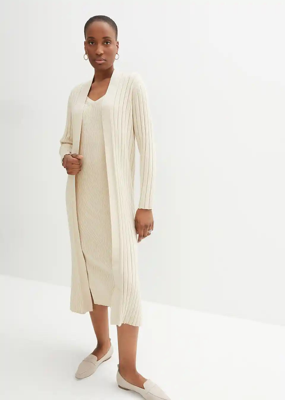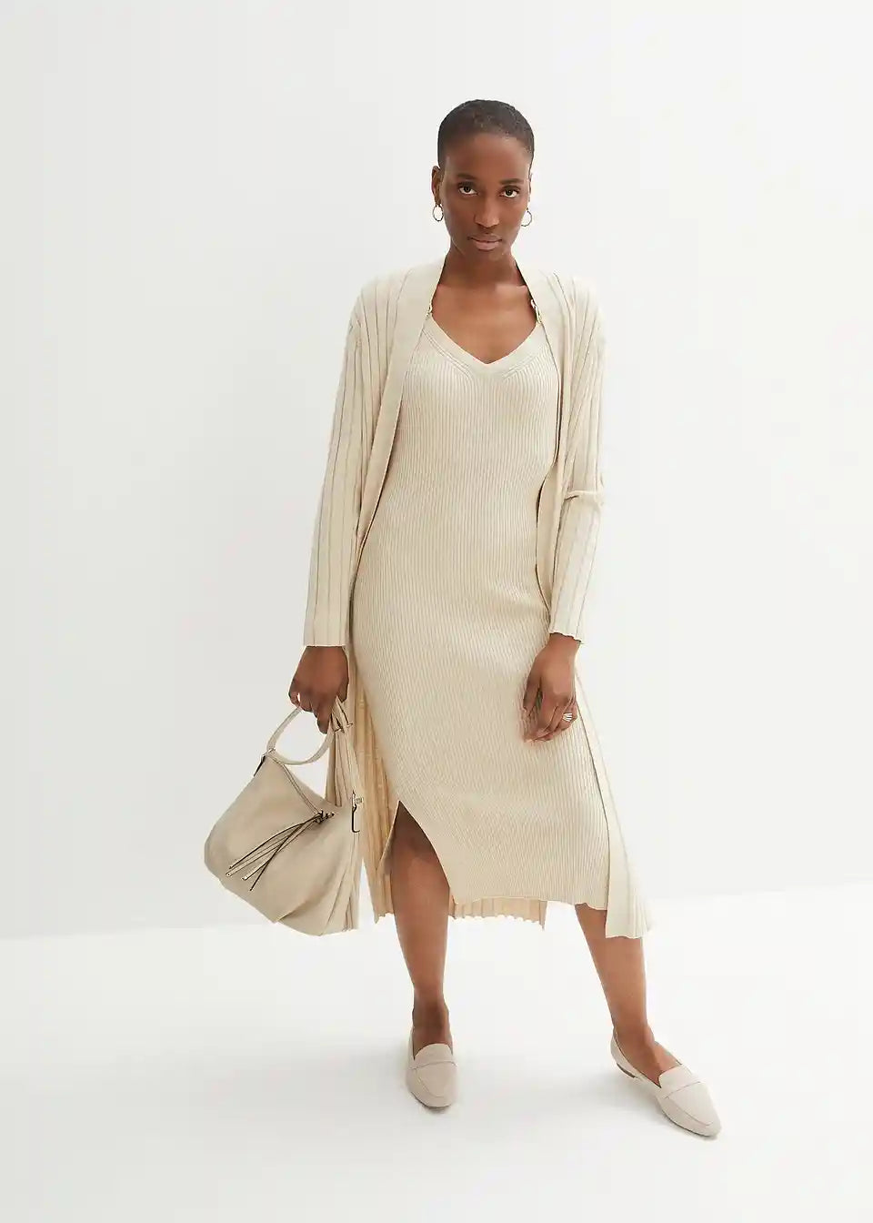dolg pleten plašč z deležem svile, iz širokega rebrastega pletenja