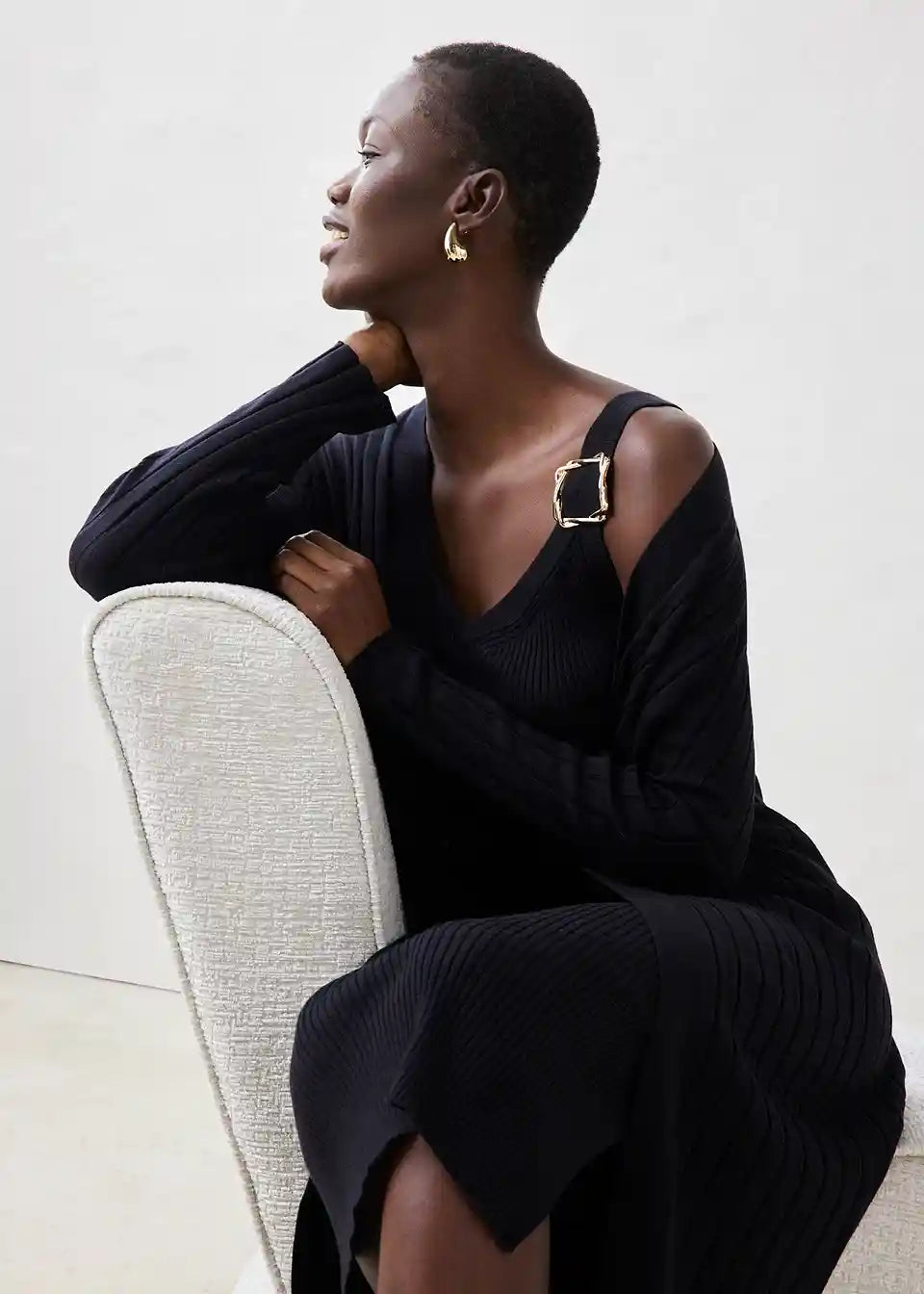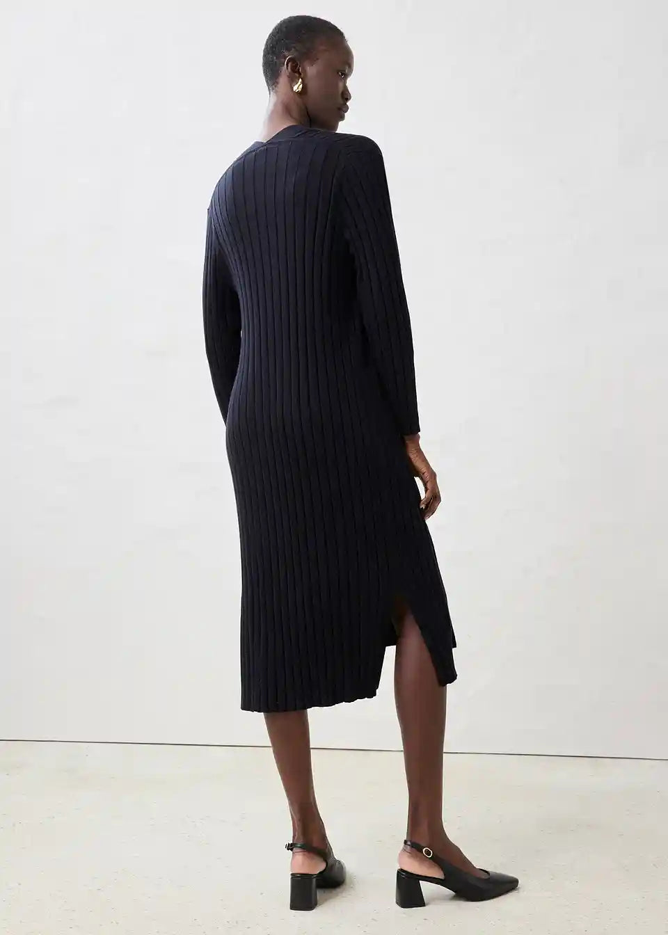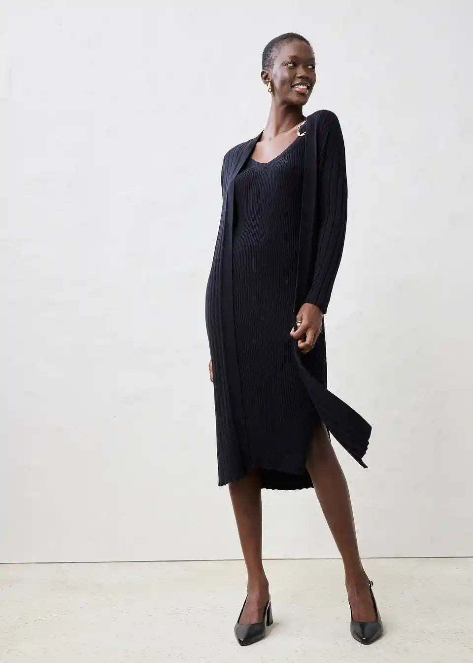 dolg pleten plašč z deležem svile, iz širokega rebrastega pletenja