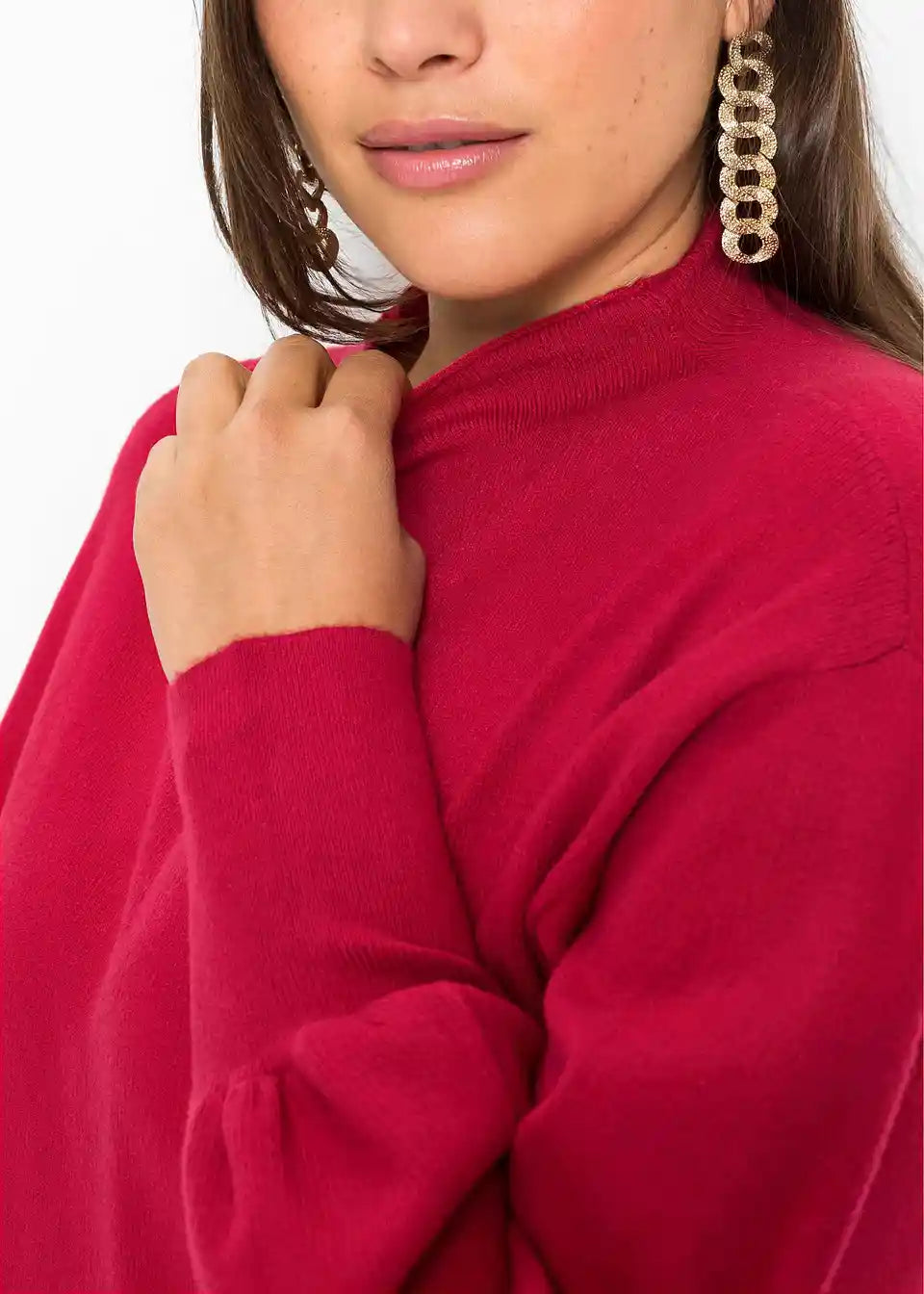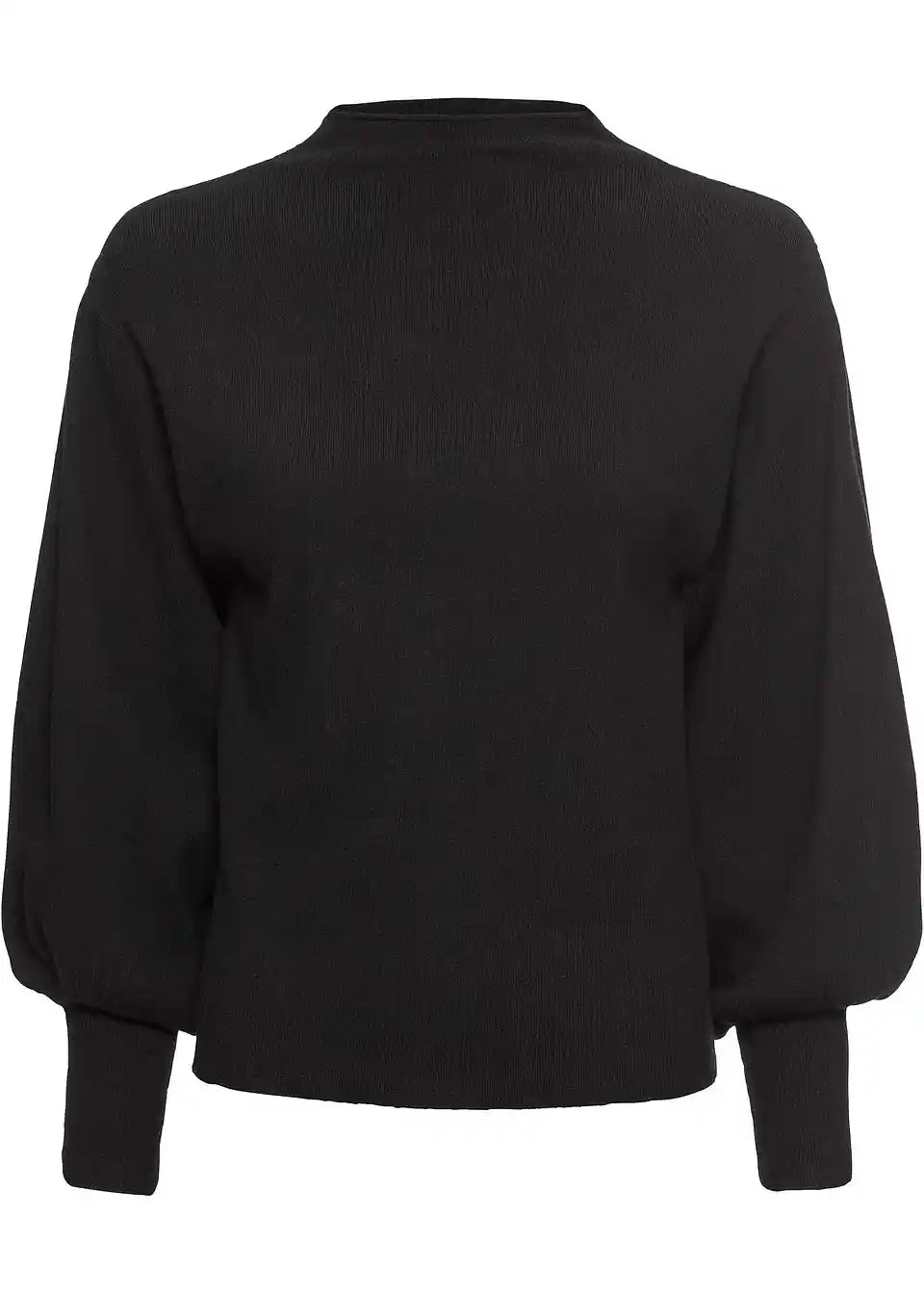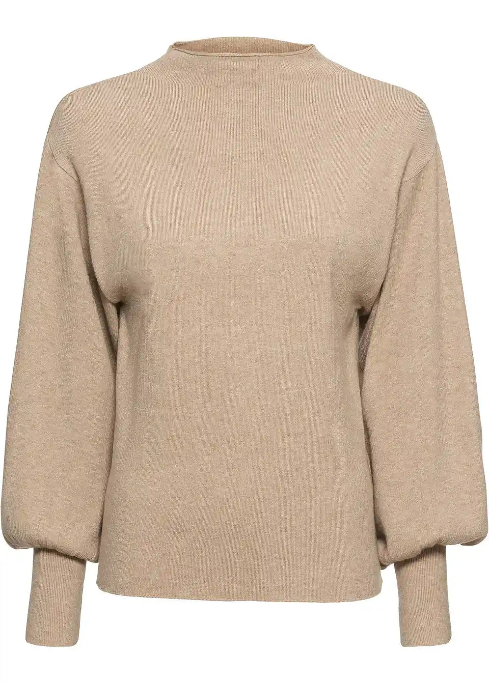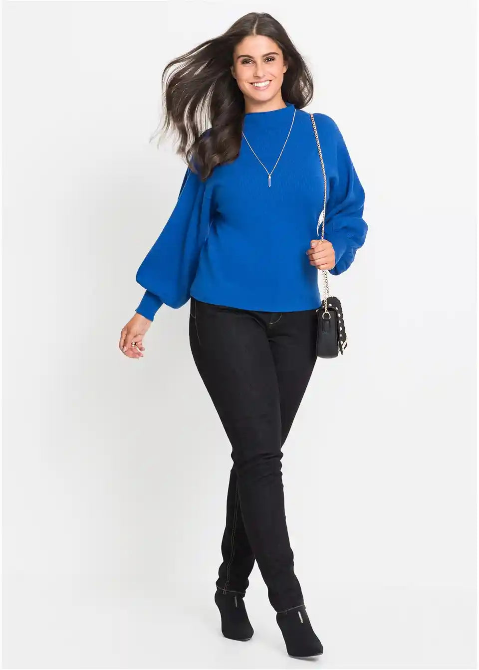 Eleganten pleten pulover z balon rokavi in stoječim ovratnikom