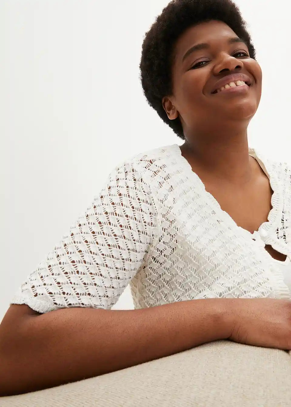 Modna Ajour pletena jopica z zapenjanjem na gumbe