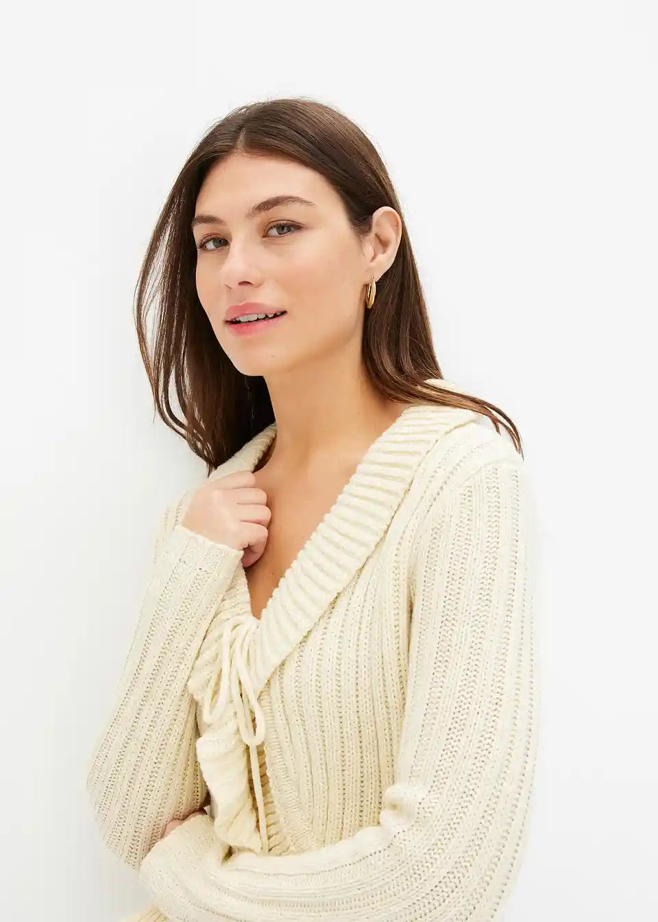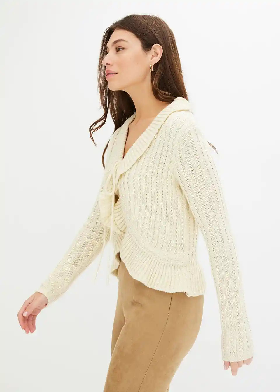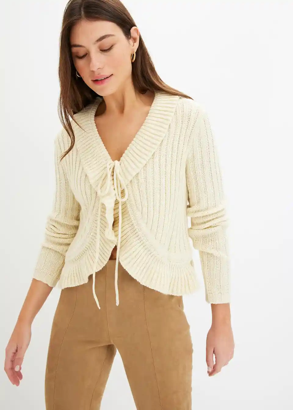 Prijetno mehka in ženstvena pletena jopica z zavezovanjem