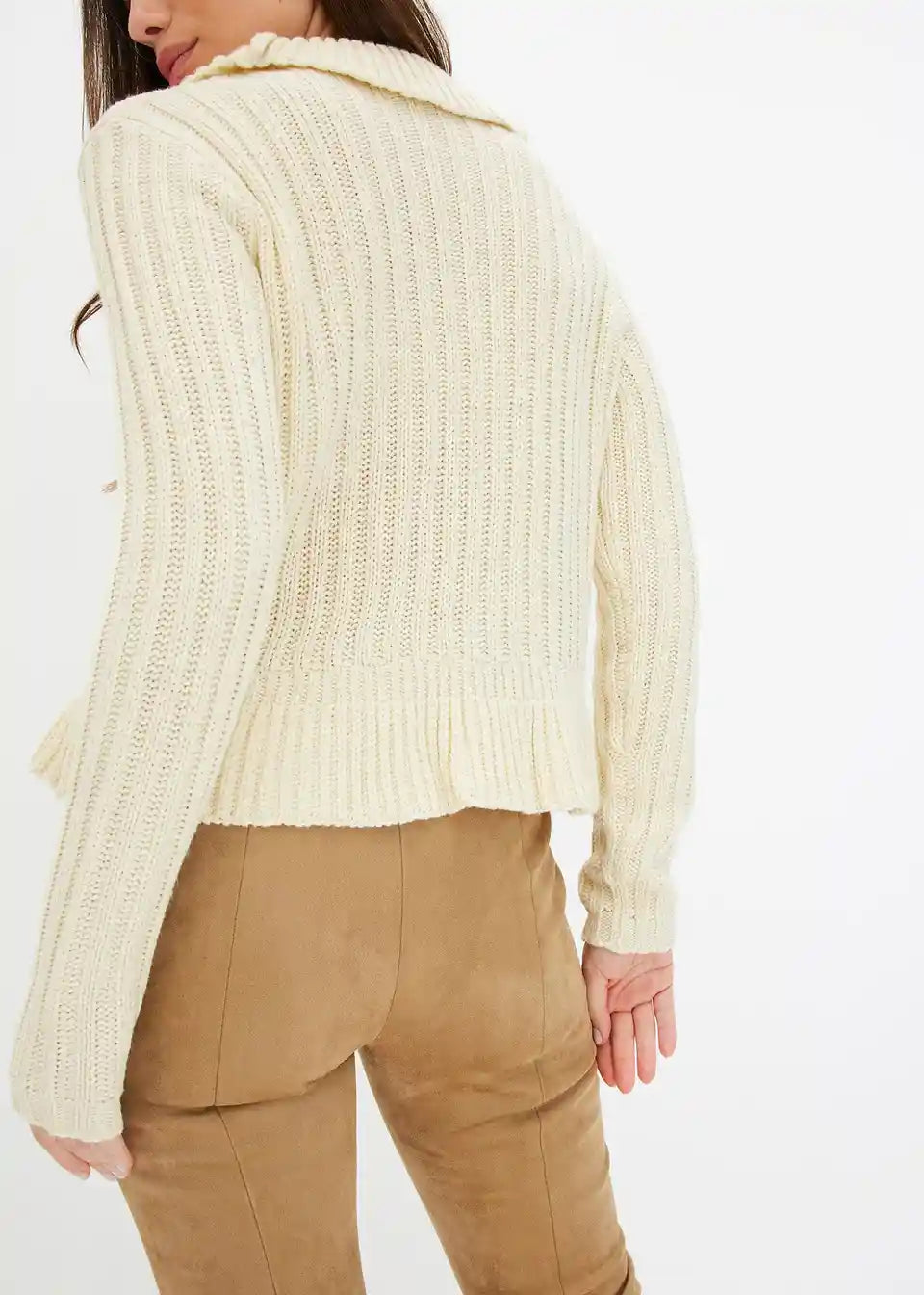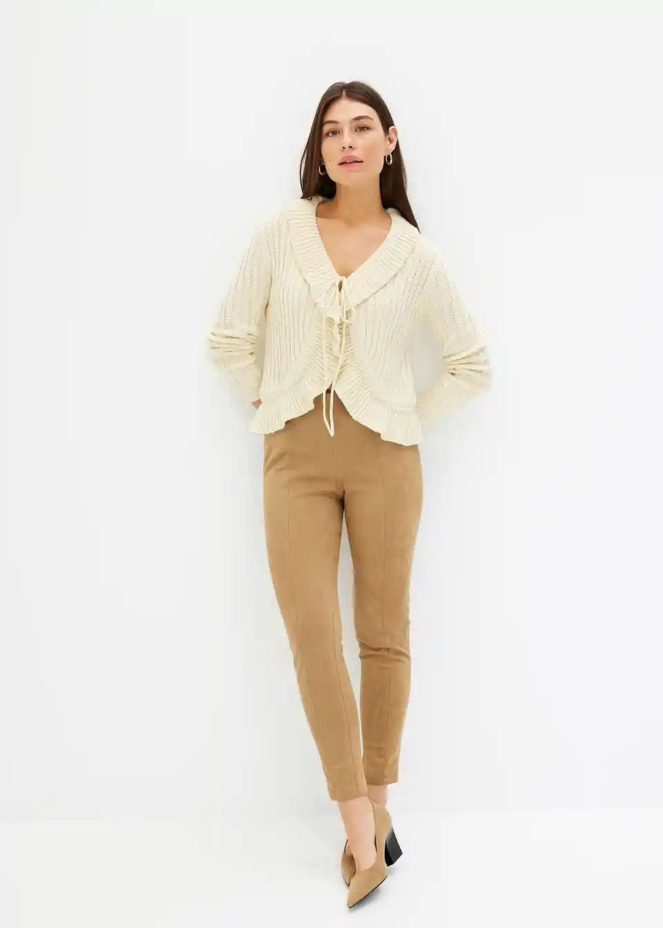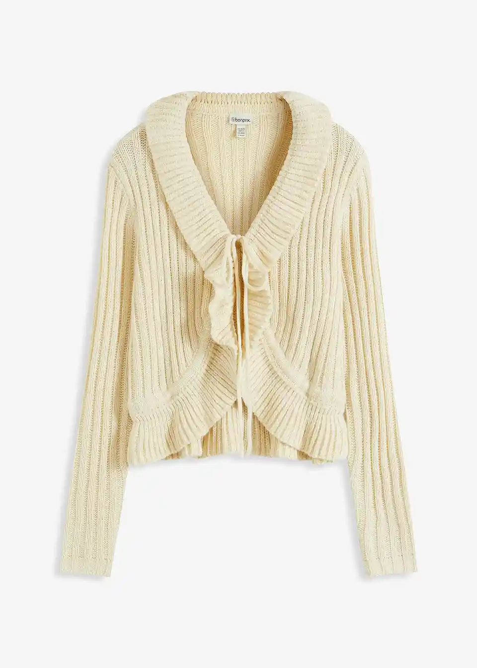 Prijetno mehka in ženstvena pletena jopica z zavezovanjem