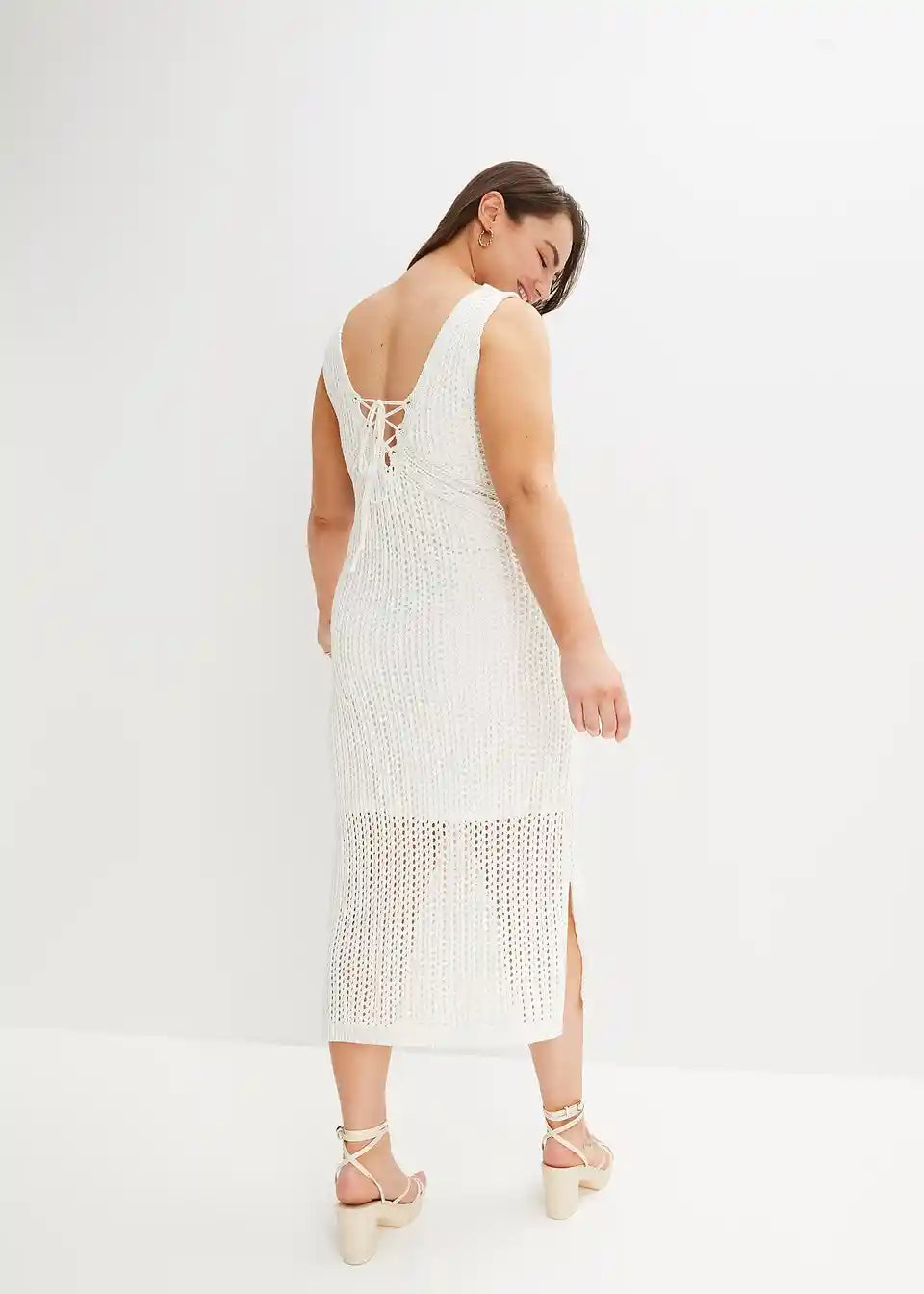 Moderna obleka s vezalkami in razporki