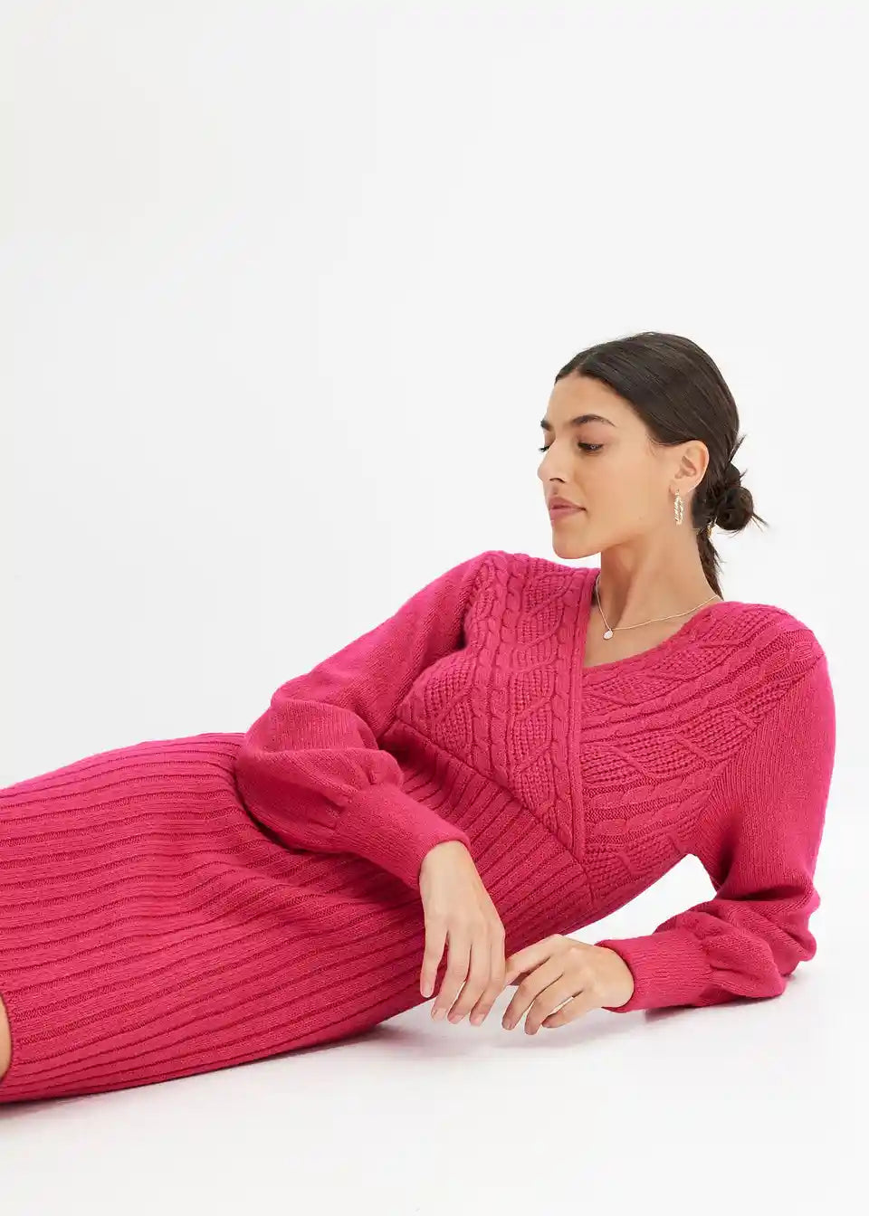 modna pletena obleka z vzorcem pletenic