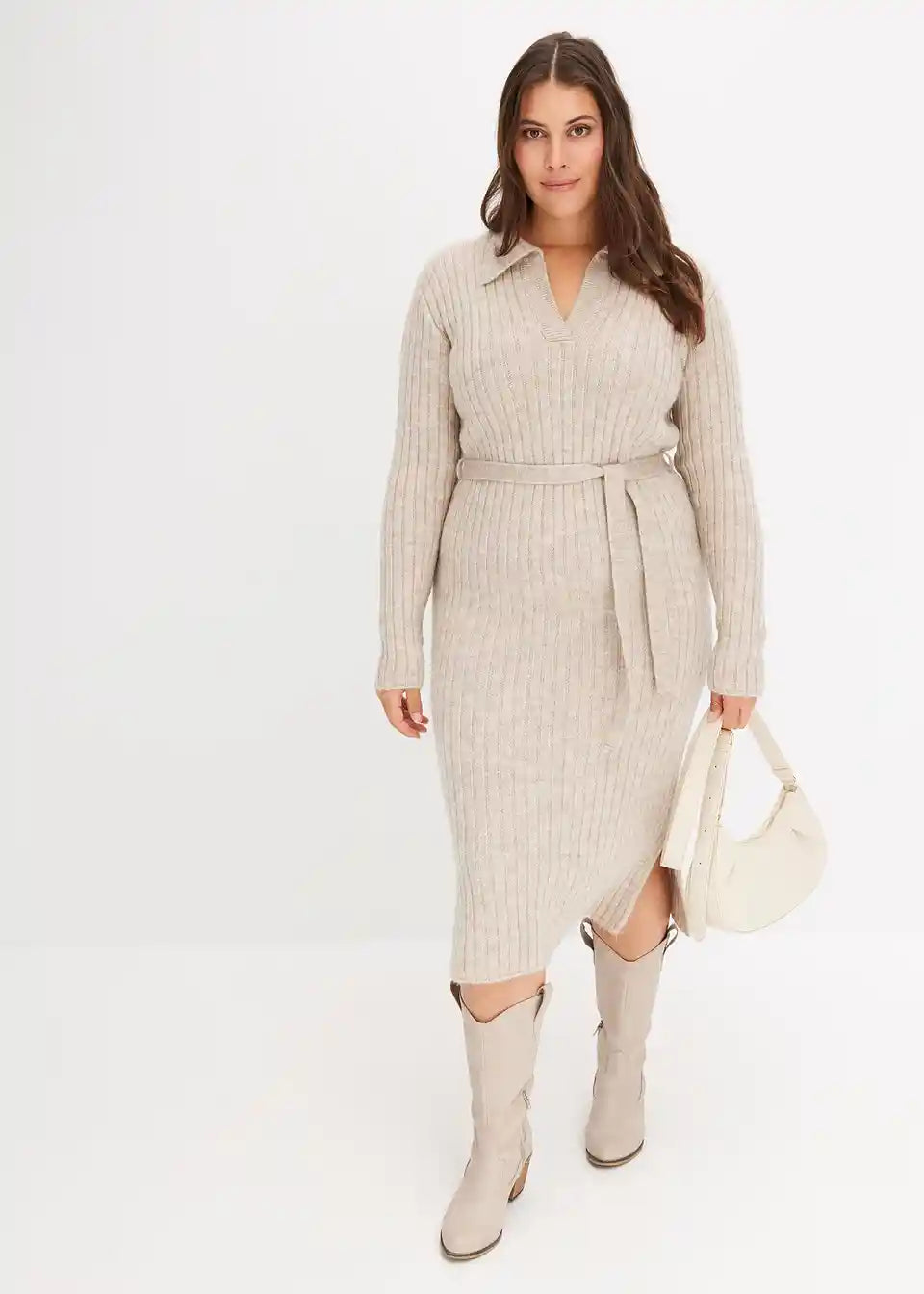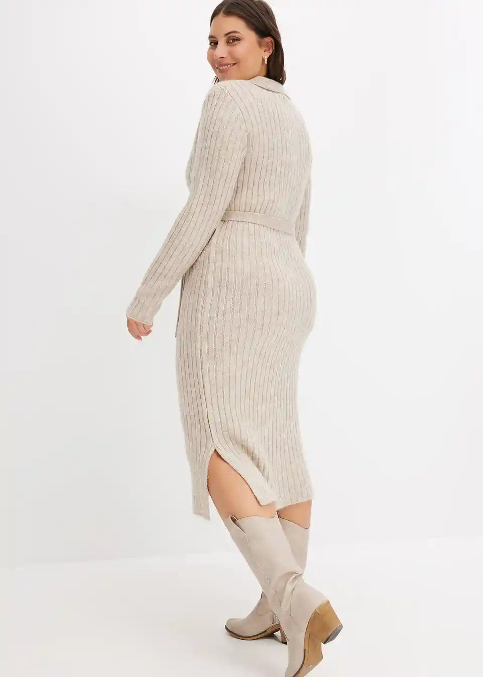 modna midi obleka z vezalko v pasu