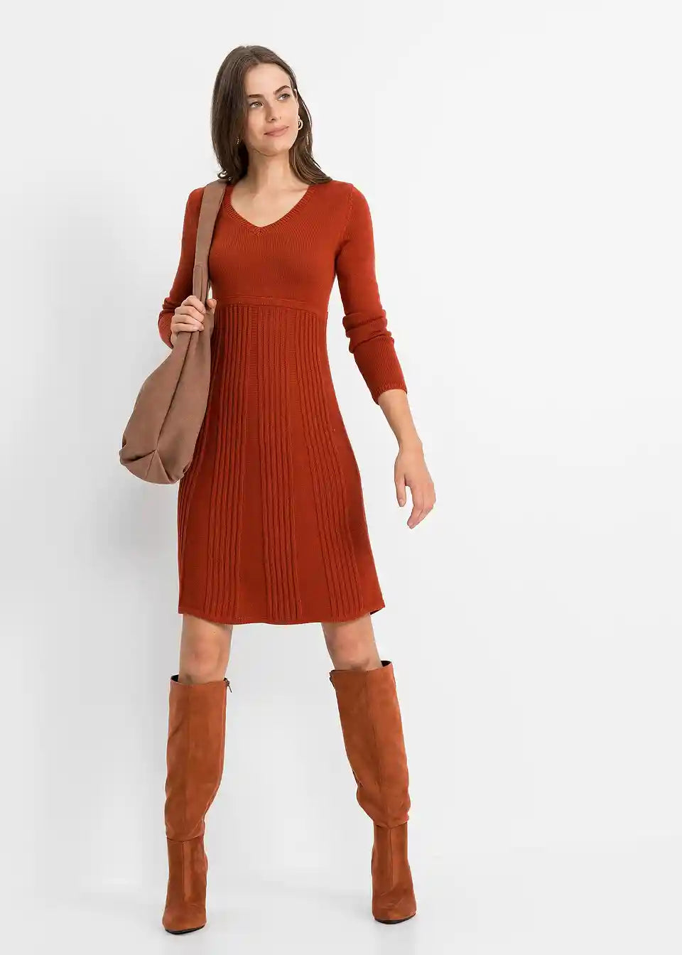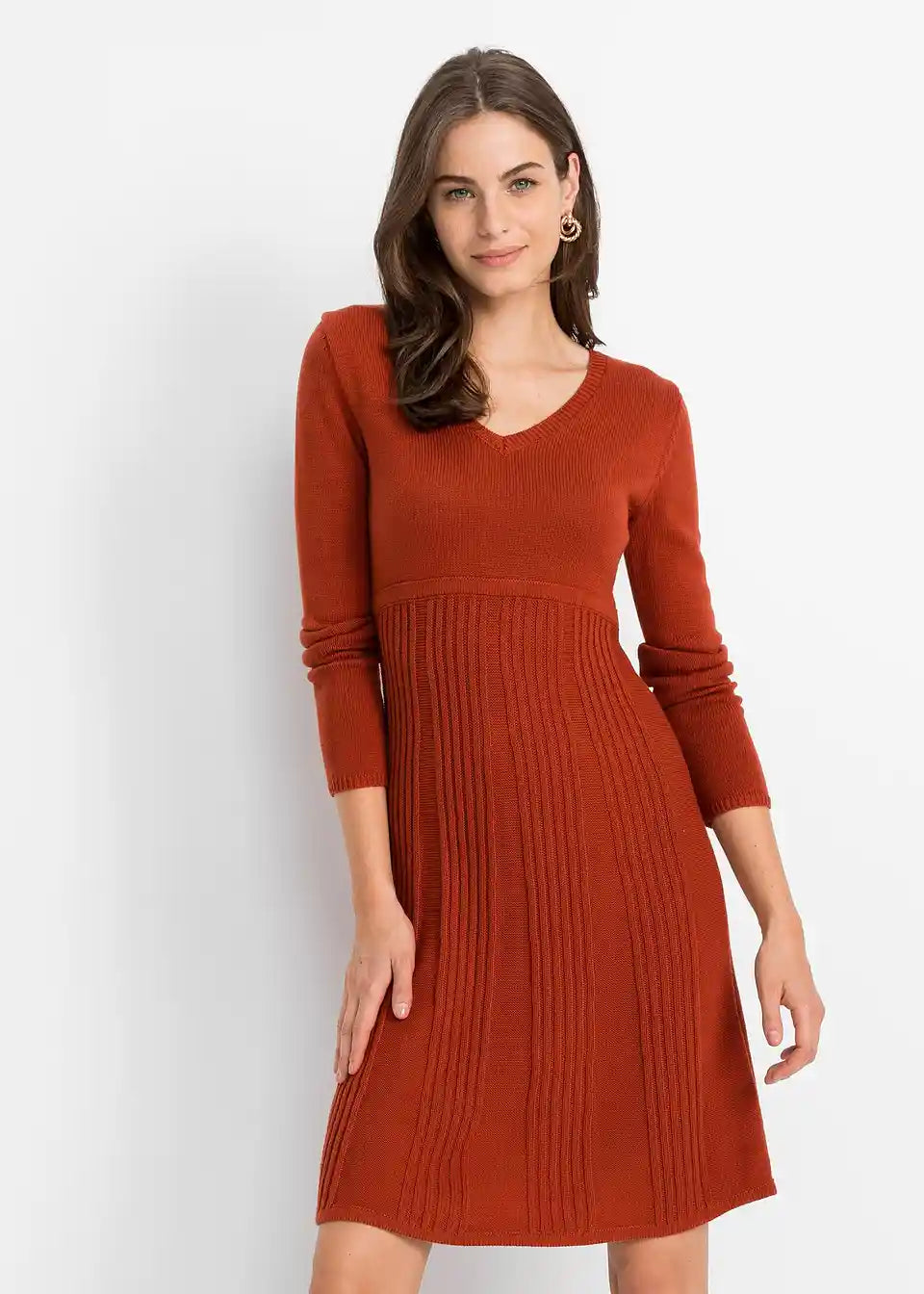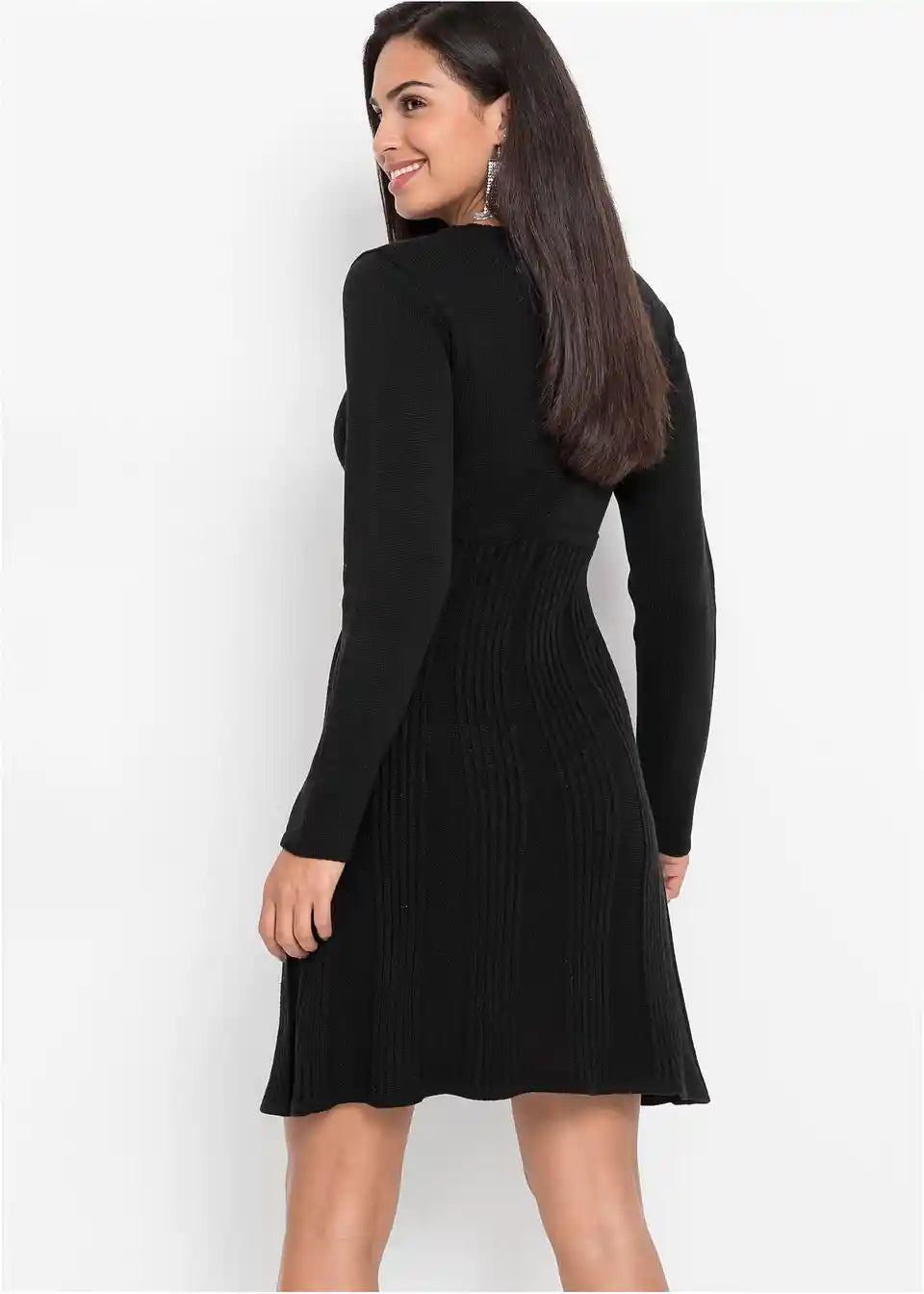 Oprijeta pletena obleka z atraktivno kombinacijo rebrastega vzorca