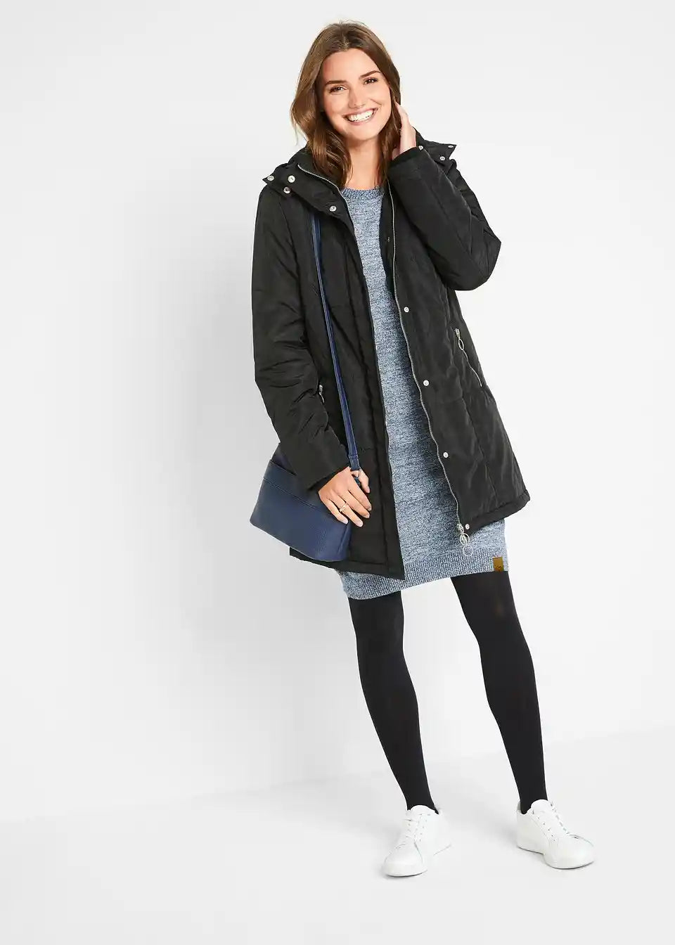 Dolžina pribl. 94 cm (vel. 36/38)-102 cm (vel. 52/54), pralno v pralnem stroju.