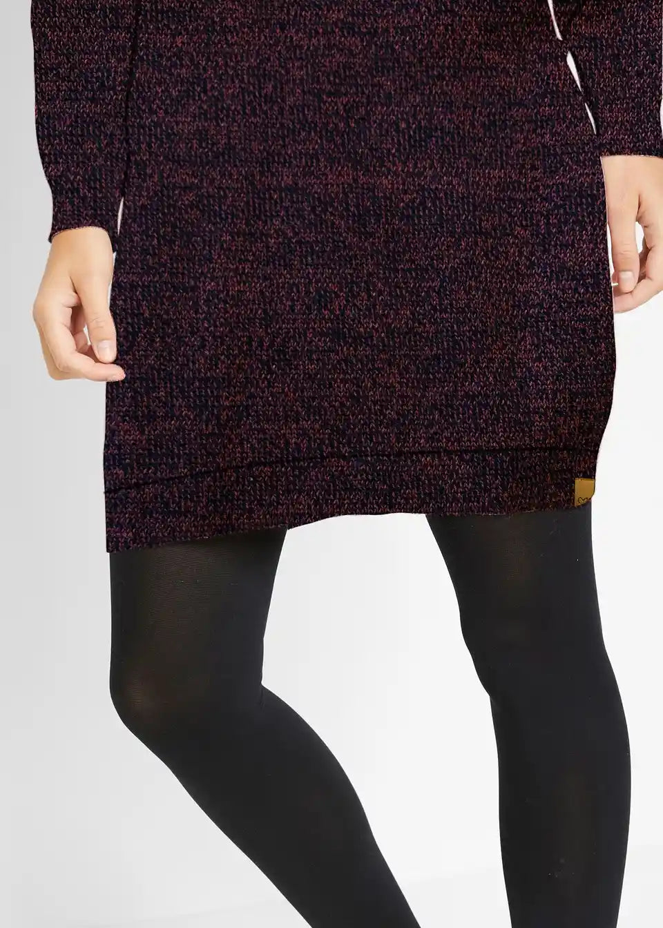 Pletena obleka z detajli iz umetnega usnja