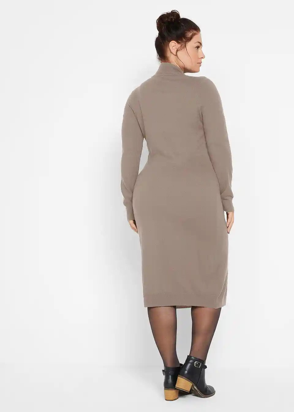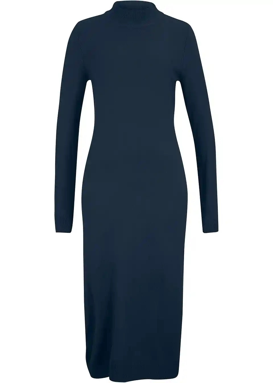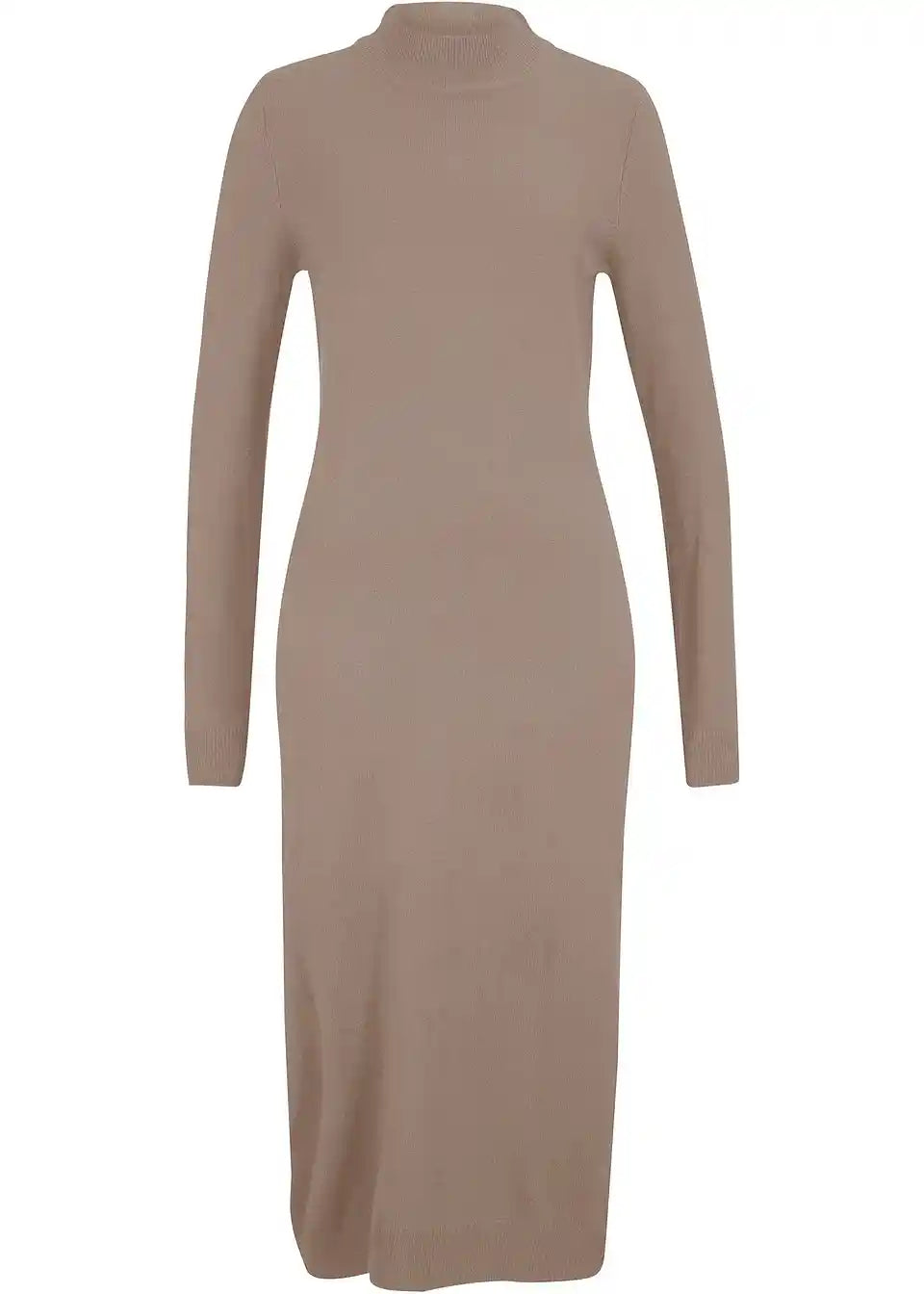 Slogovna pletena obleka s stoječim ovratnikom, dolg rokav