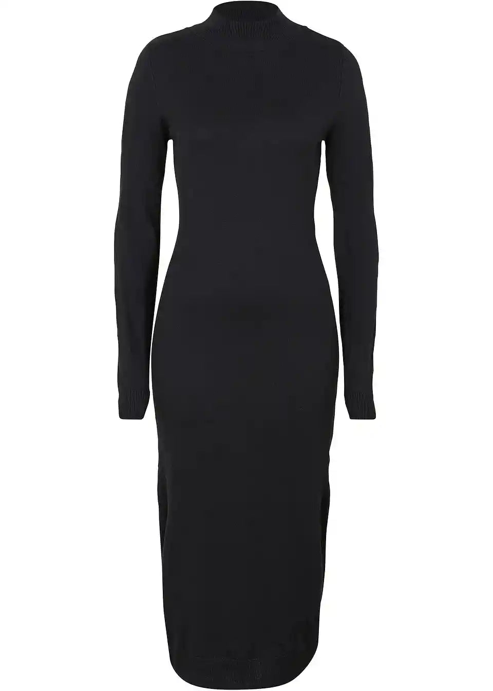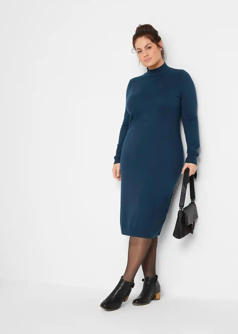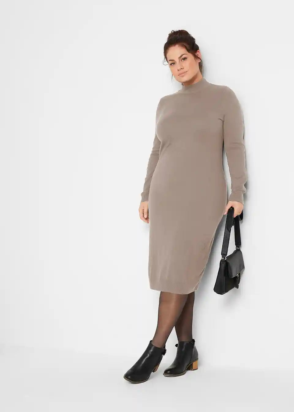 Slogovna pletena obleka s stoječim ovratnikom, dolg rokav