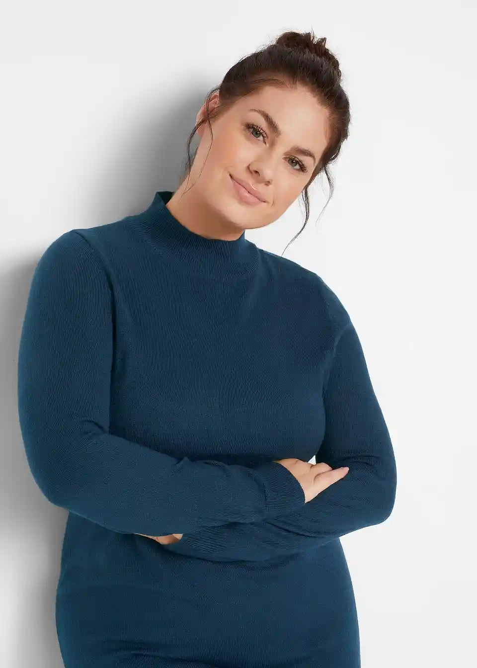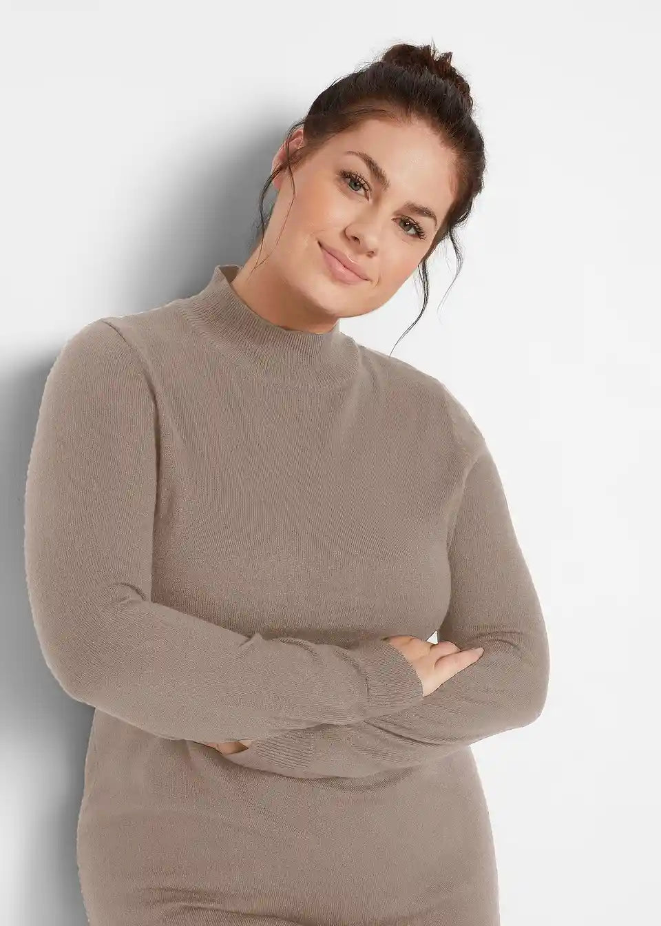 Pletena obleka s pokončnim ovratnikom