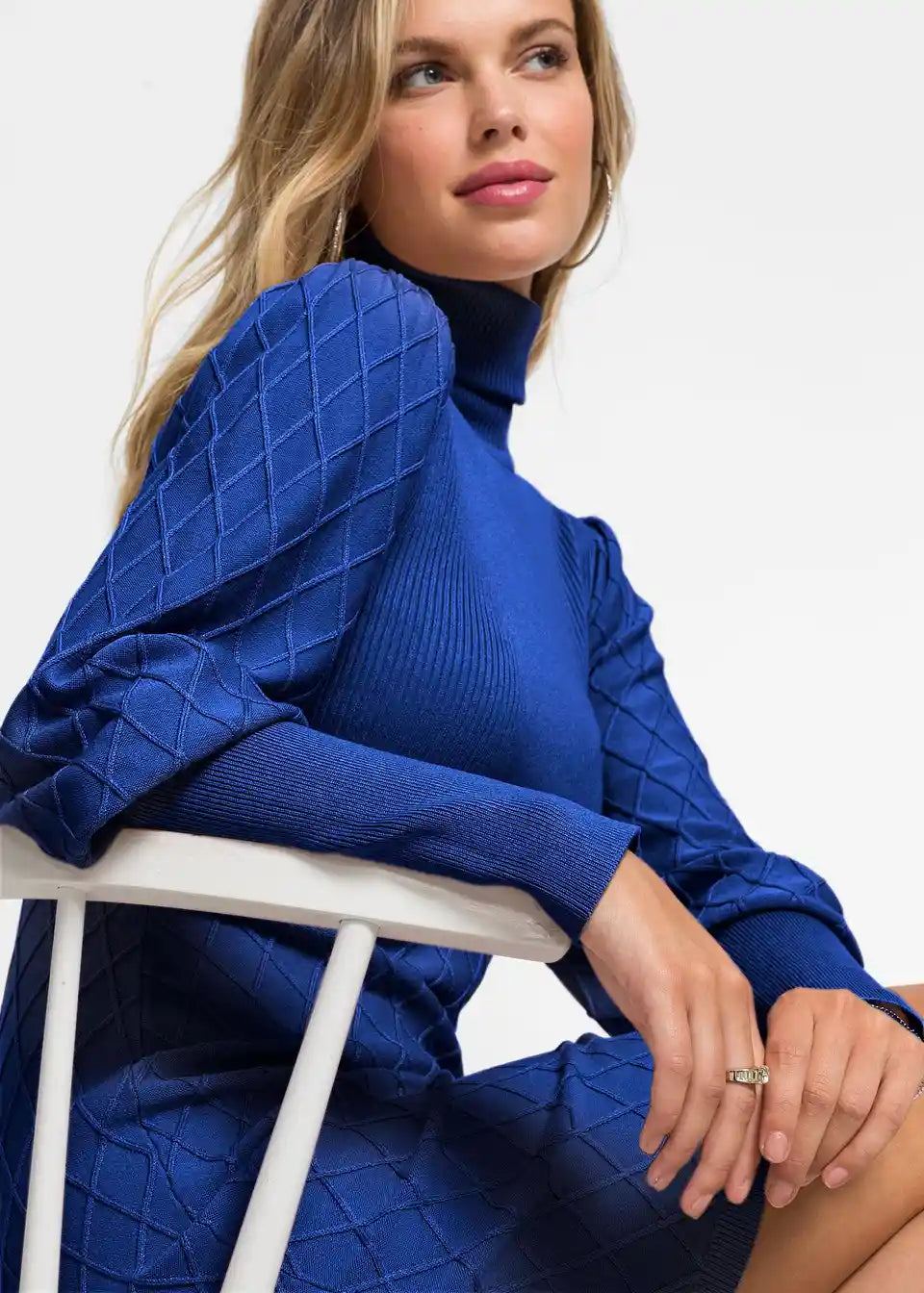 Stilska pletena obleka z nabrano obliko rokavov