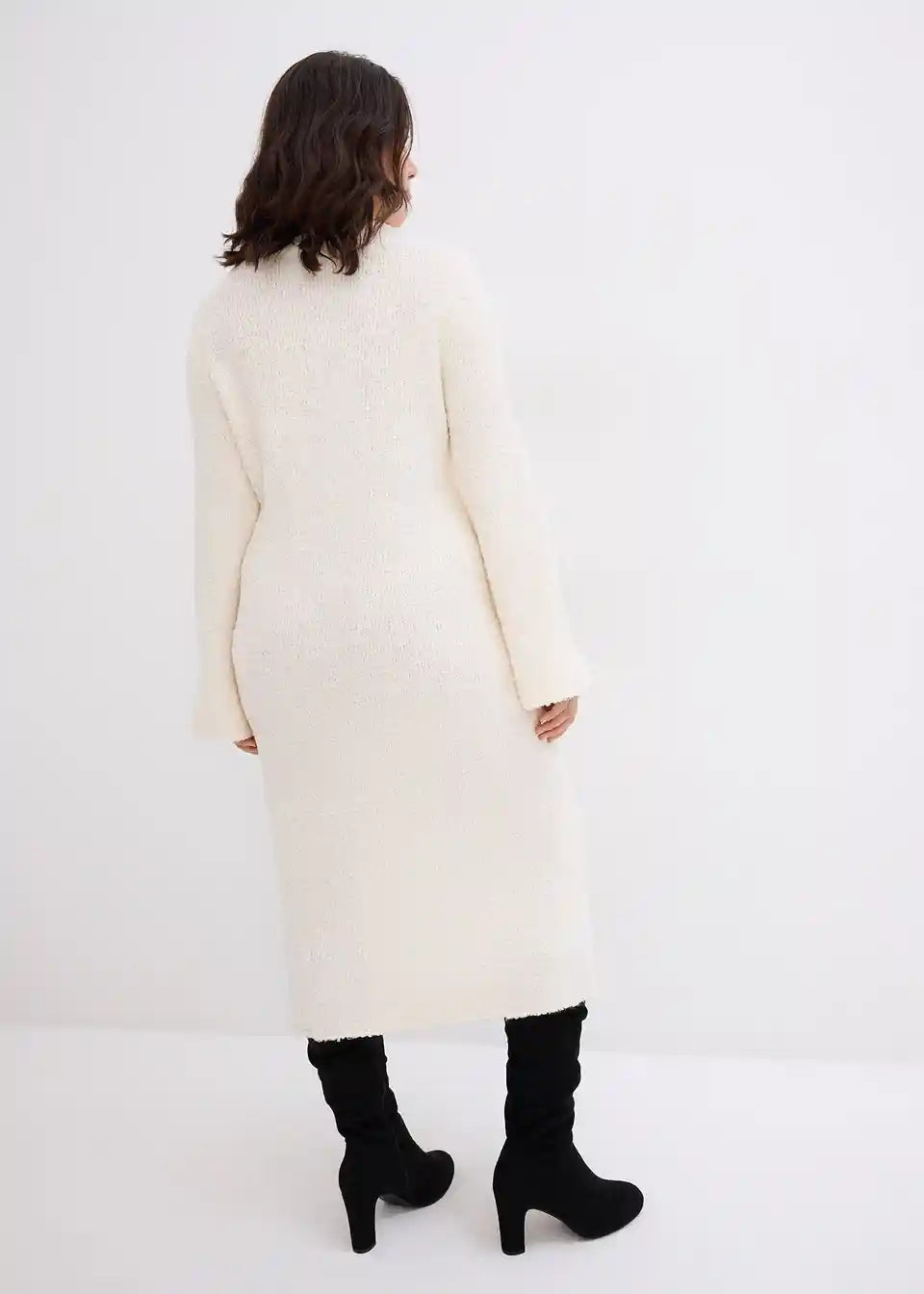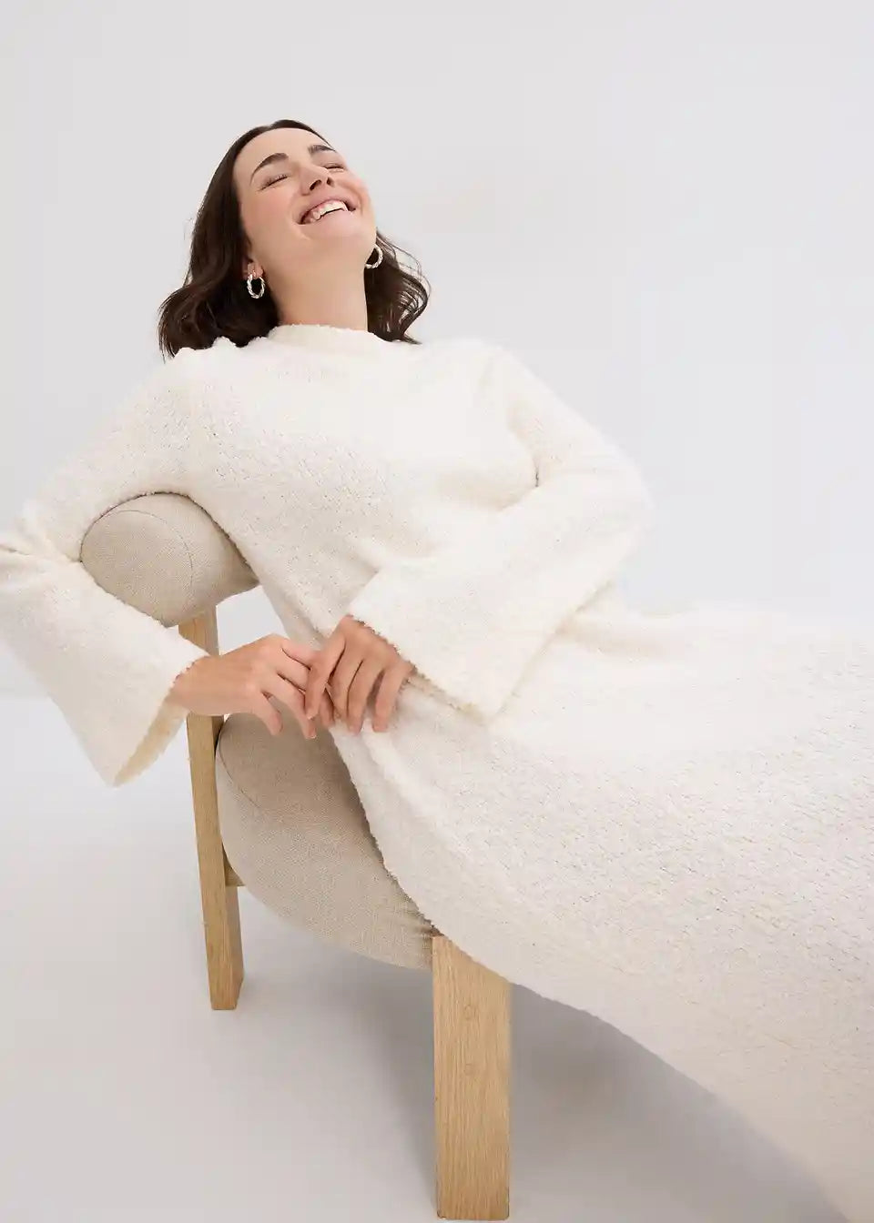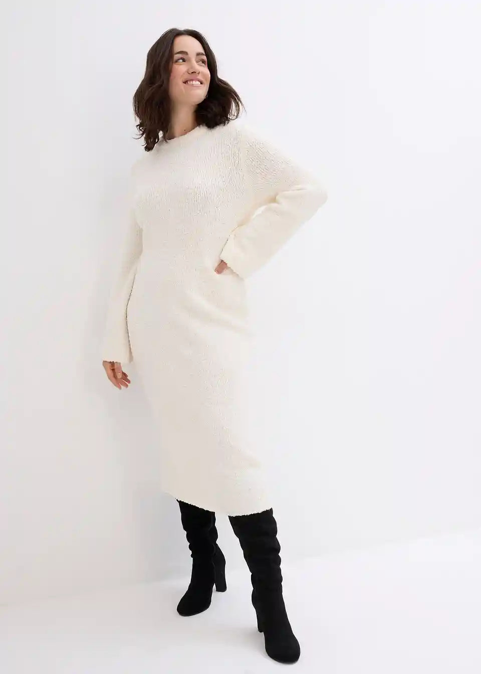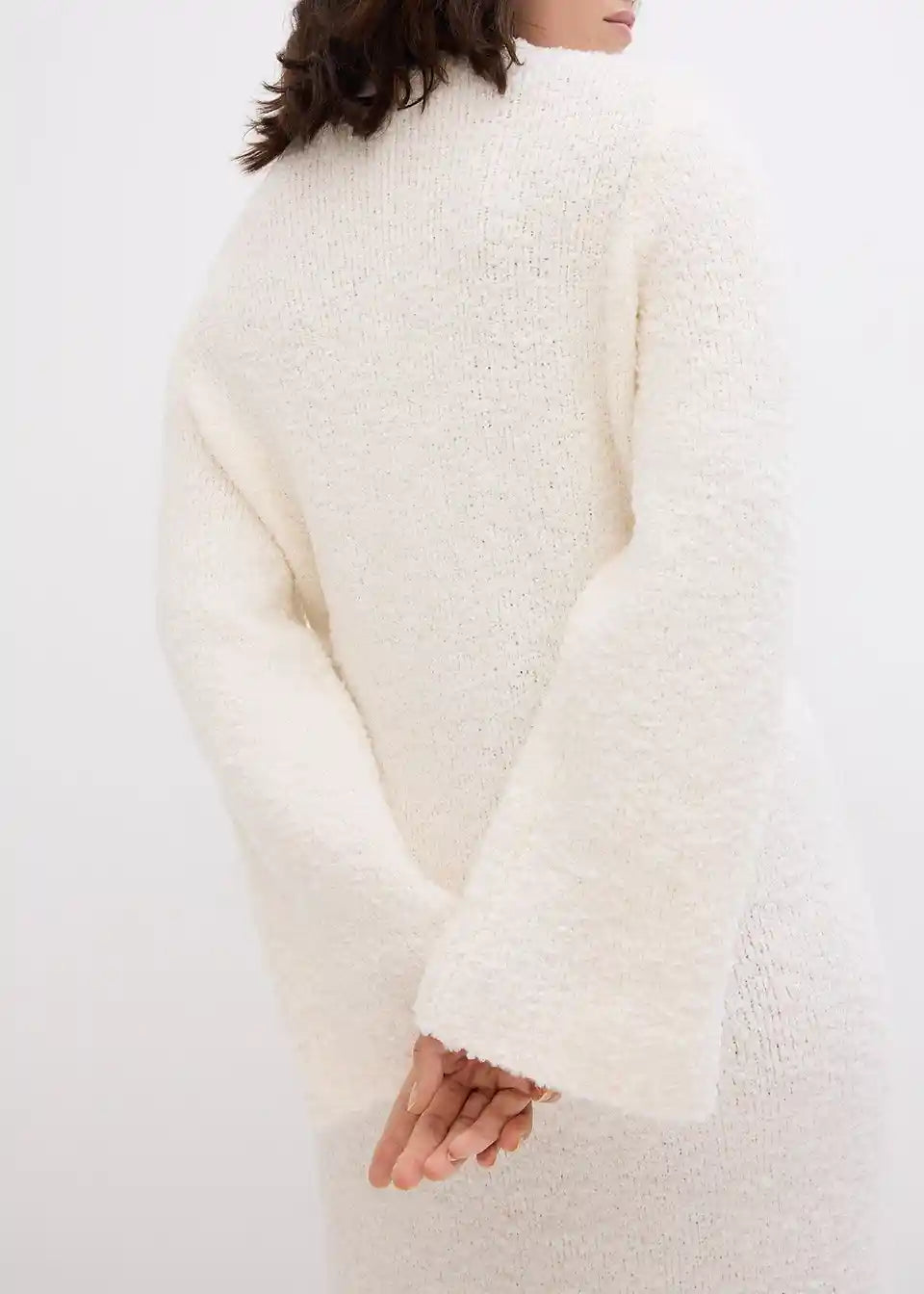 Eleganten Bouclé pleteni obleki z okroglim izrezom