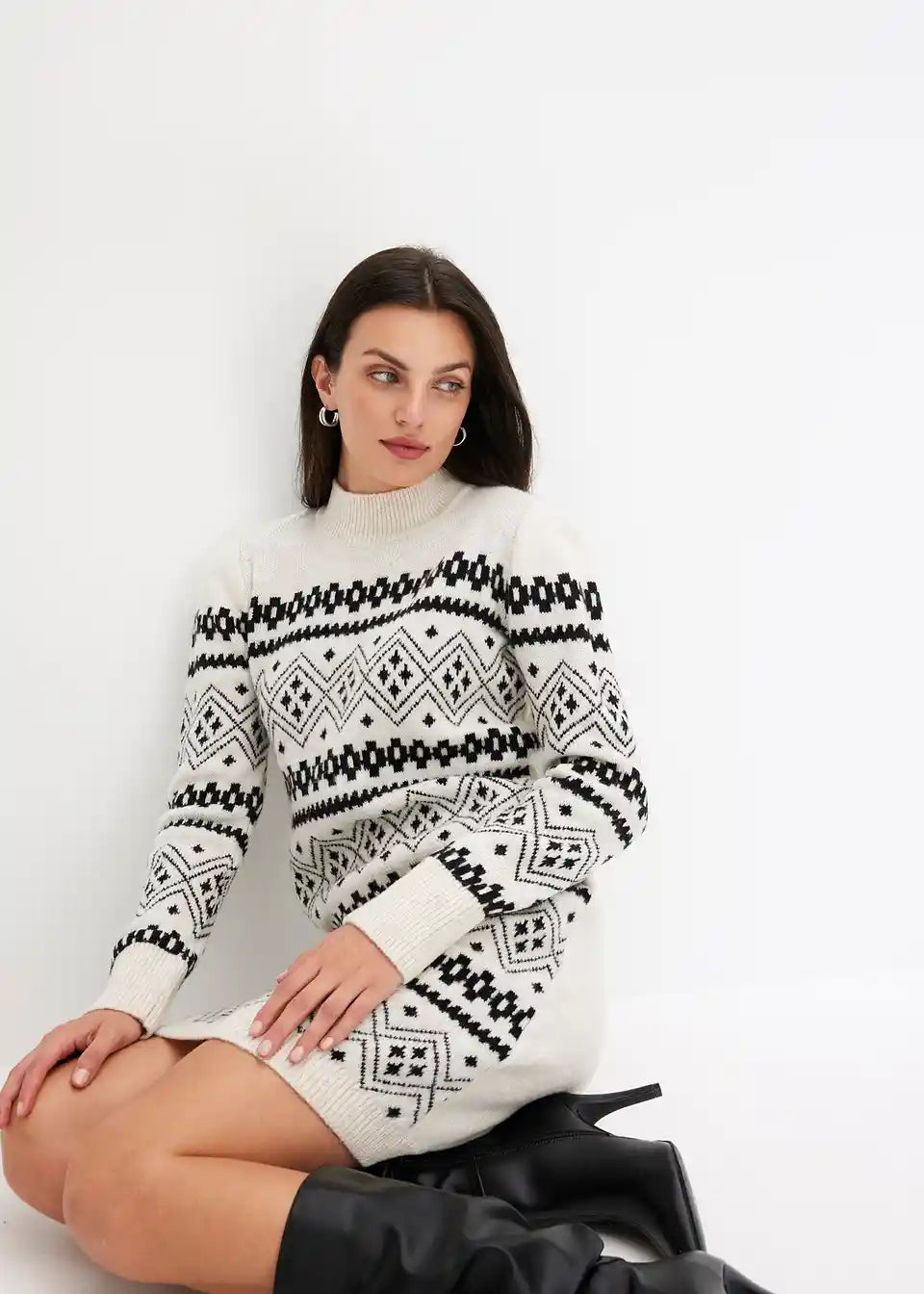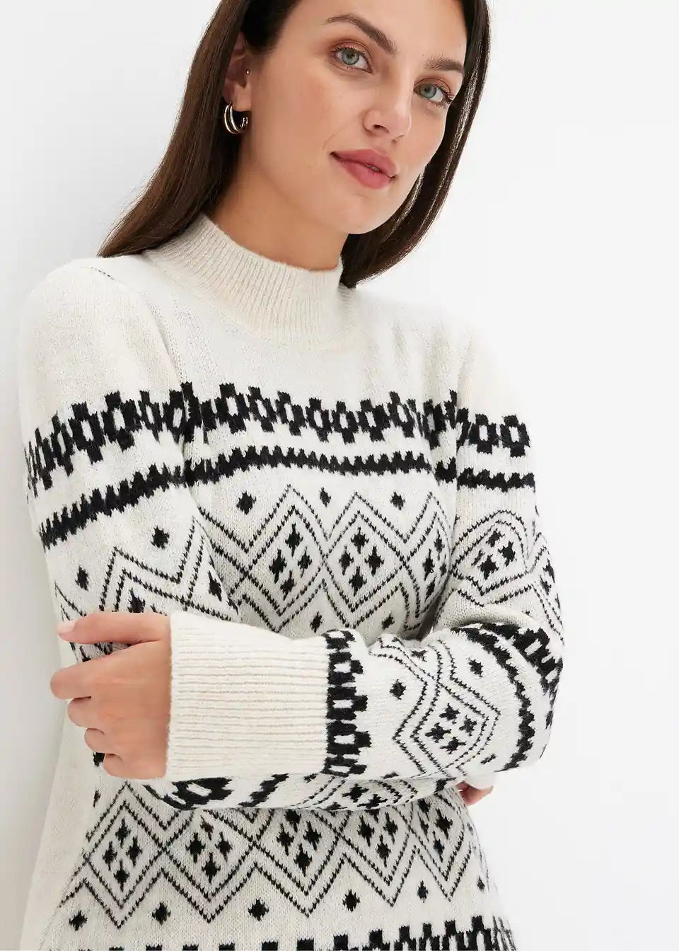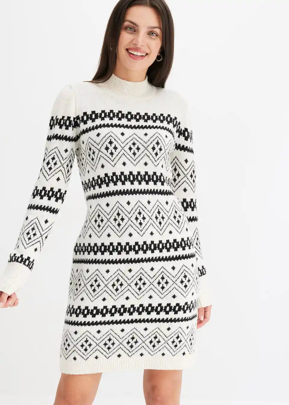 Moderno in ženstveno: Pletene obleke s stoječim ovratnikom in norveškim vzorcem
