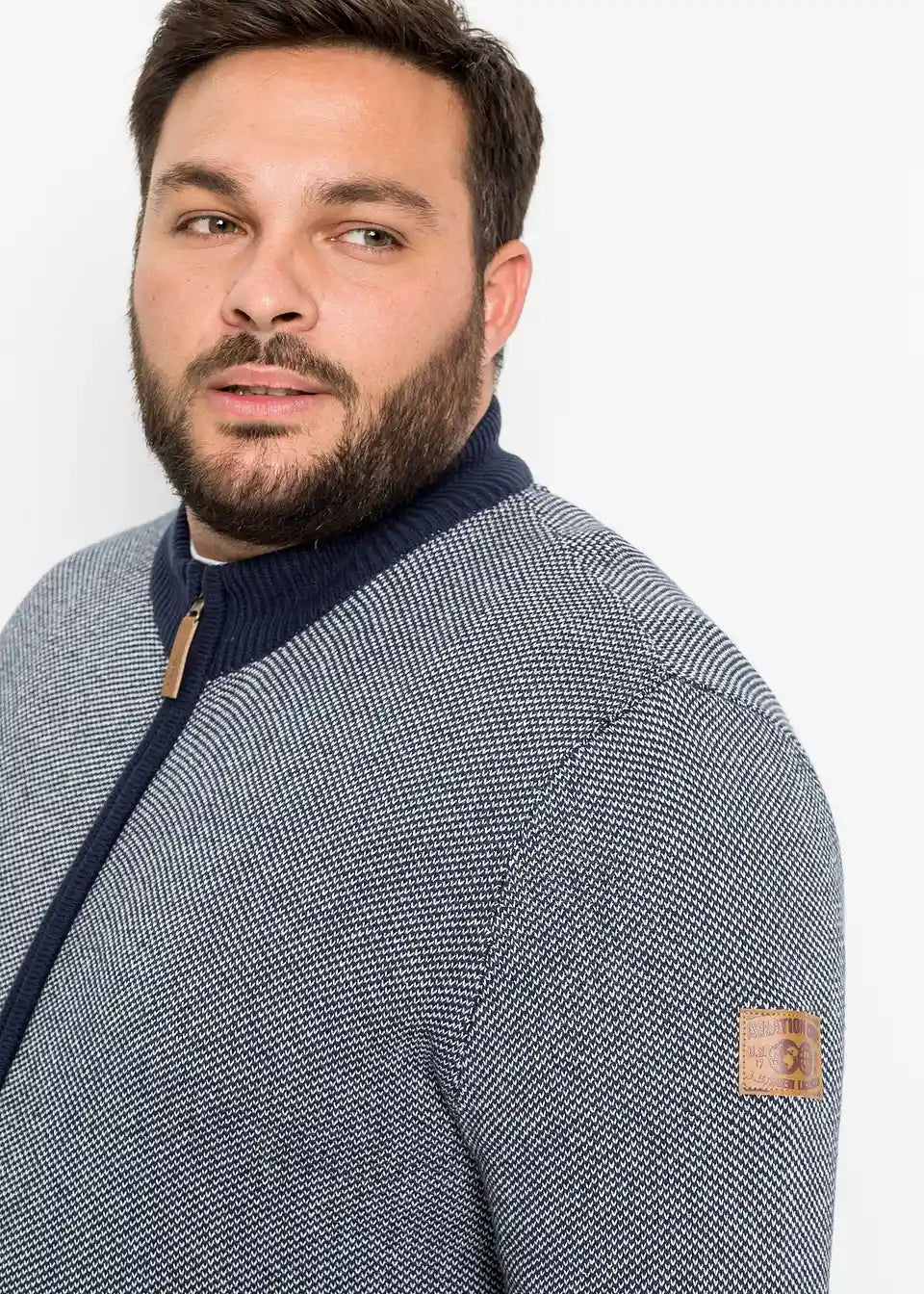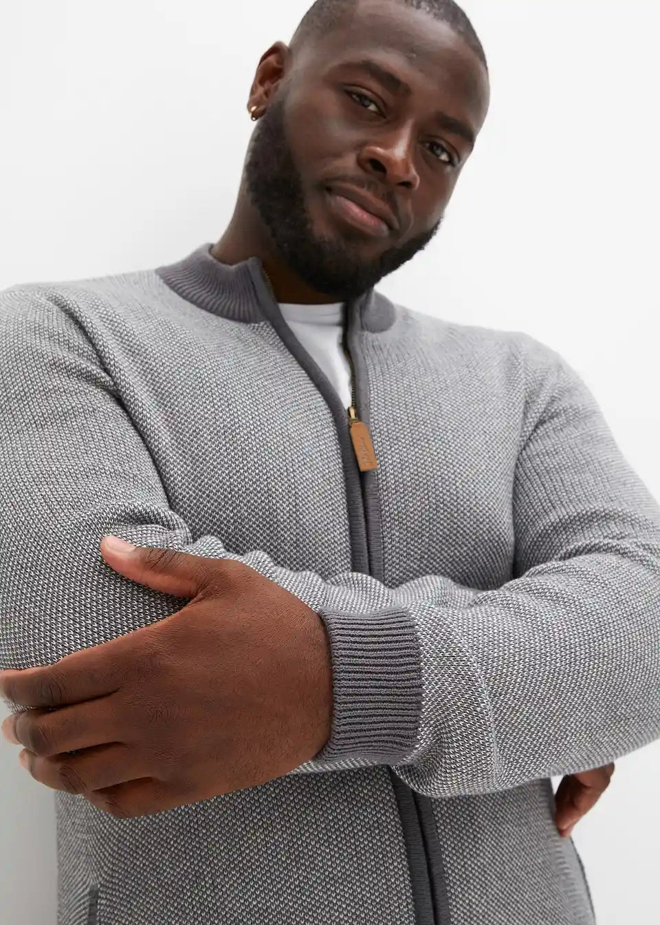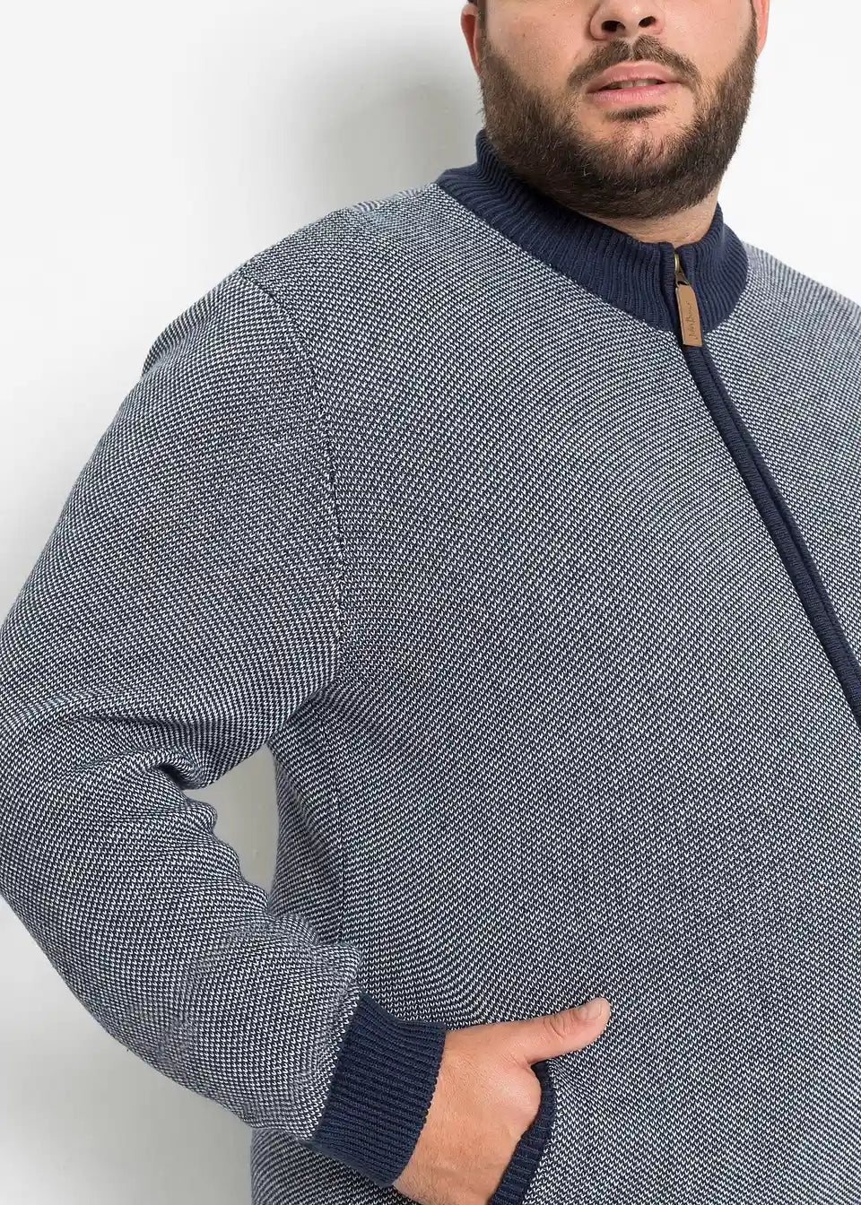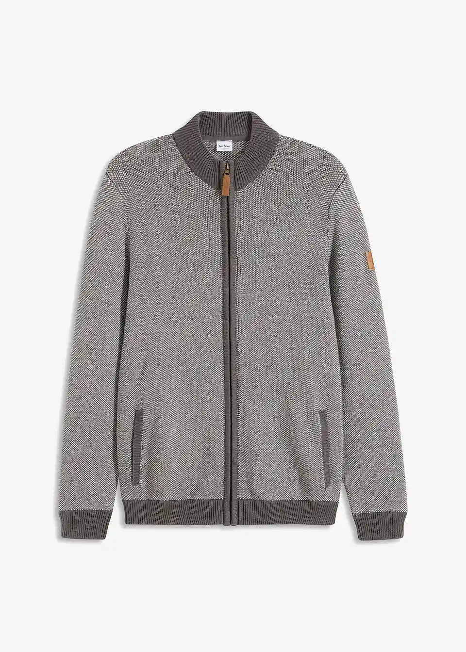 Robusten pleteni jopič z enobarvnimi podrobnostmi