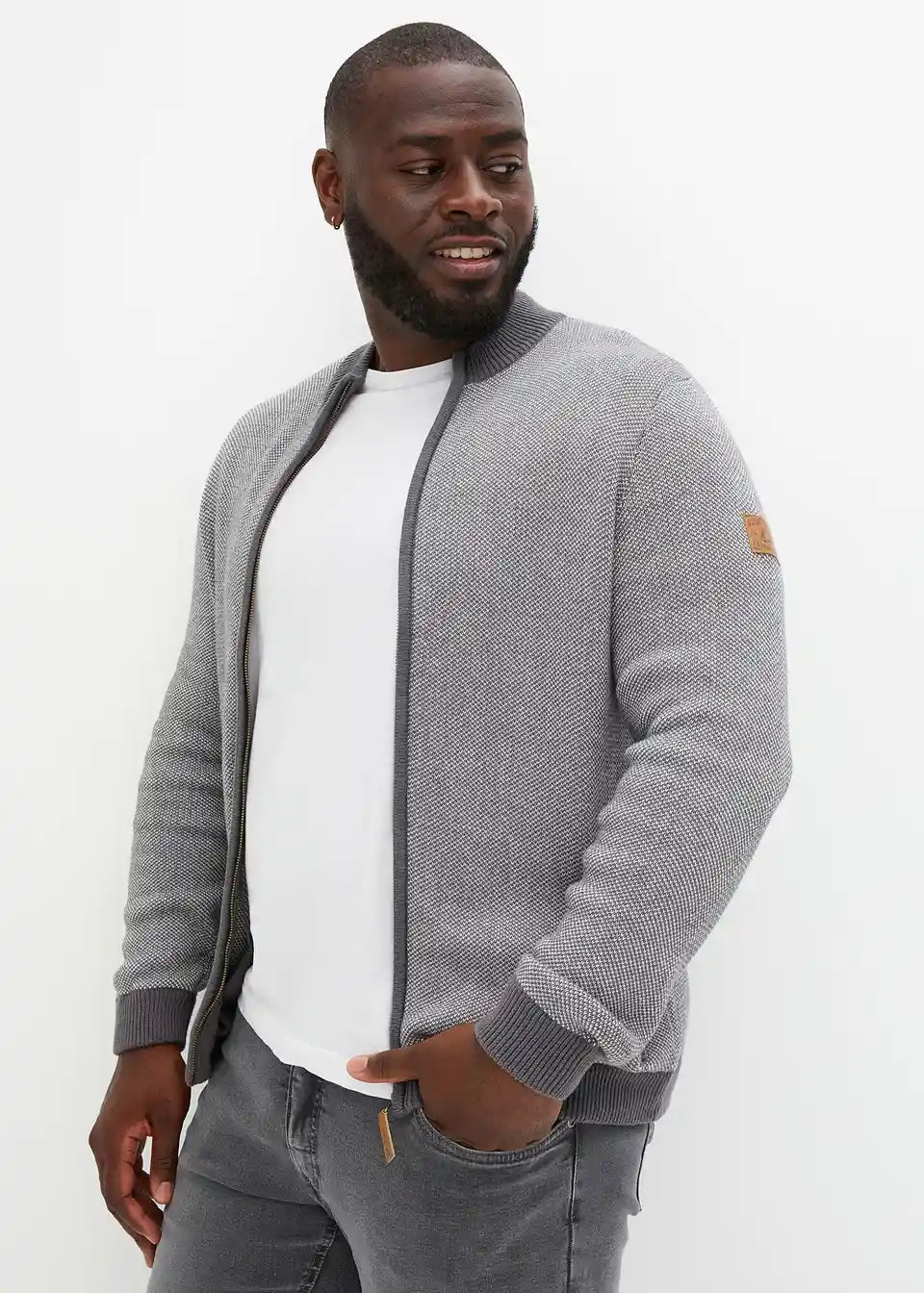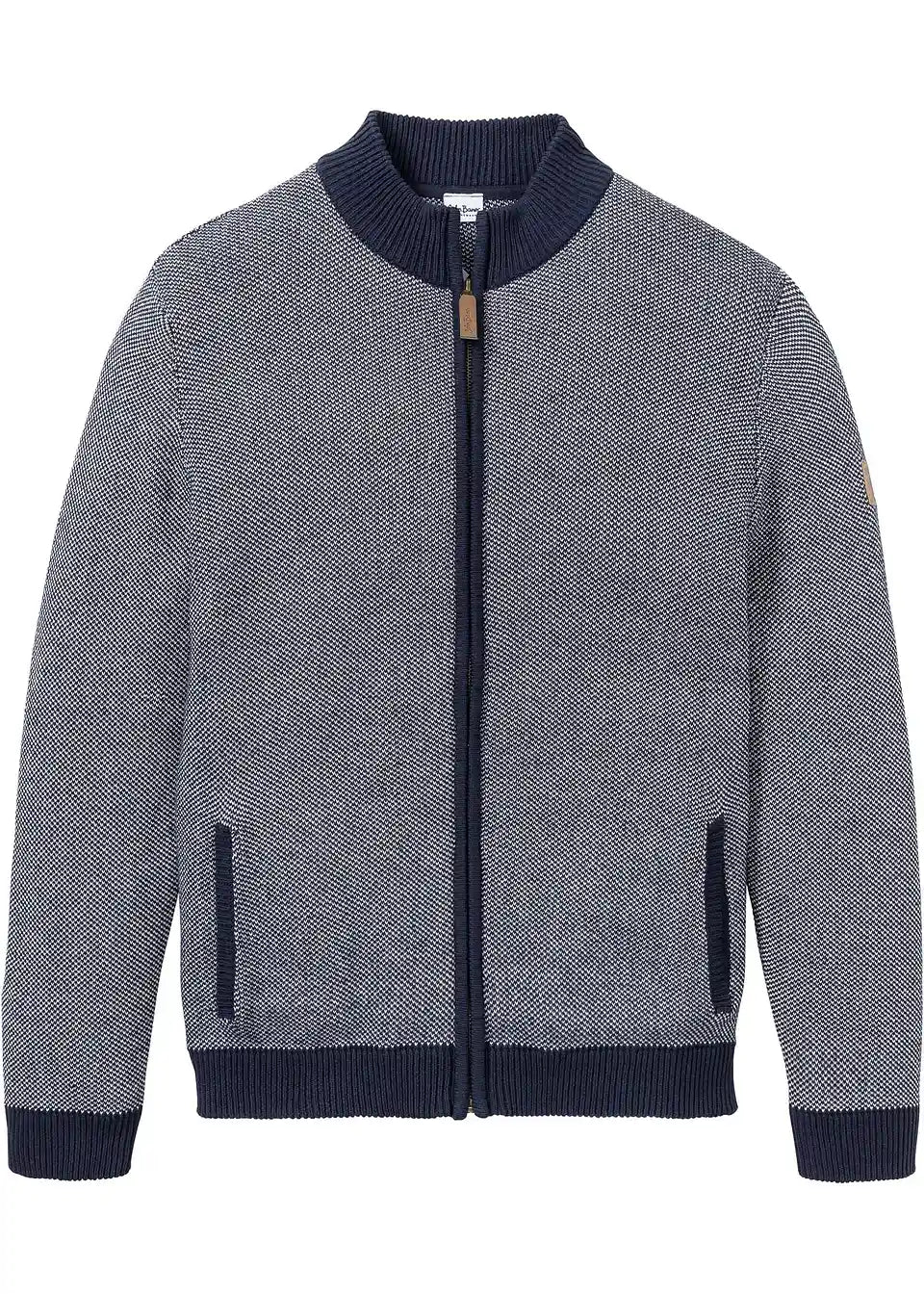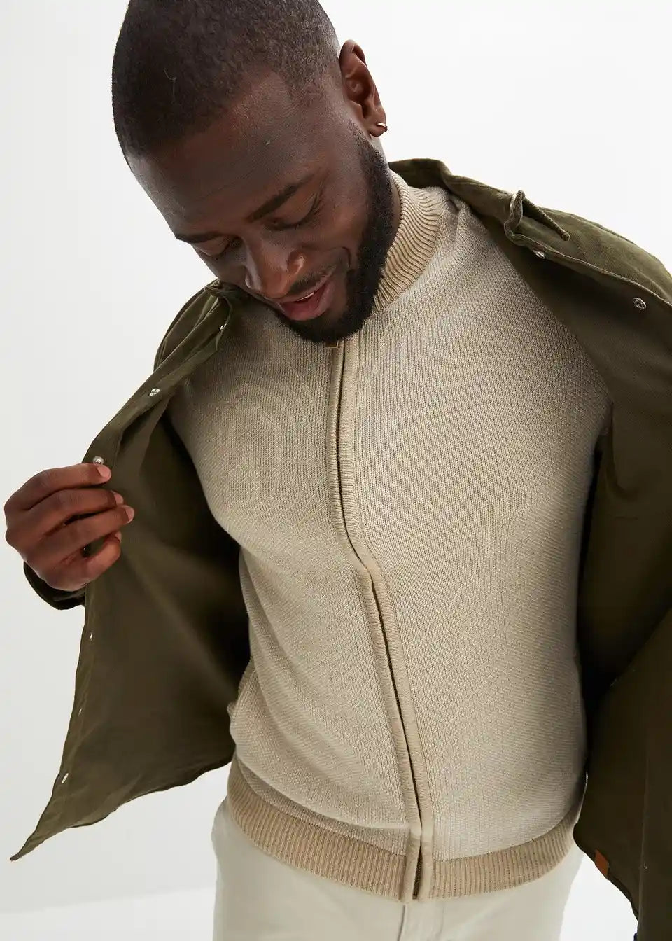 Robusten pleteni jopič z enobarvnimi podrobnostmi