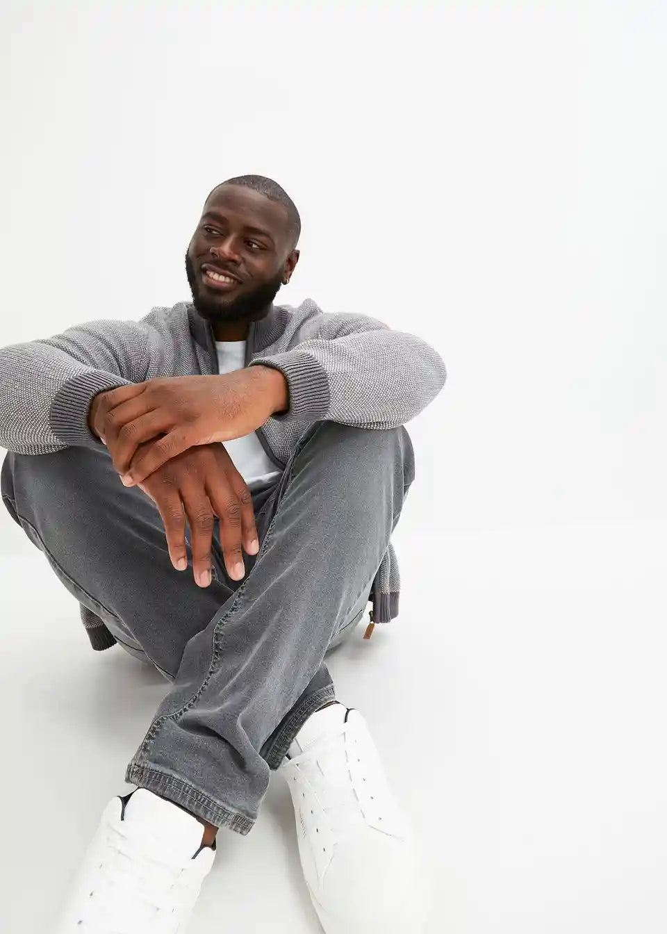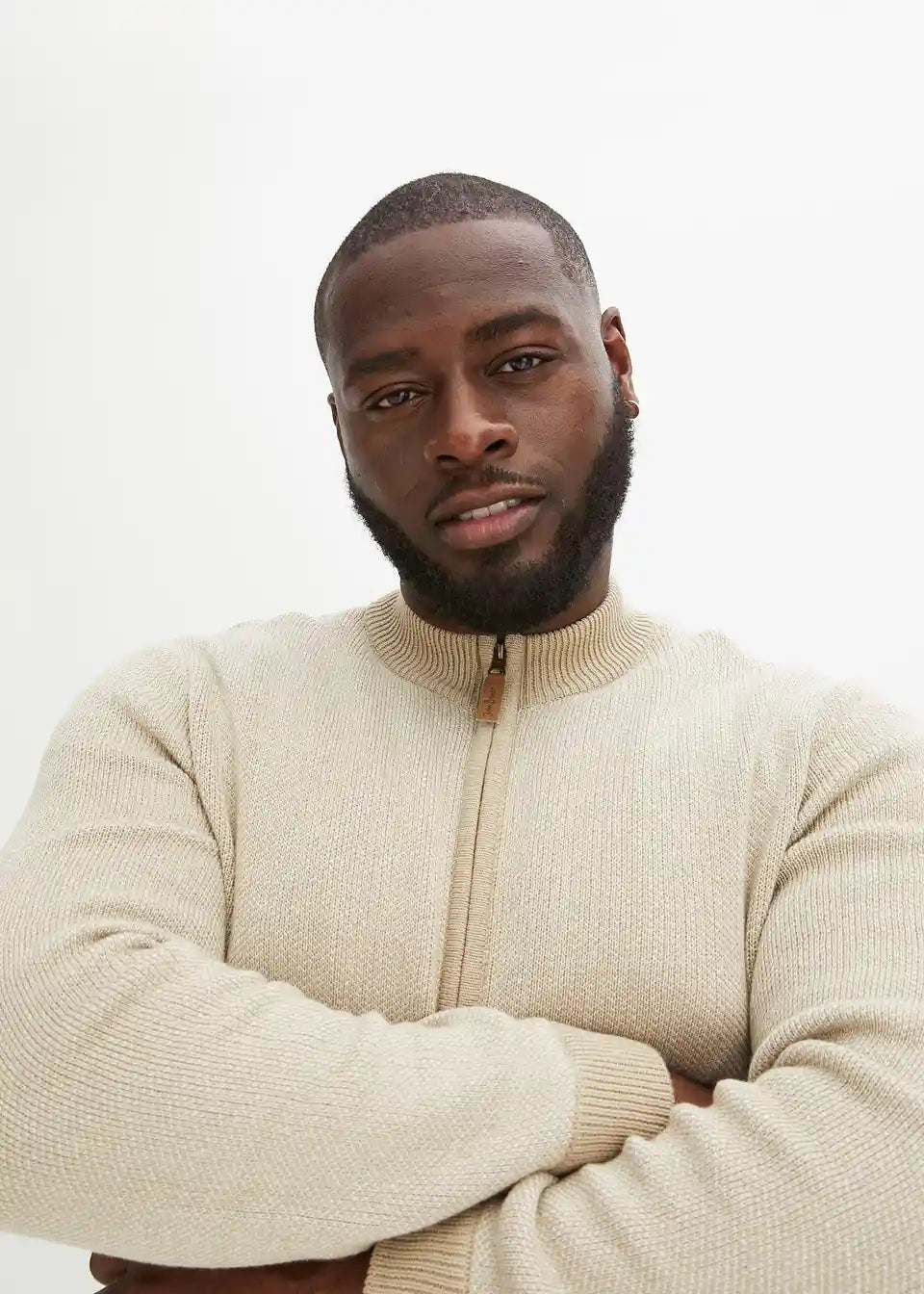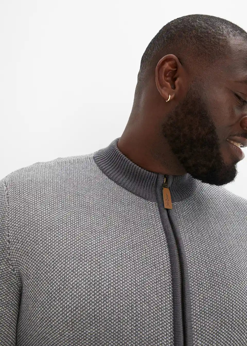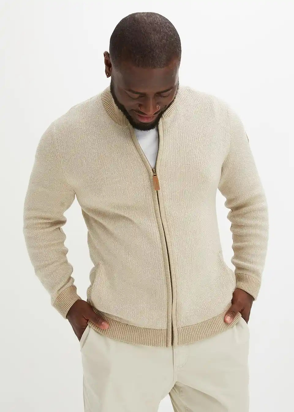 Robusten pleteni jopič z enobarvnimi podrobnostmi