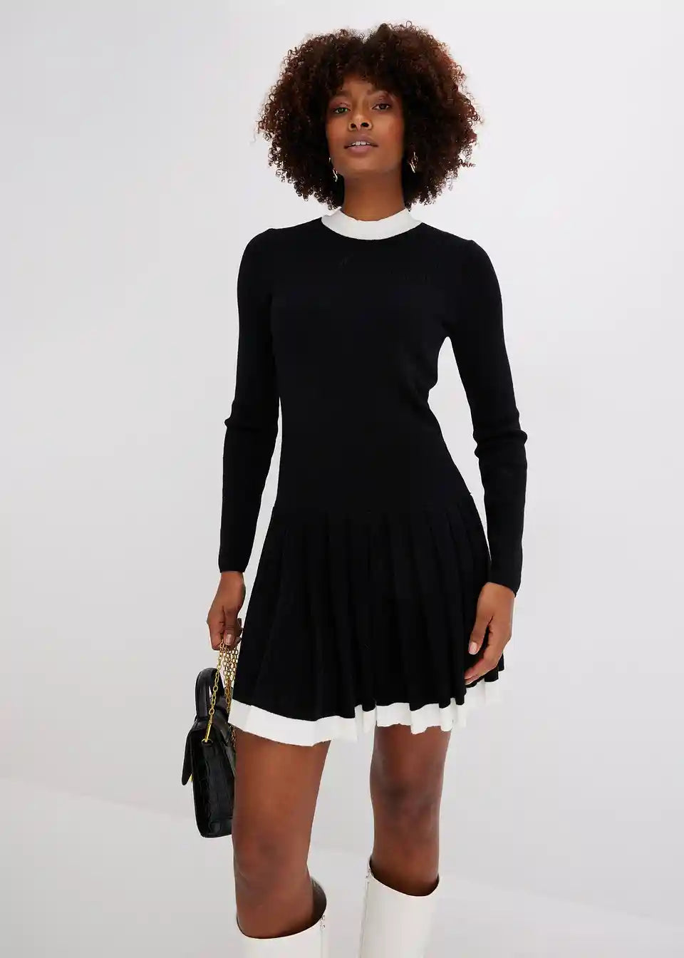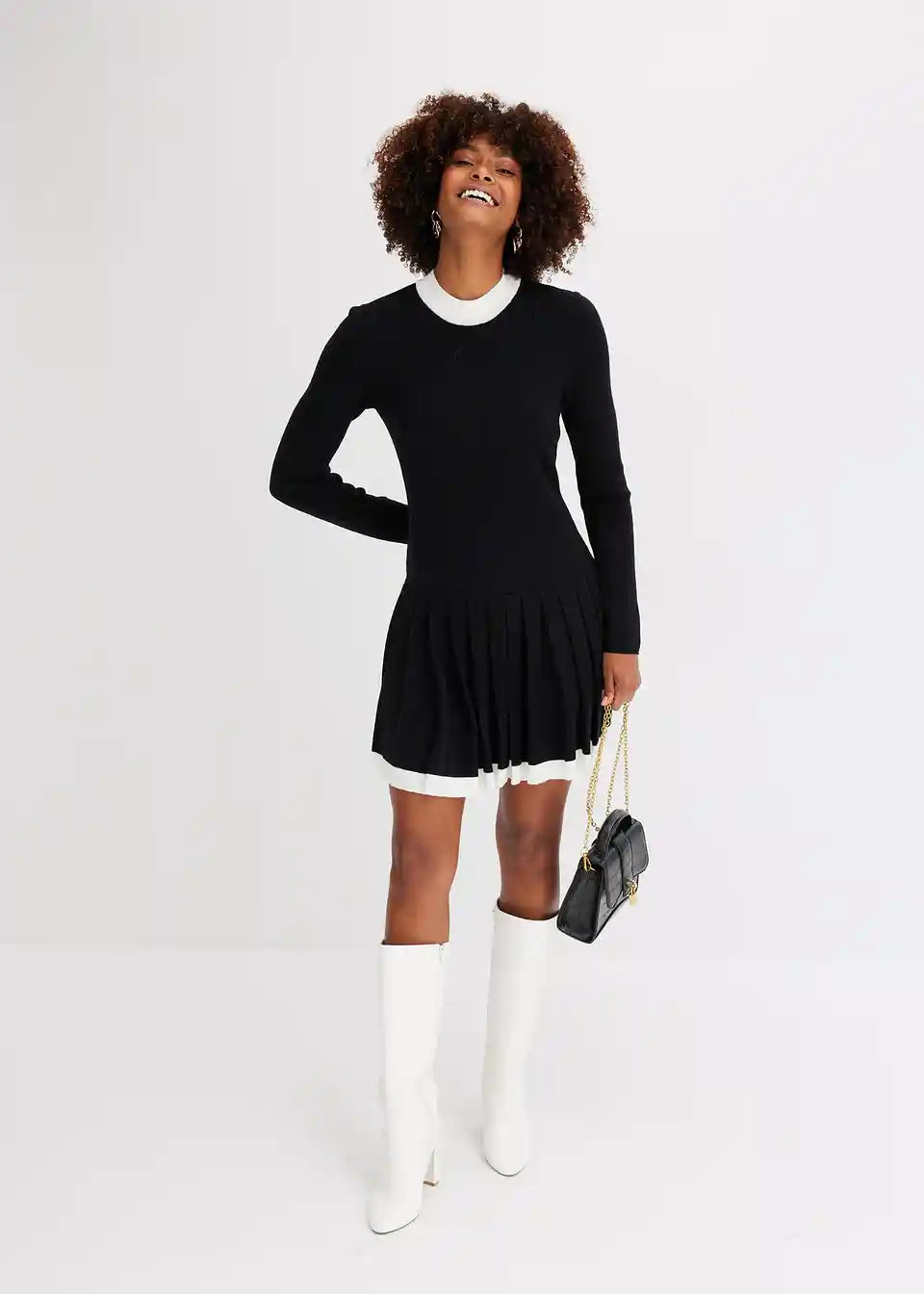 Pletena obleka s krilom z gubami