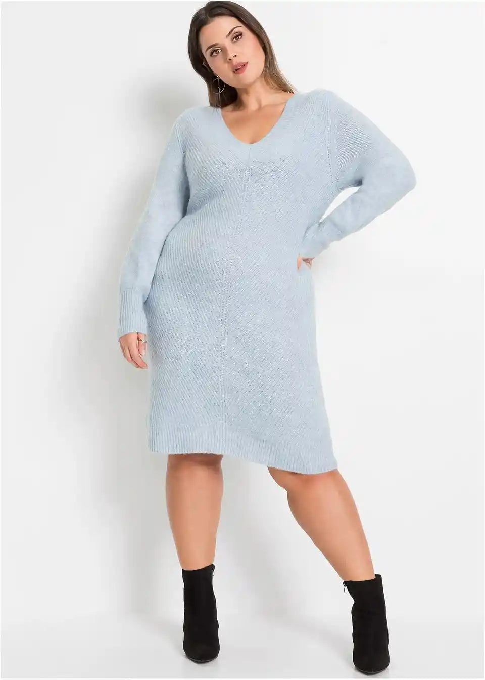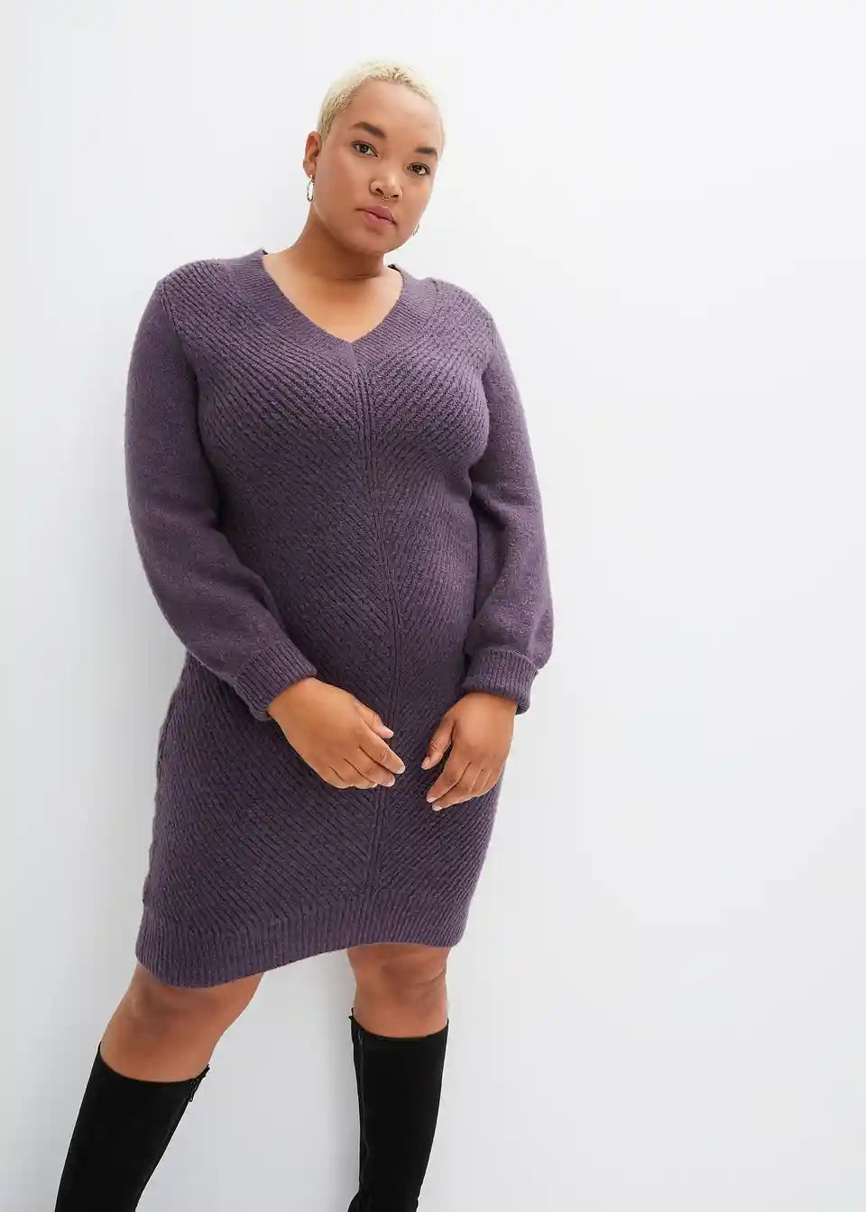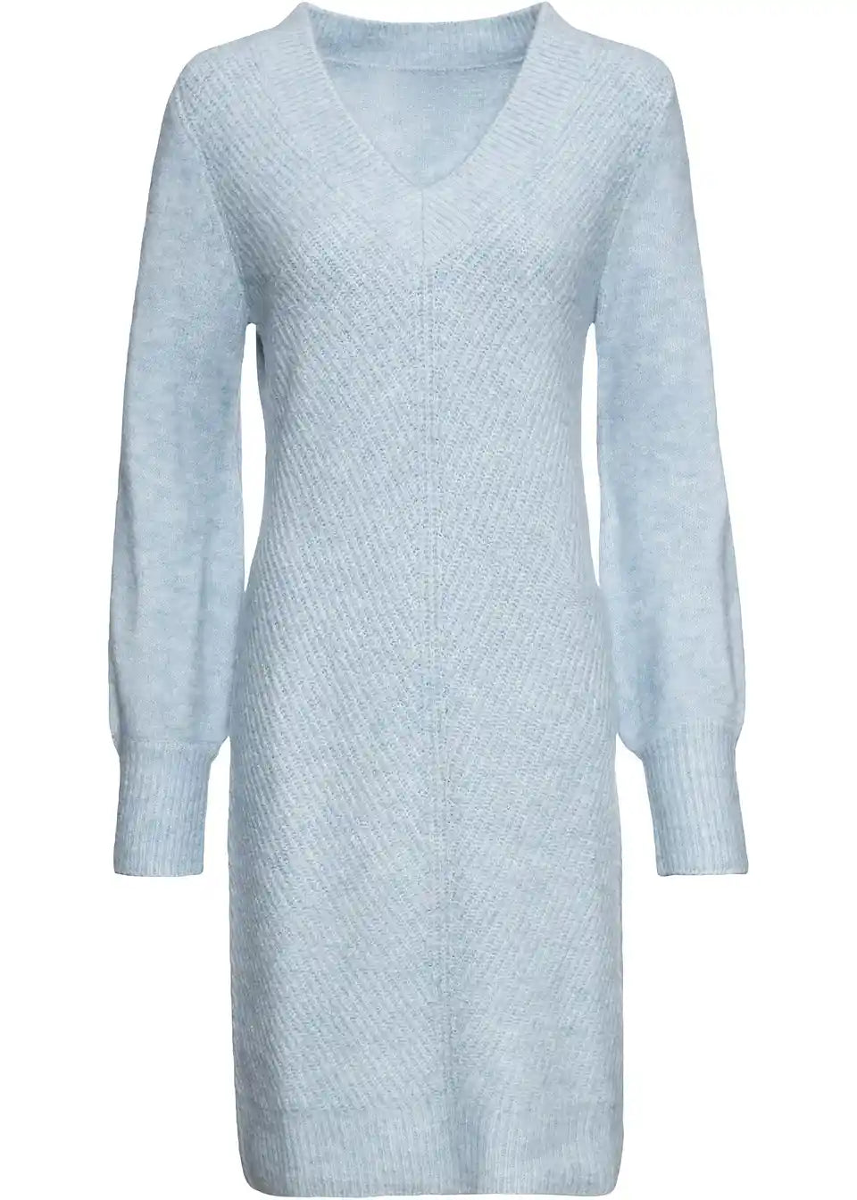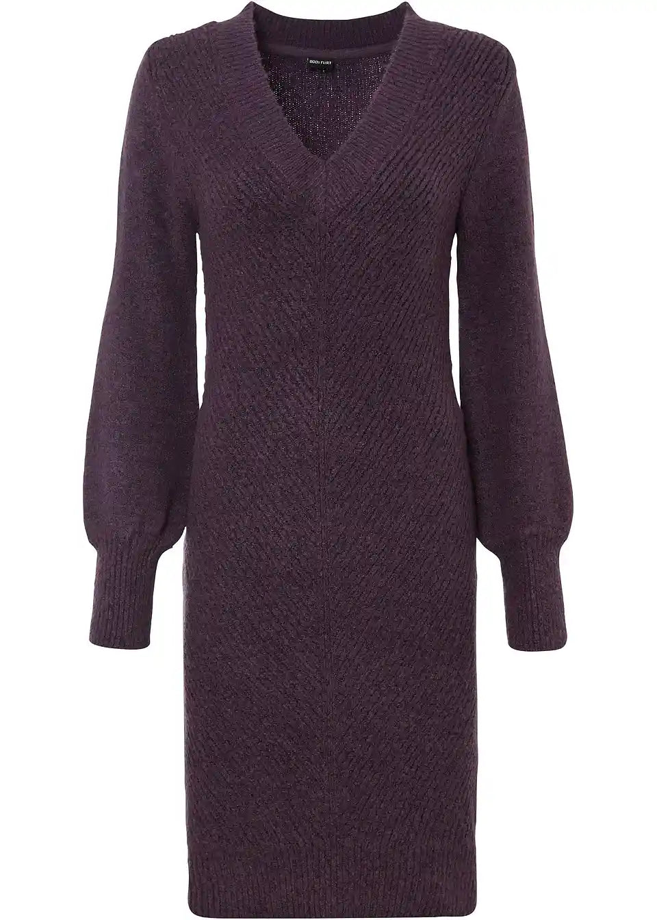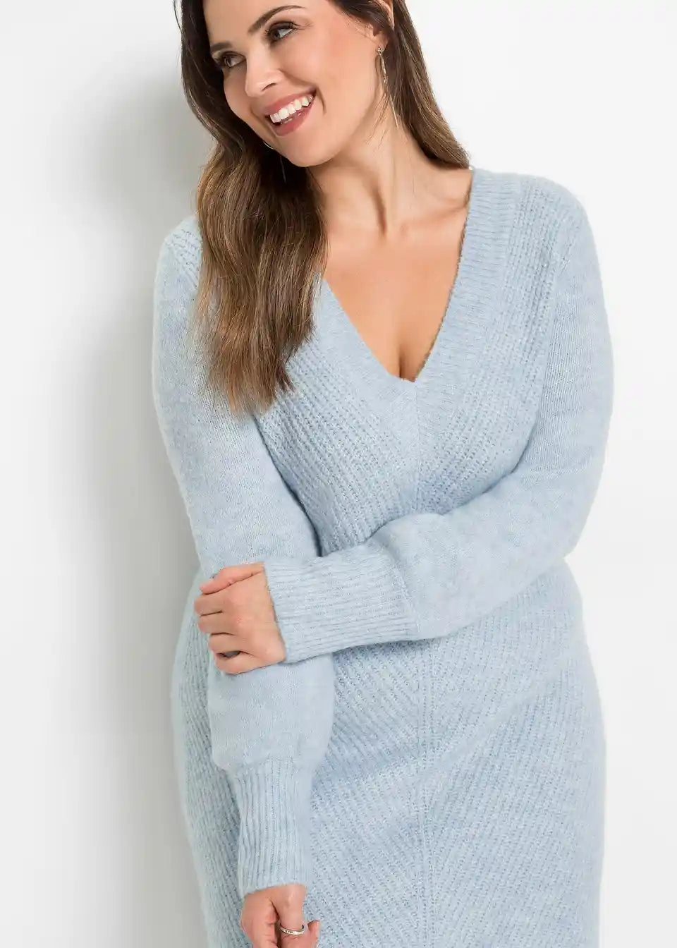Ženska pletena obleka znamke BODYFLIRT. Obleka je izdelana z globokim V-izrezom. Dolžina pri vel. 36/38 cca. 94 cm.