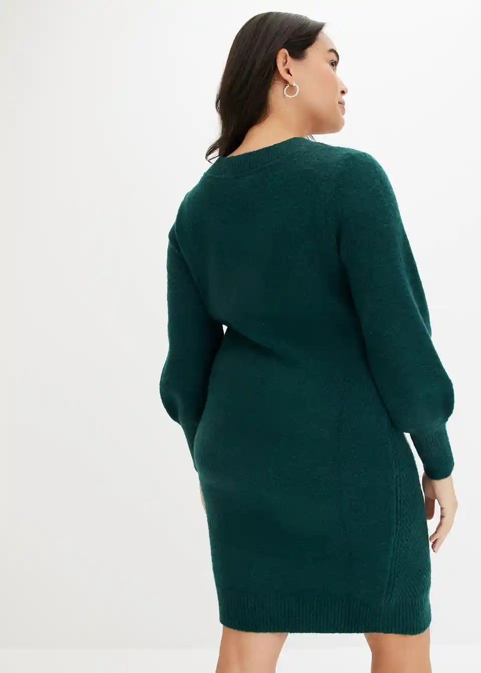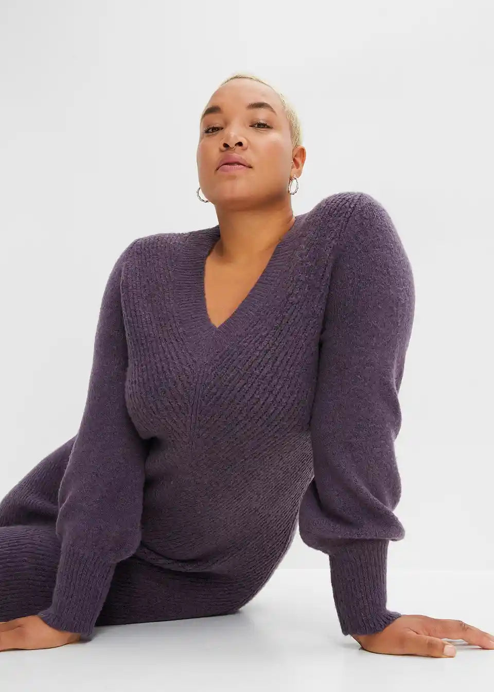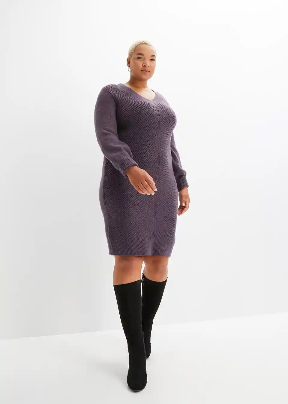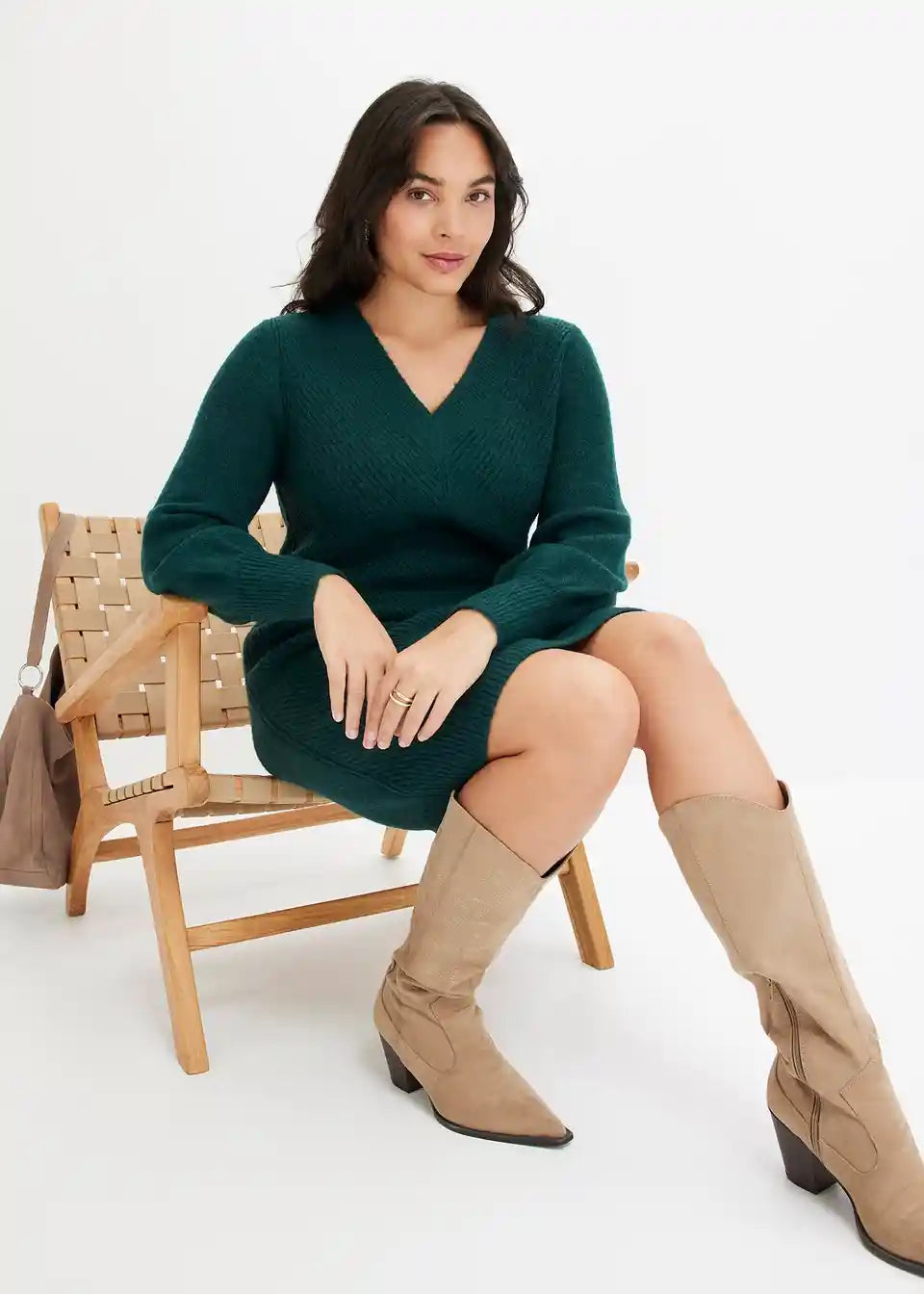 Ženska pletena obleka znamke BODYFLIRT. Obleka je izdelana z globokim V-izrezom. Dolžina pri vel. 36/38 cca. 94 cm.