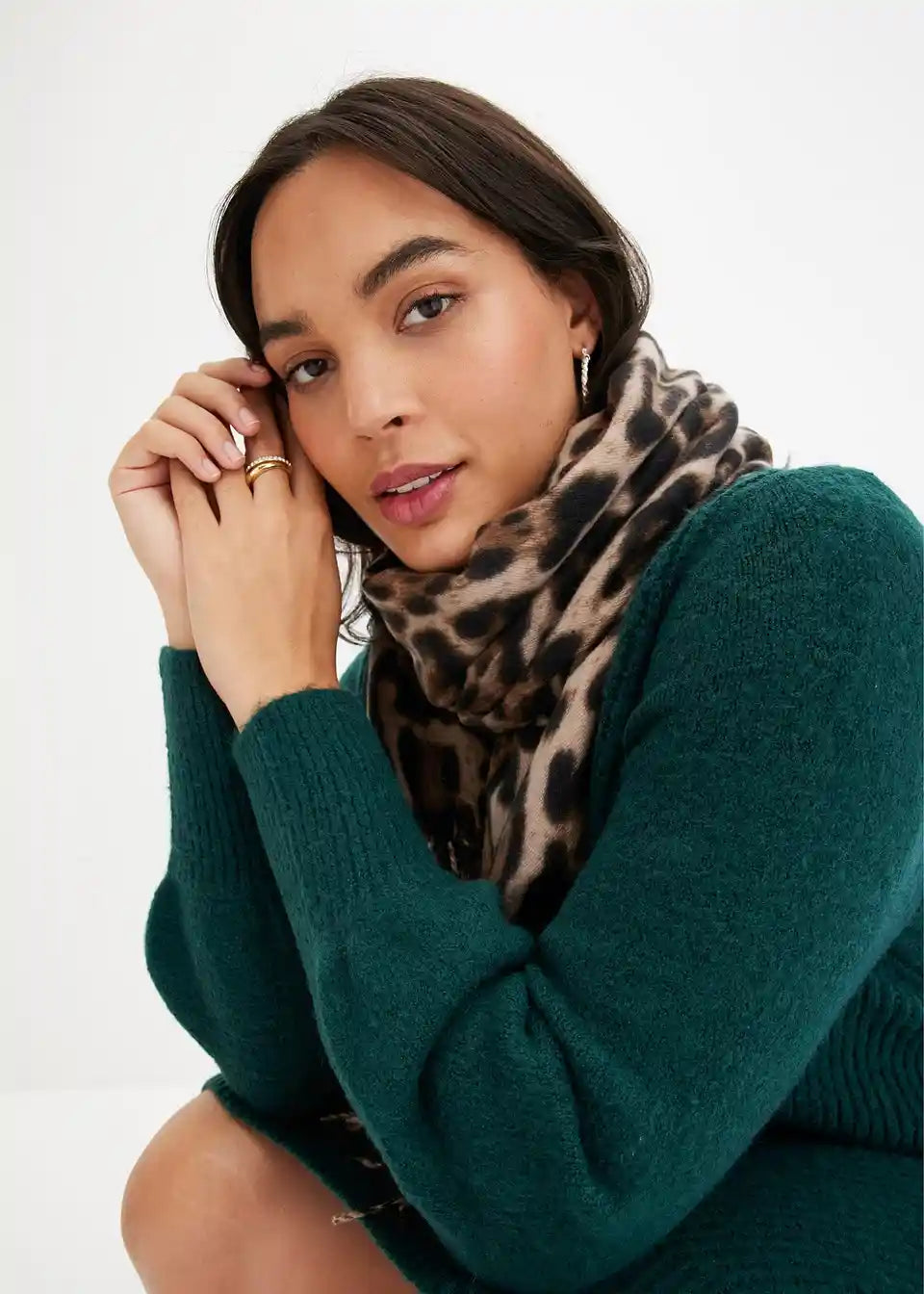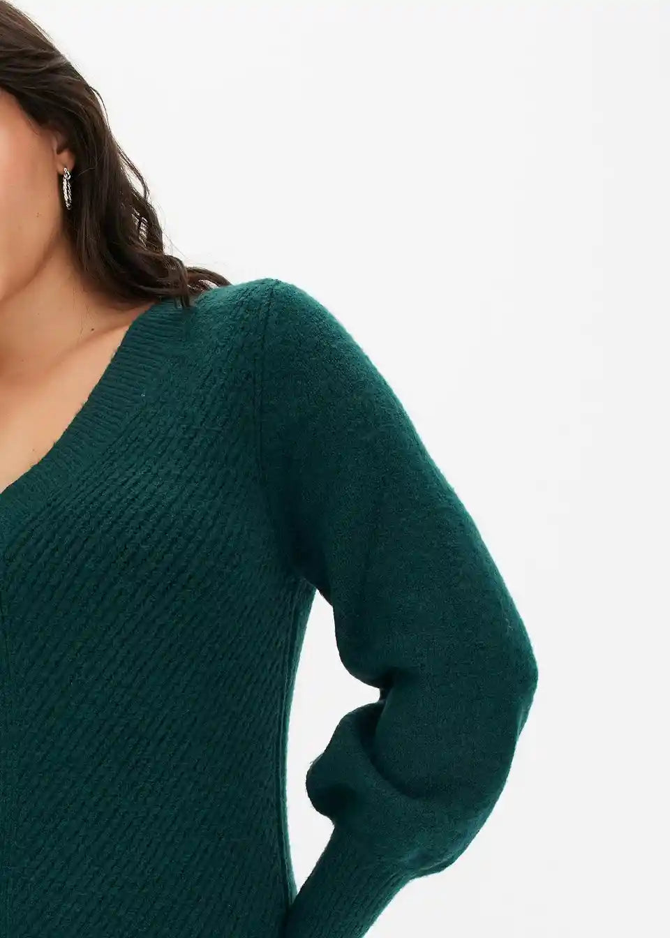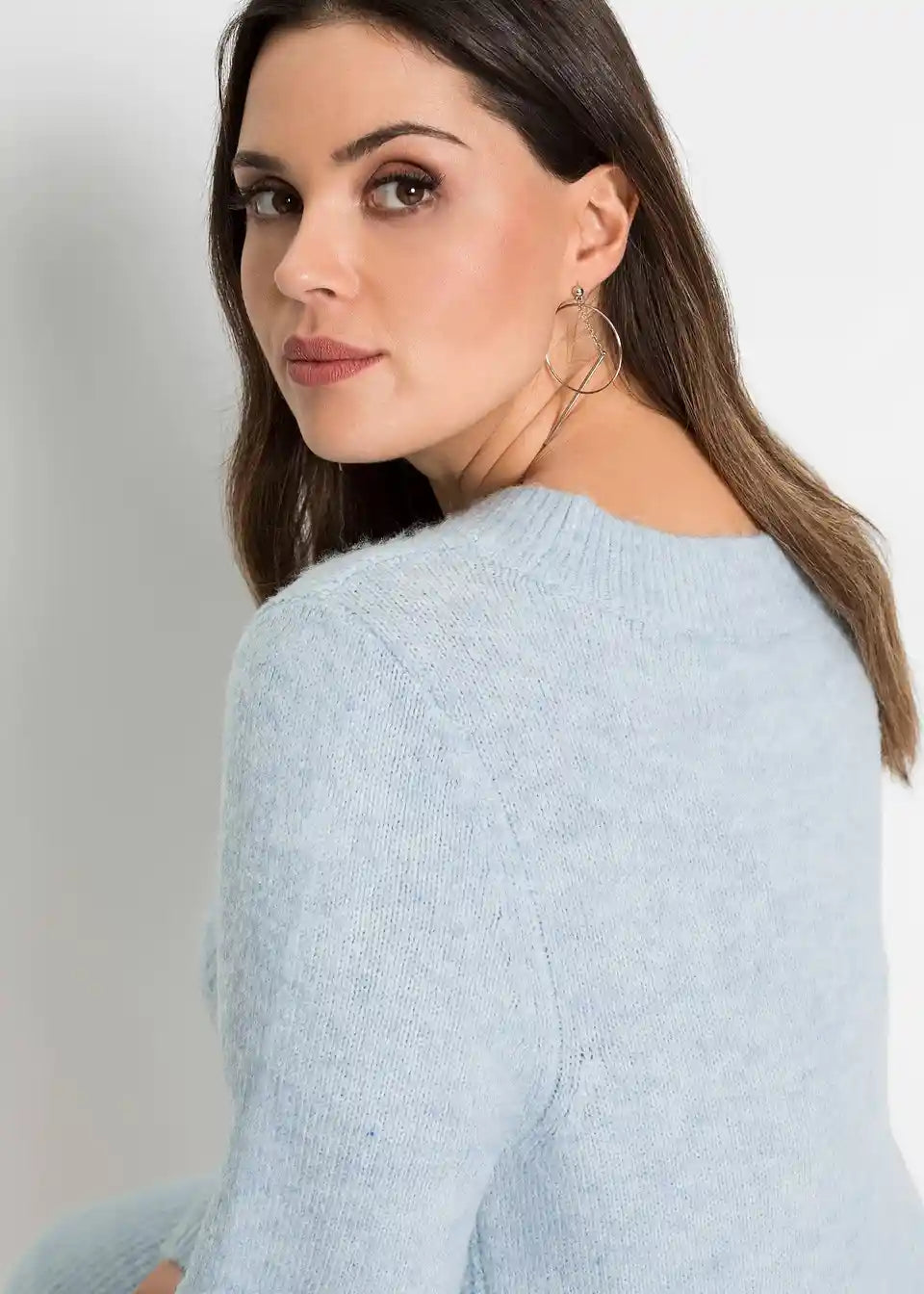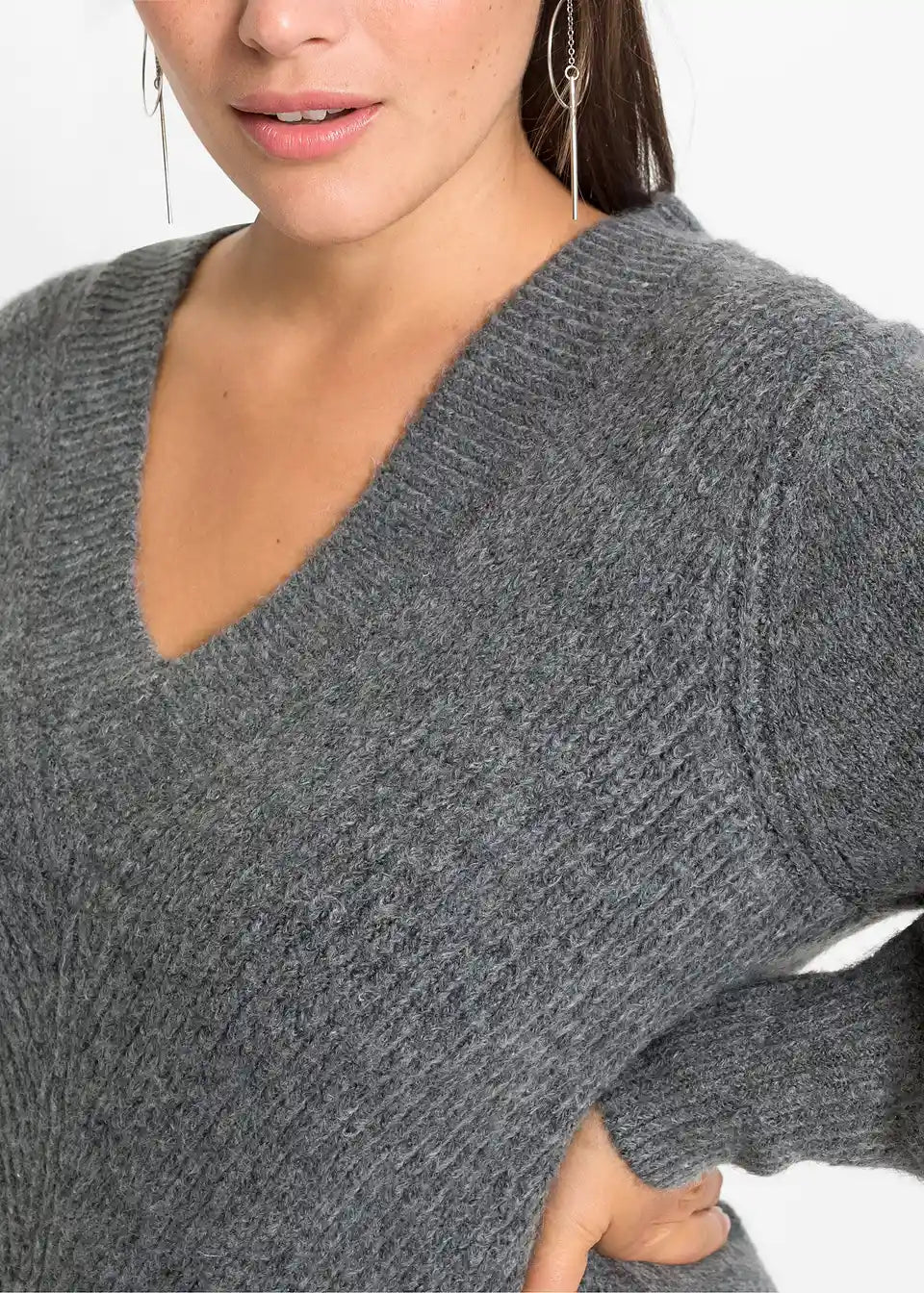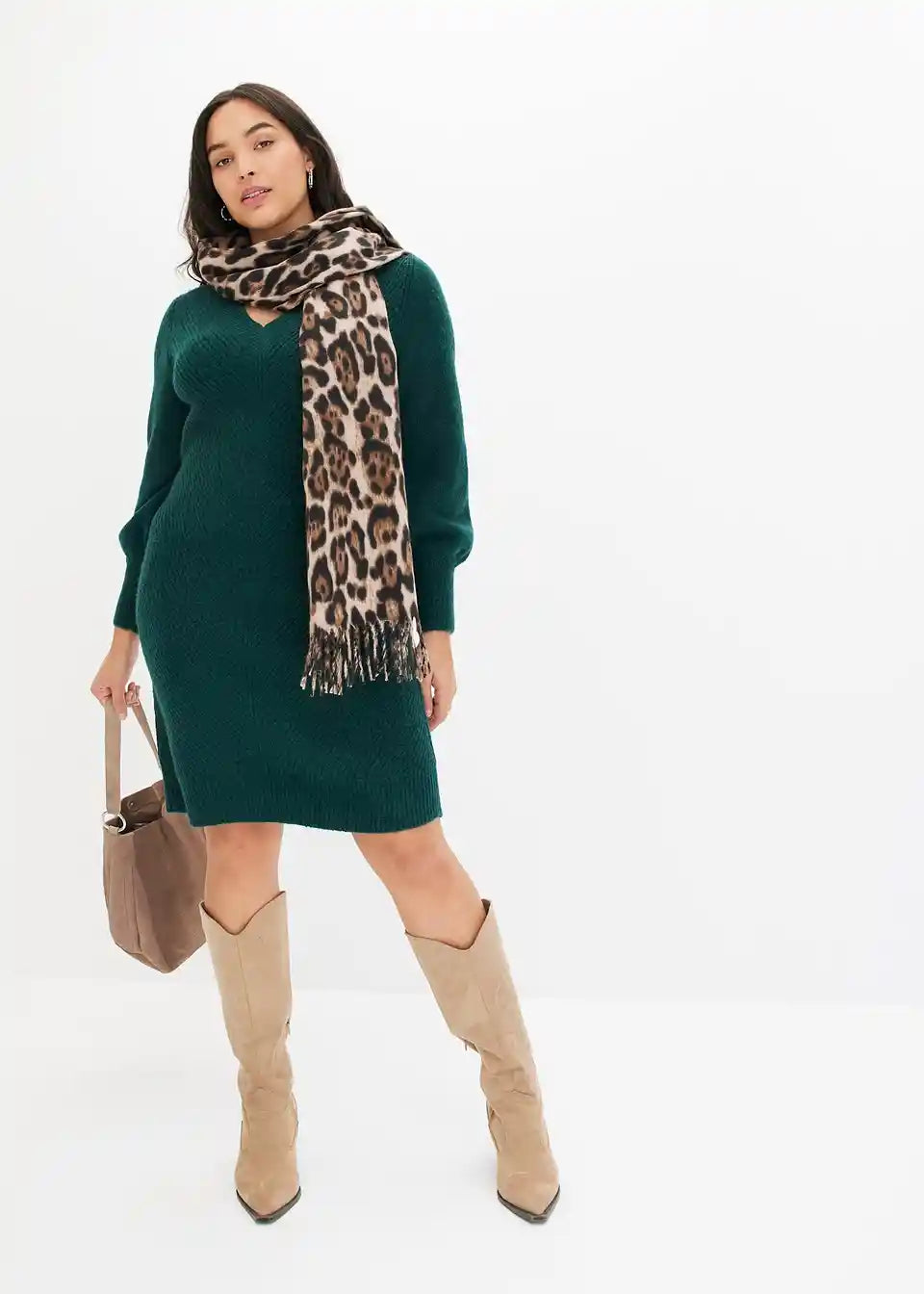 Ženska pletena obleka znamke BODYFLIRT. Obleka je izdelana z globokim V-izrezom. Dolžina pri vel. 36/38 cca. 94 cm.